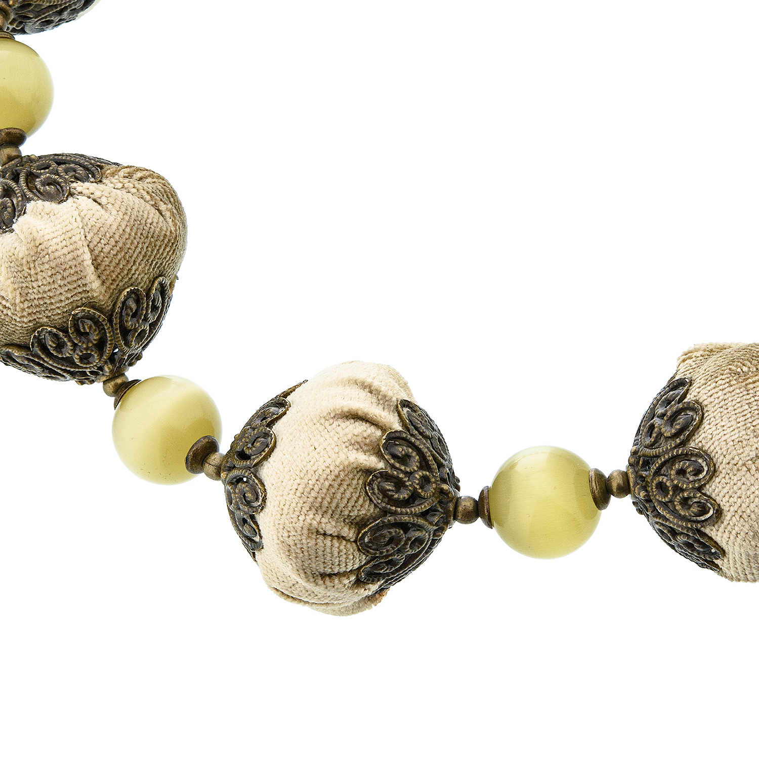 Бусы из натурального камня.Материалы: кошачий глаз, бархат, бронза.