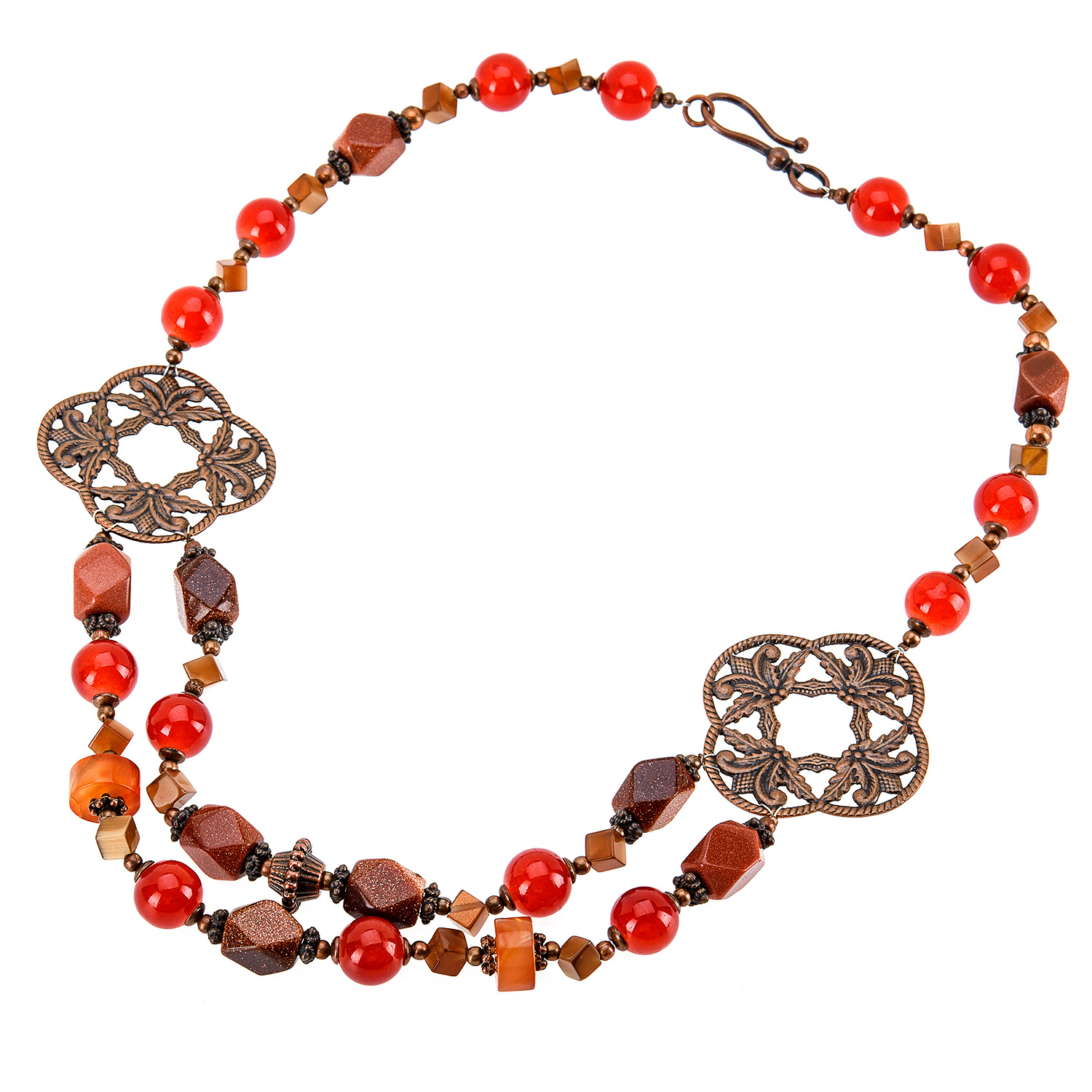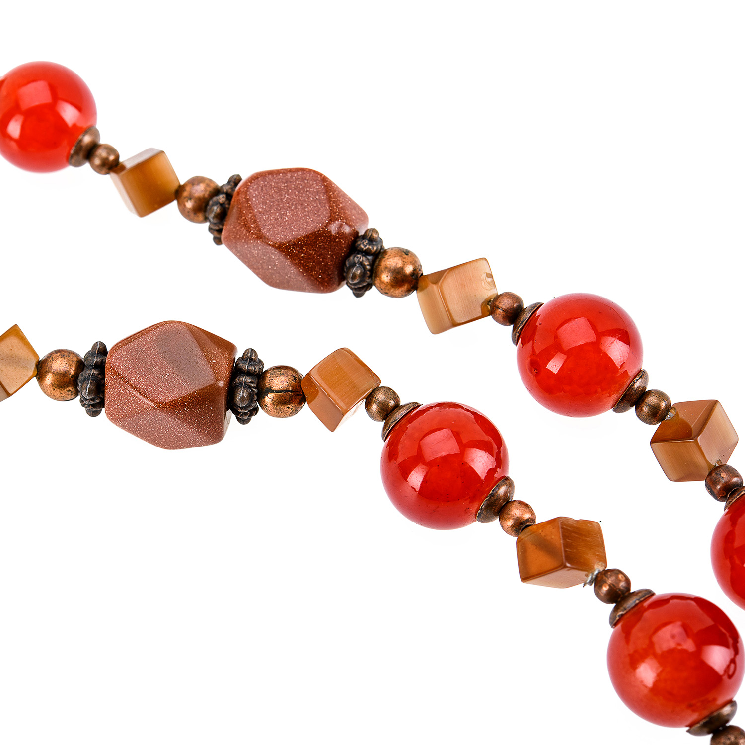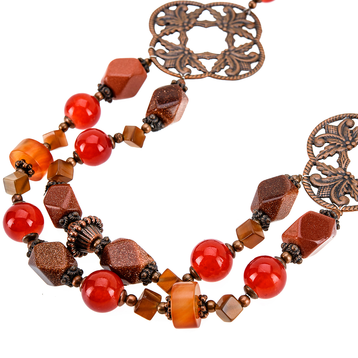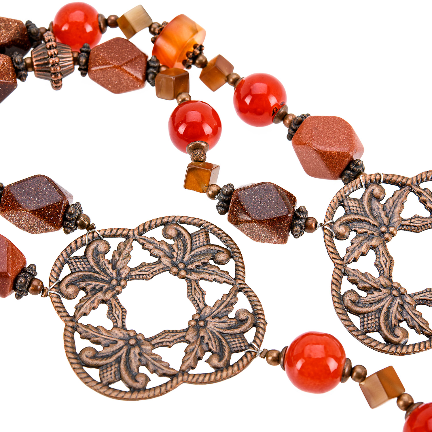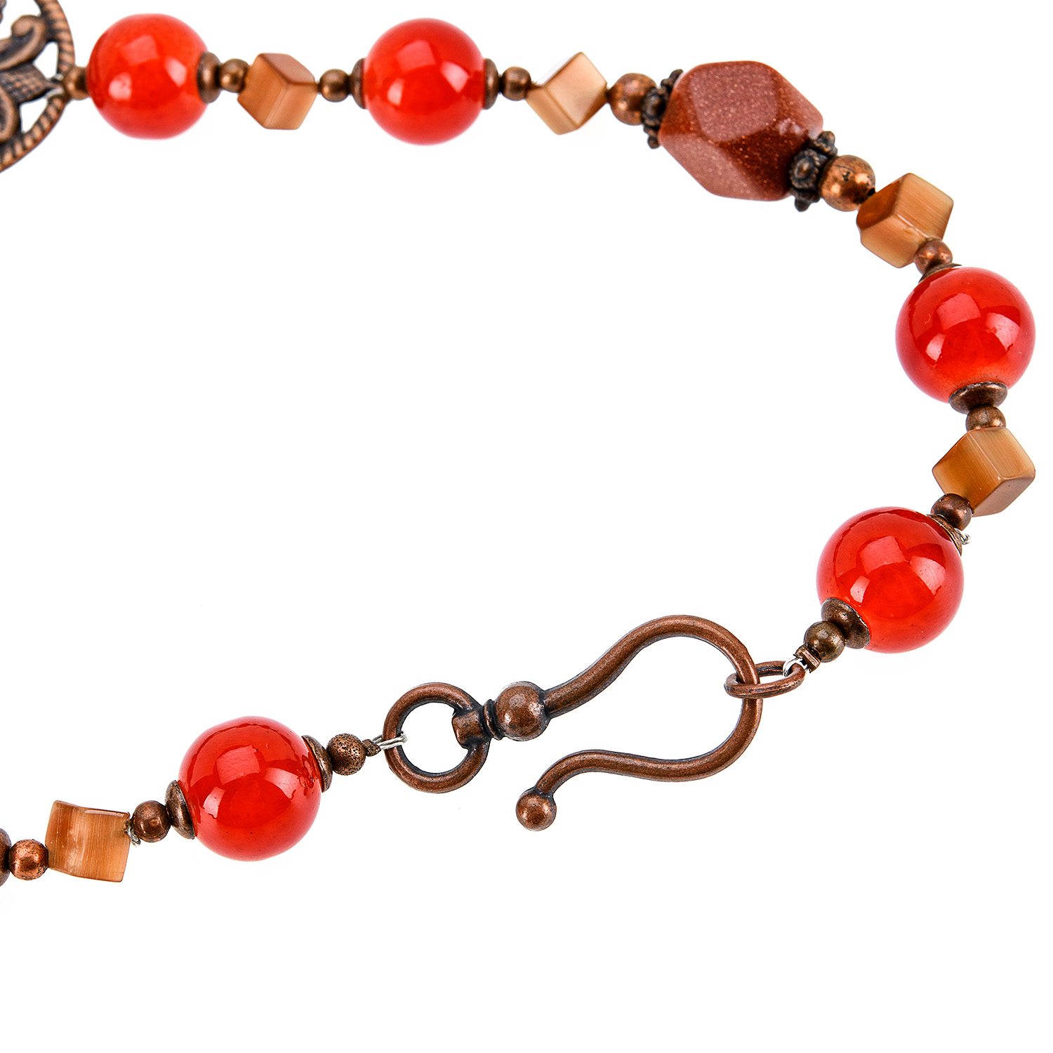 Материалы: сердолик, авантюрин, кошачий глаз, медь.
