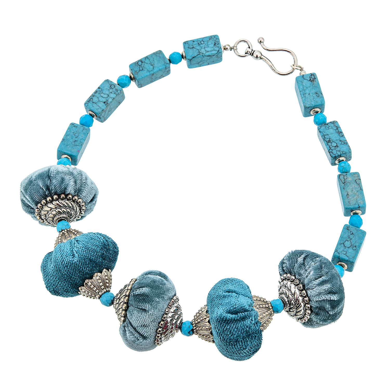 Бусы из натурального камня.Материалы: бирюза, хризоколла, бархат, никель.