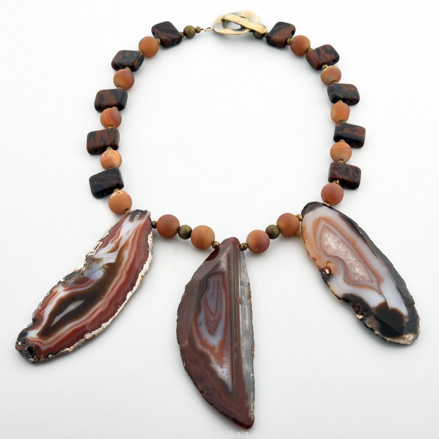 Согласно легенде, японские правители происходили от божества Нинигини, которому Аматарэс подарил три ценных предмета: зеркало - символ душевной чистоты, меч и яшму, поддерживающую в обладателе милосердие, порядочность. Греки верили, что камень облегчает муки рожениц. Гиппократ утверждал: яшма излечивает лихорадку, эпилепсию. Римские врачи вырезали на камне имя больного, что гарантировало его спасение. Христиане признавали его символом душевной гармонии - храмы, одежда священнослужителей украшались яшмой. Они сравнивали минерал с кровью Иисуса, отпускающей все грехи. Византийский владыка преподнес спасительную чашу монахам Афона, предназначенную молящимся. Русские открыли чудодейственные свойства яшмы к 18 веку. Ломоносов говорил о нем как «сокровище отечества». Пушкин носил зеленый браслет из яшмы, притягивающий энергию любви. Бусы из натурального камня (яшма, пирит). Материал: яшма, пирит. Размер: длина - 50 см. ..