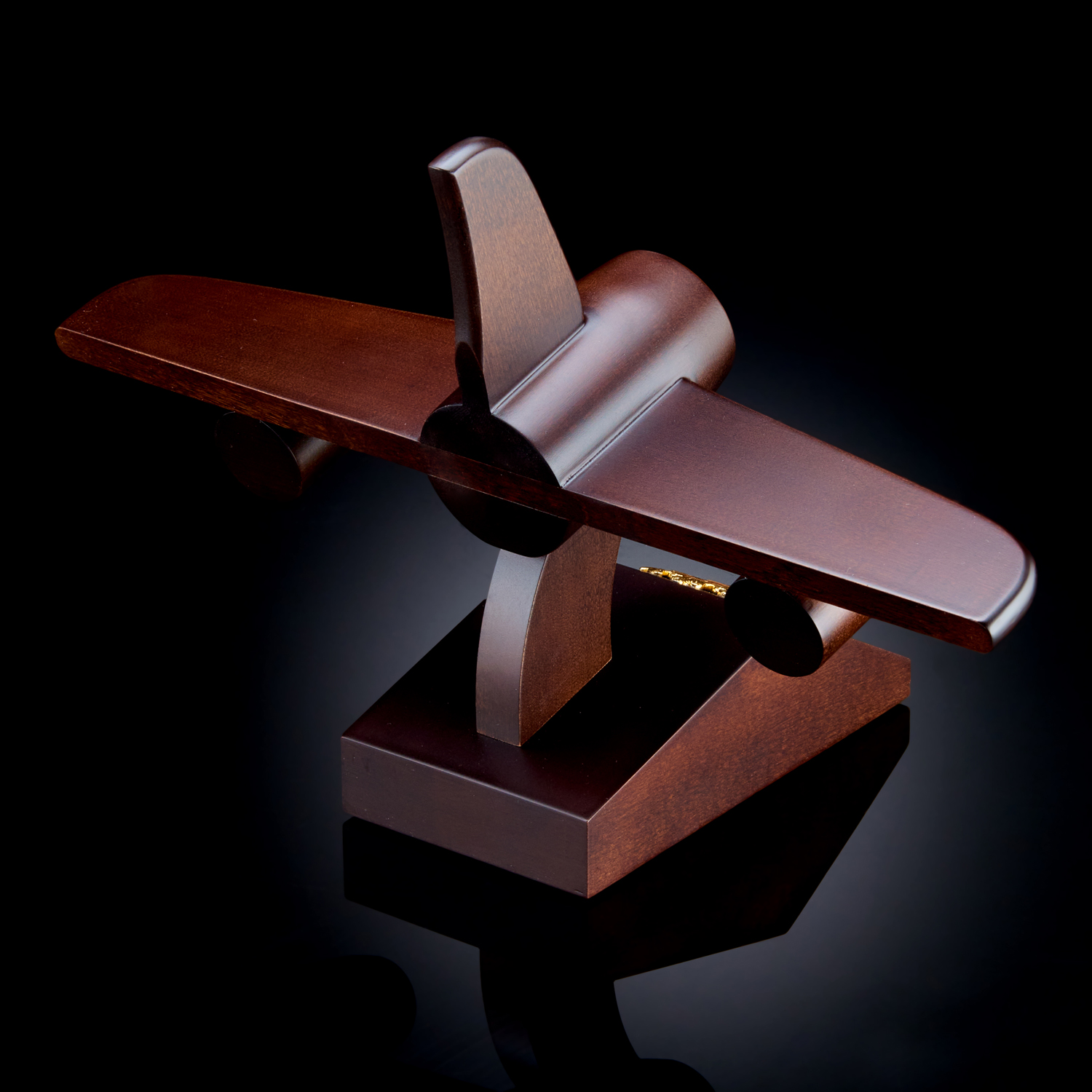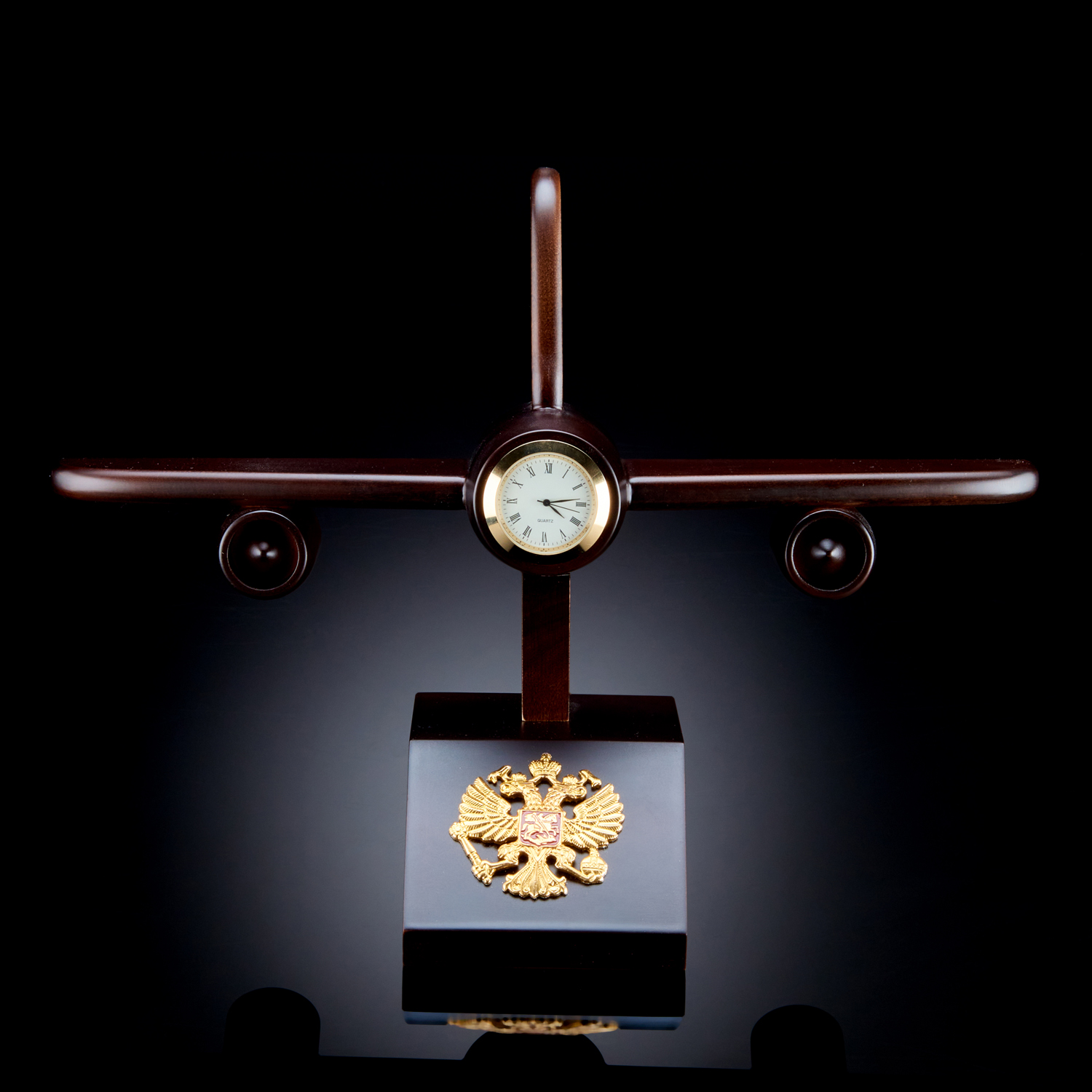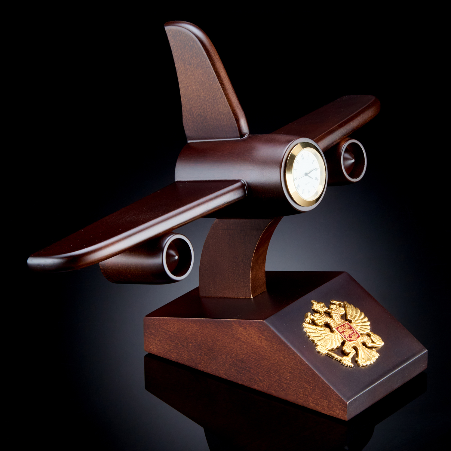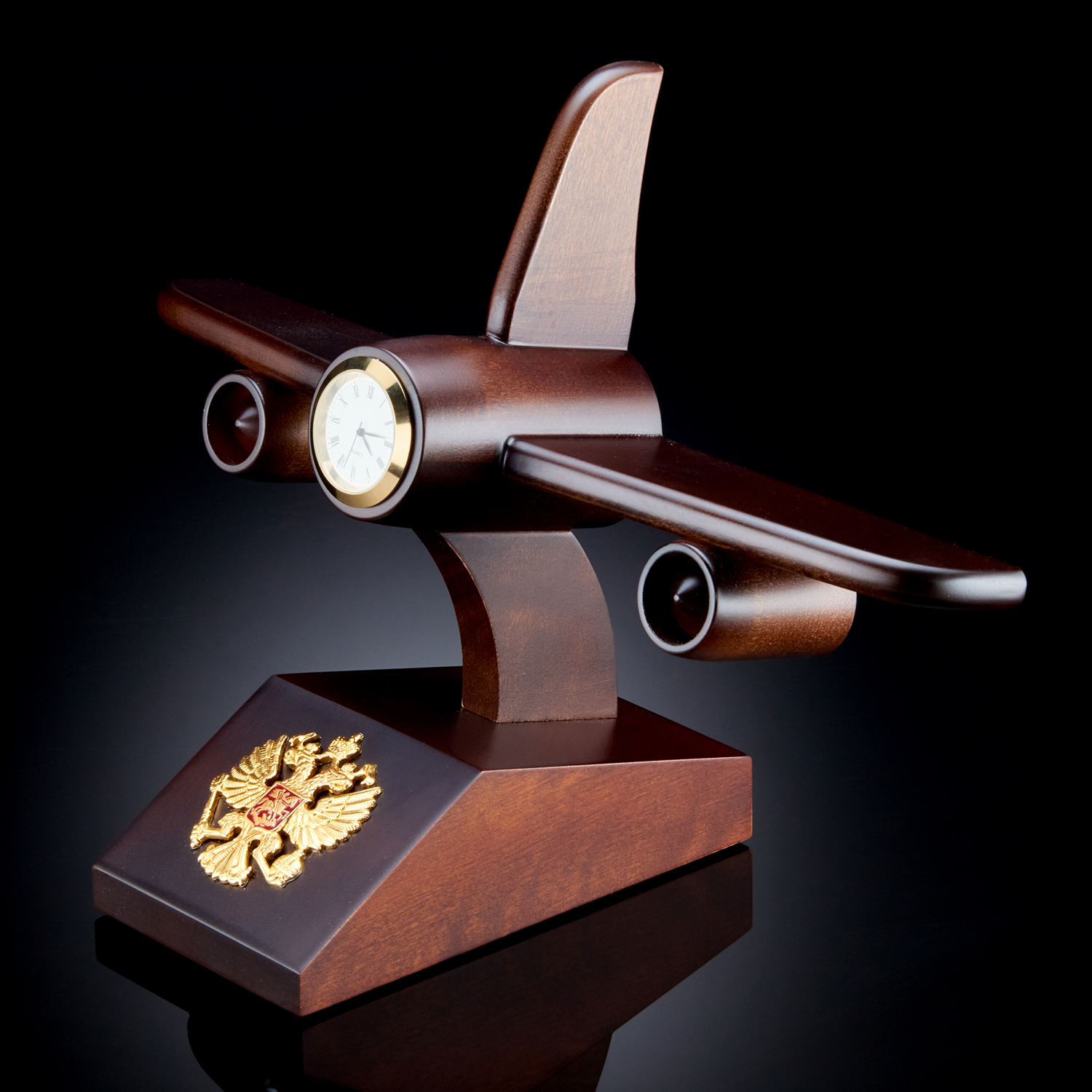 Часы настольные из натурального дерева "Самолёт" с гербом России