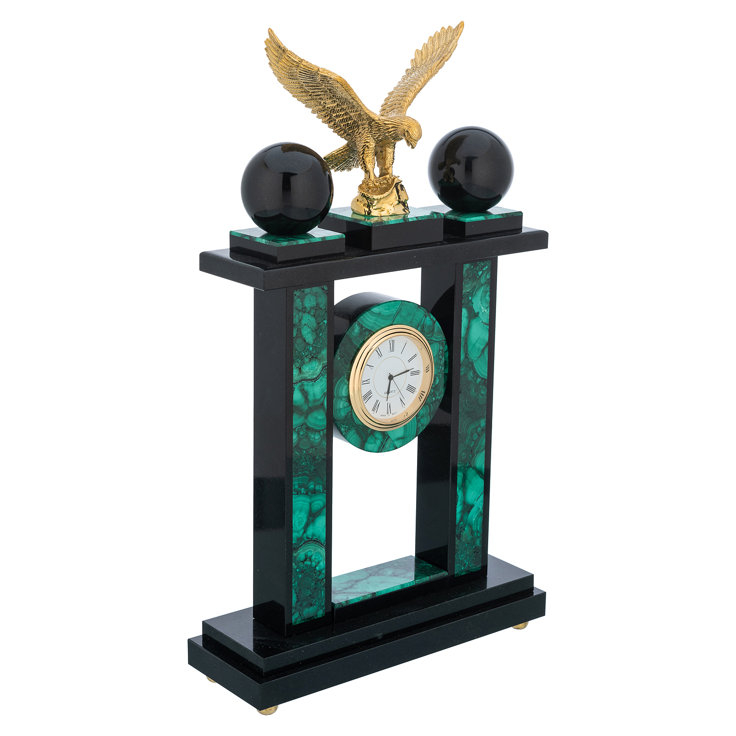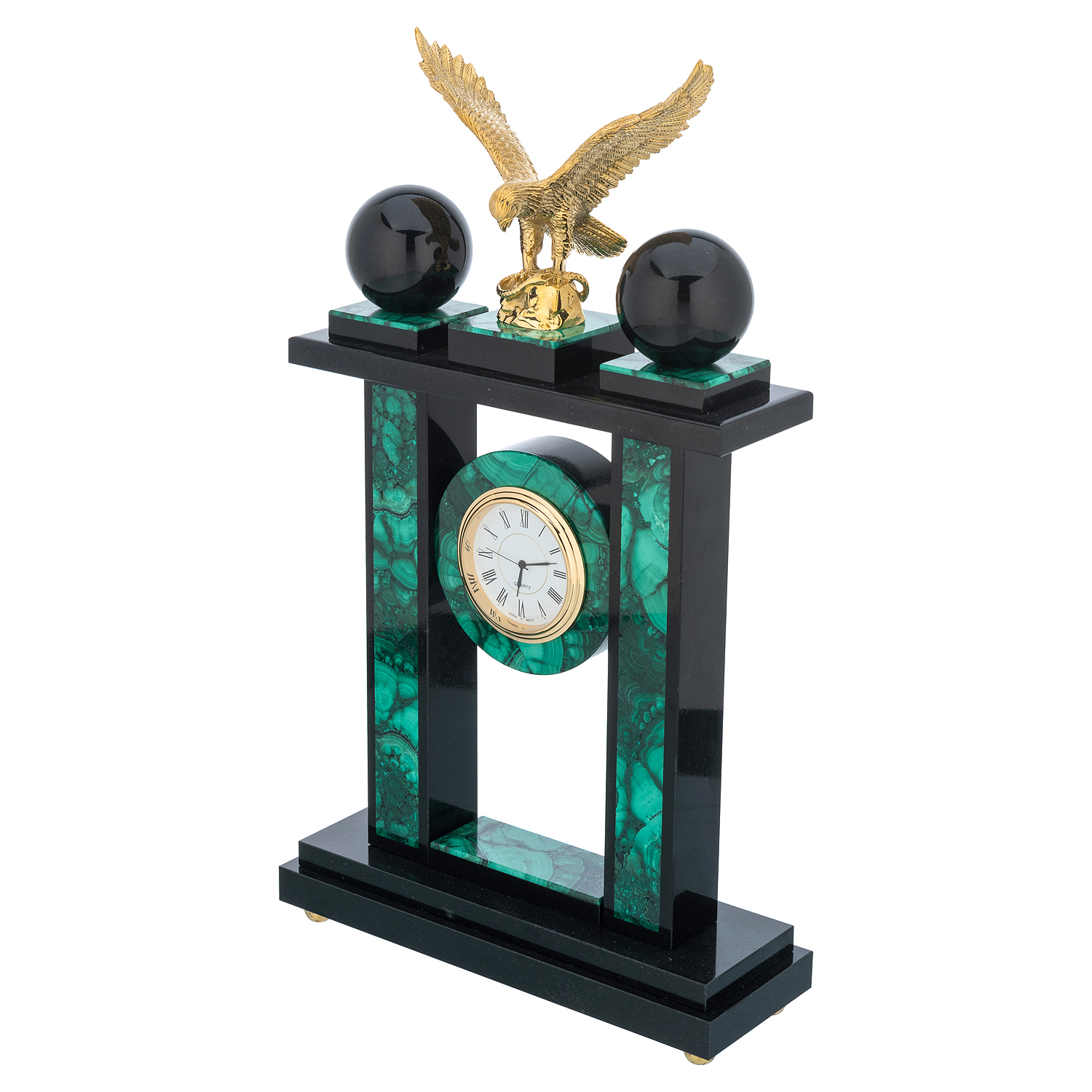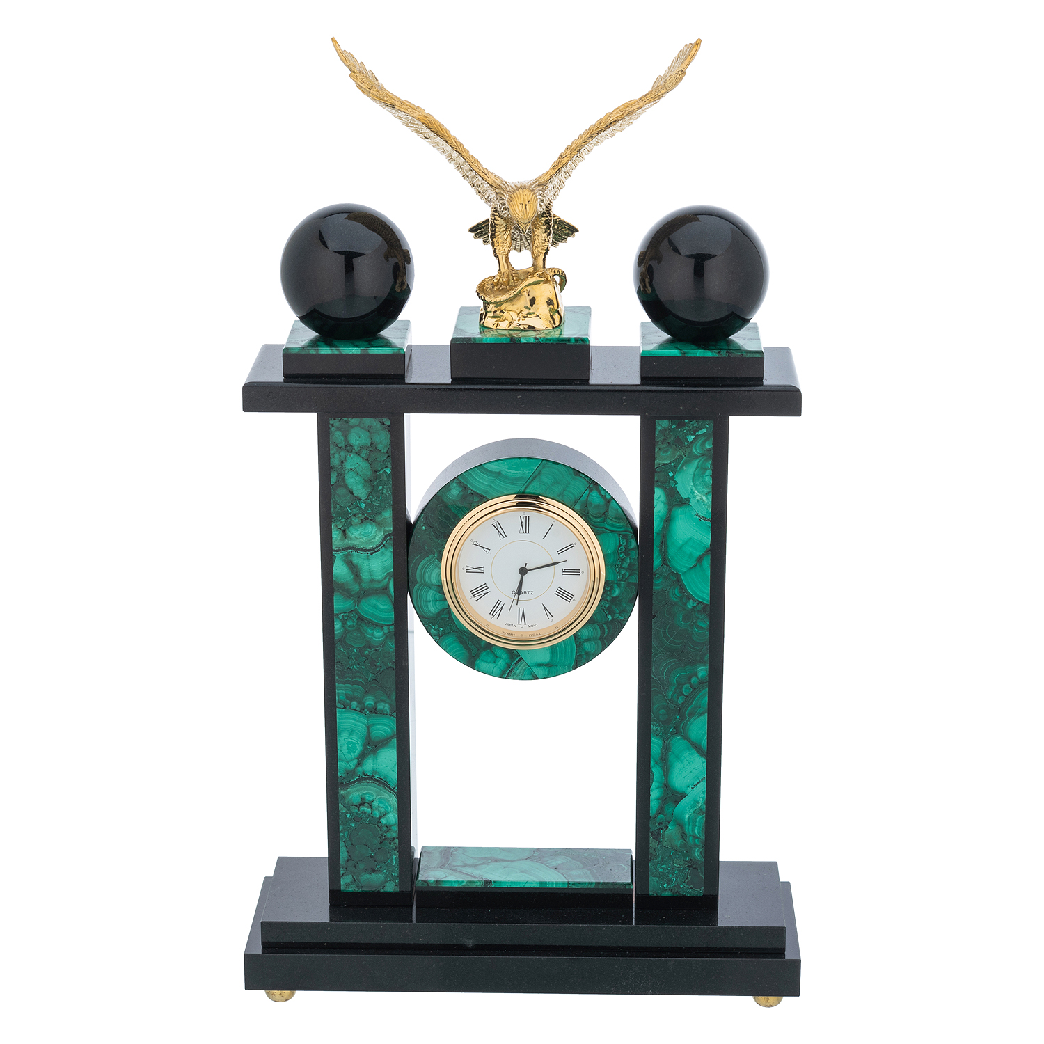 Часы каминные из малахита "Орел"