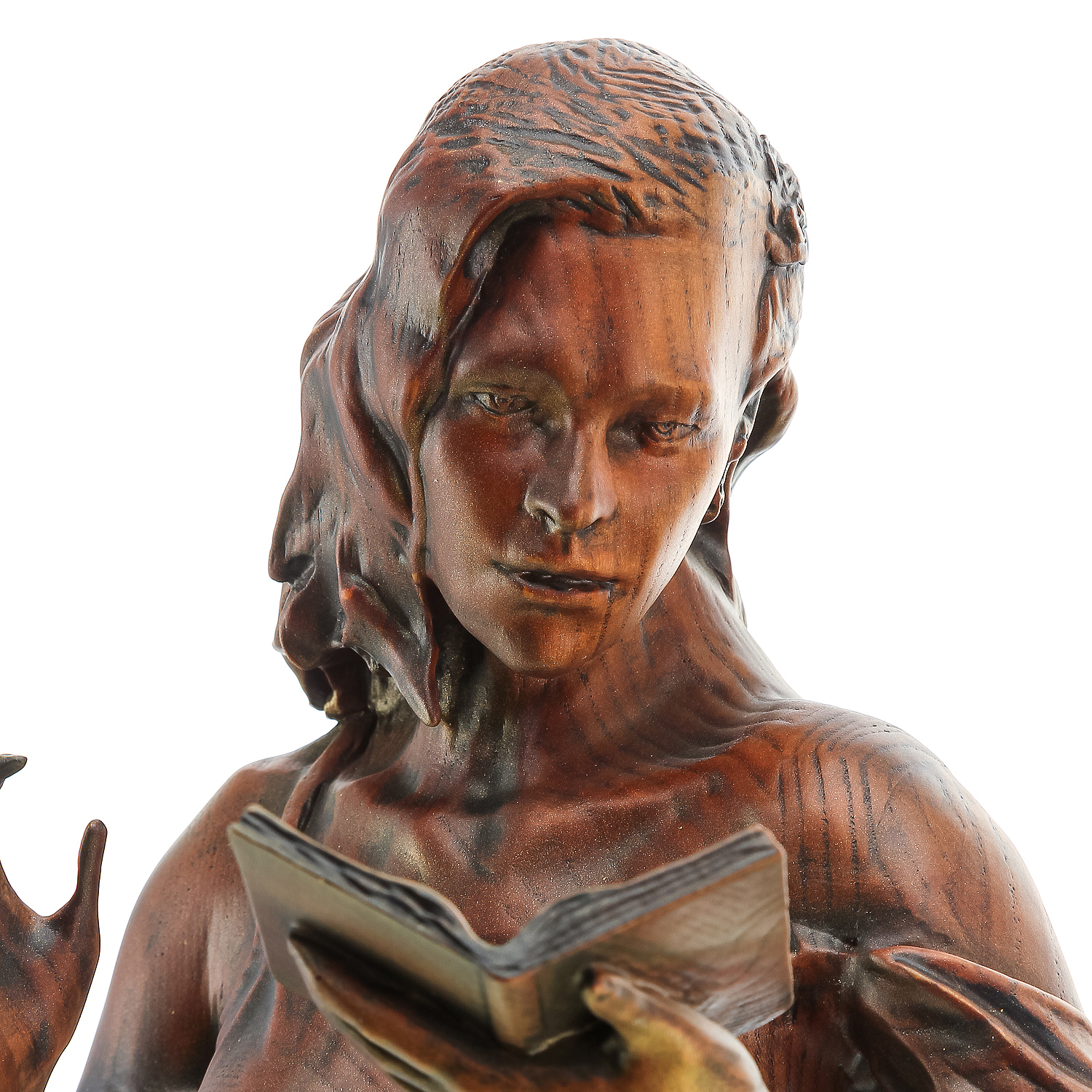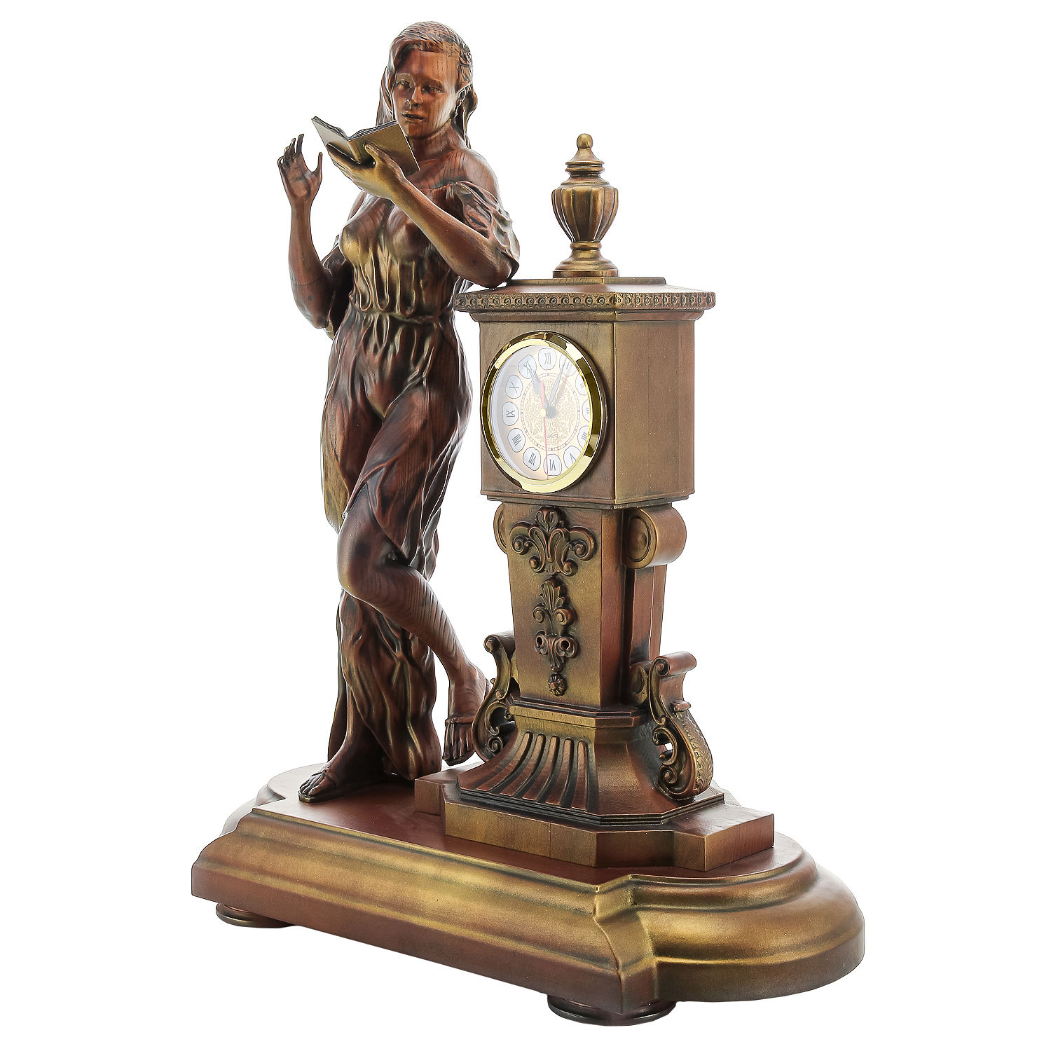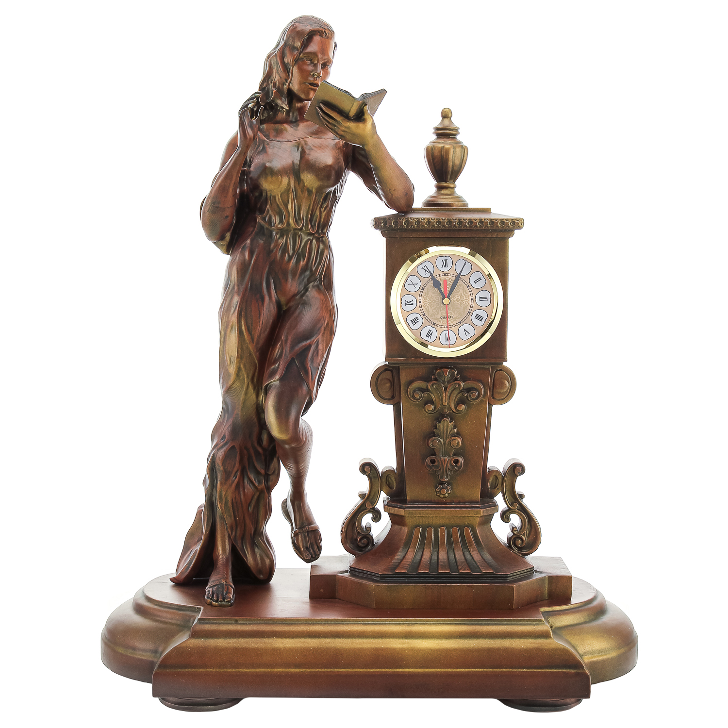 Деревянные резные часы "Девушка с книгой". Высота 71,5 см