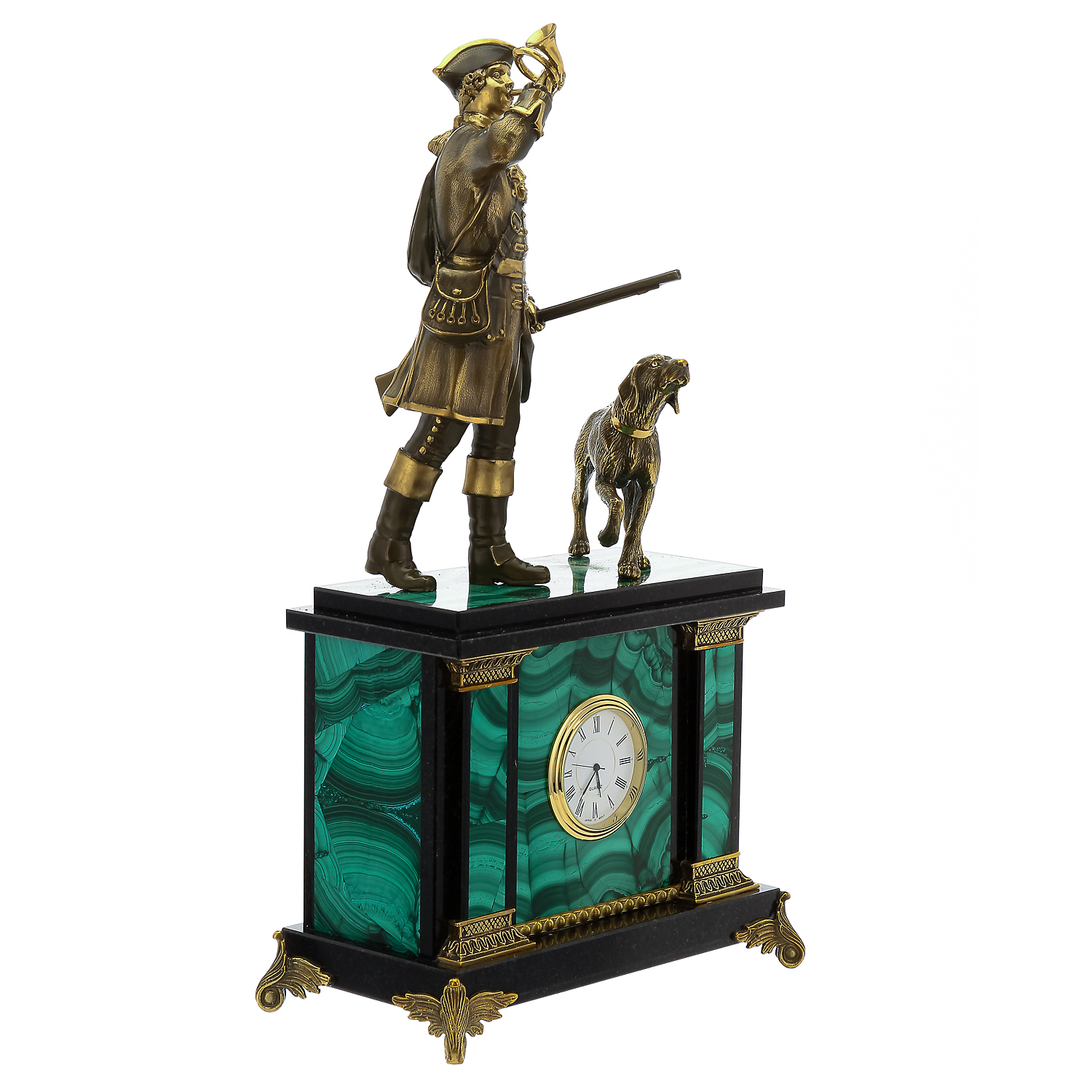 Часы из малахита "Охотник"