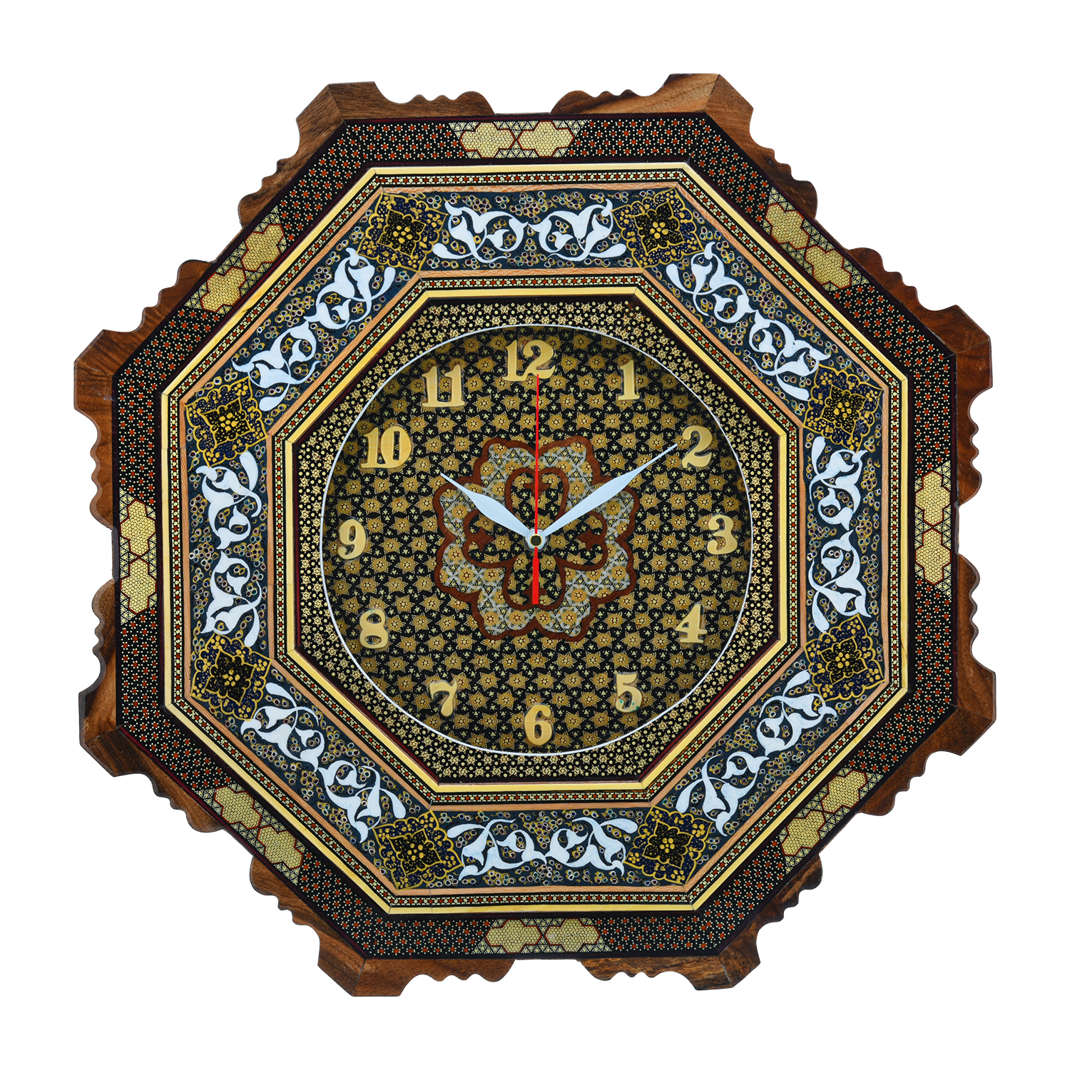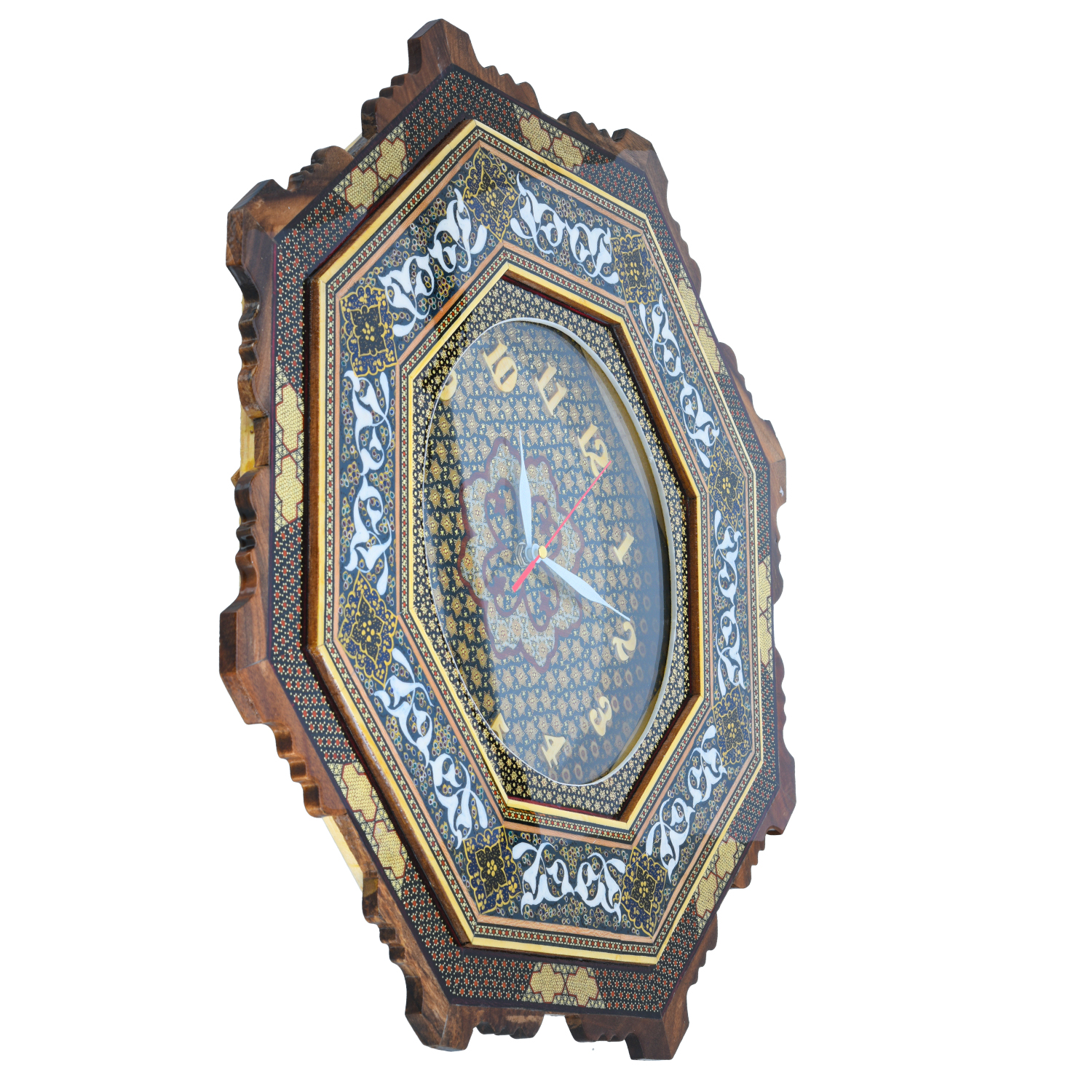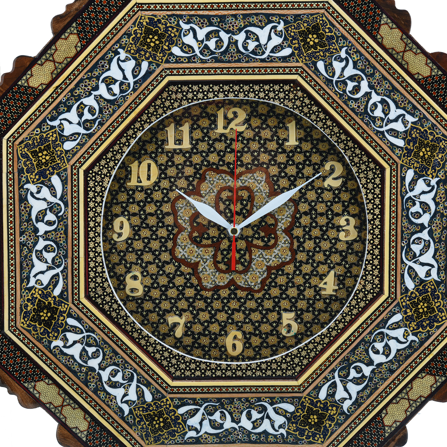 Эти часы — не просто инструмент измерения времени, а арт-объект, в котором слились математическая гармония восьмигранника и многовековое наследие персидского искусства. Каждая грань восьмиугольника, отсылающего к сакральной геометрии исламских орнаментов, украшена Хатам Кари — сложной инкрустацией из благородного дерева, латуни и кости, образующей звёздчатые узоры.Эти часы созданы для интерьеров, где ценится диалог культур: они одинаково органично смотрятся в кабинете с кожаным креслом, гостиной в стиле ар-деко или современной лофт-пентхаусе. Для тех, кто видит в часах не механизм, а философию: восьмигранник — символ бесконечности, Хатам Кари — дань терпению, а ручная роспись — дыхание веков.