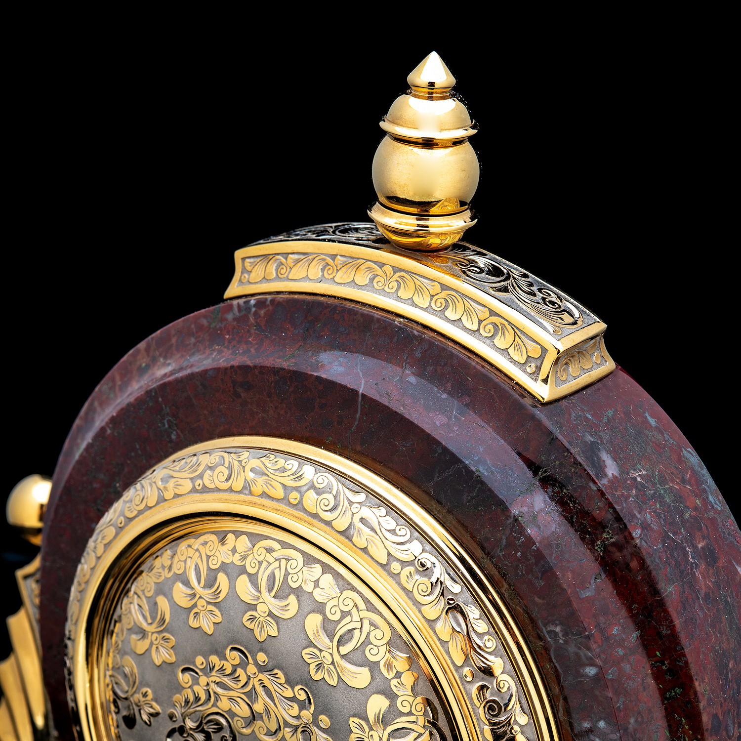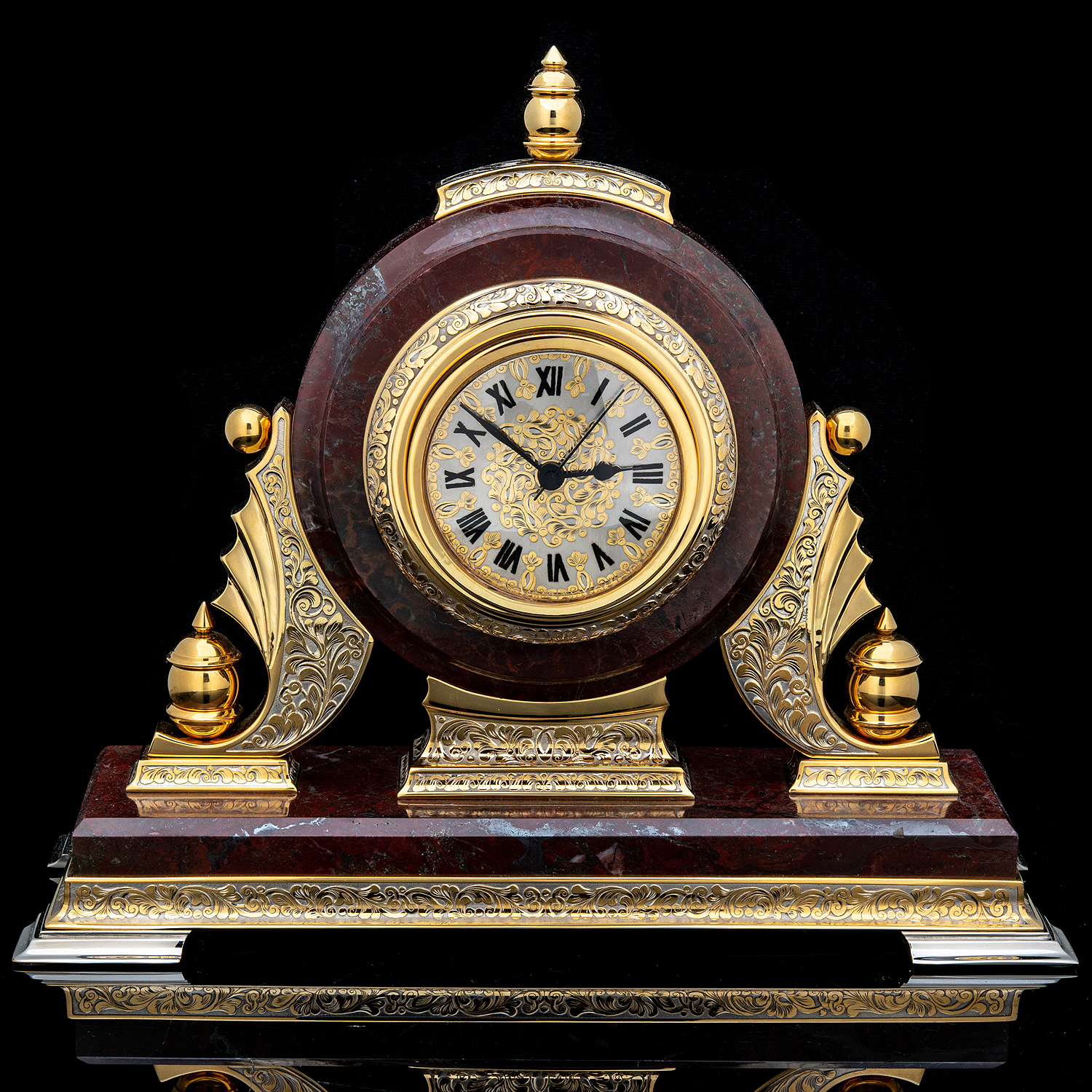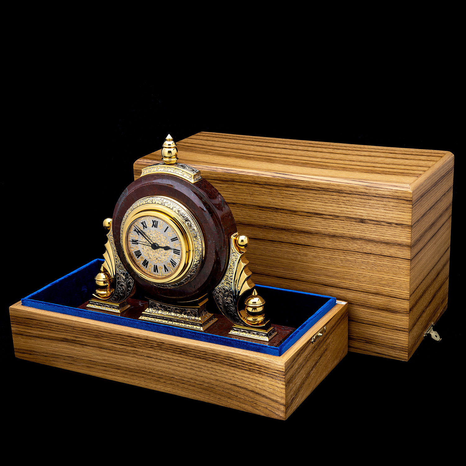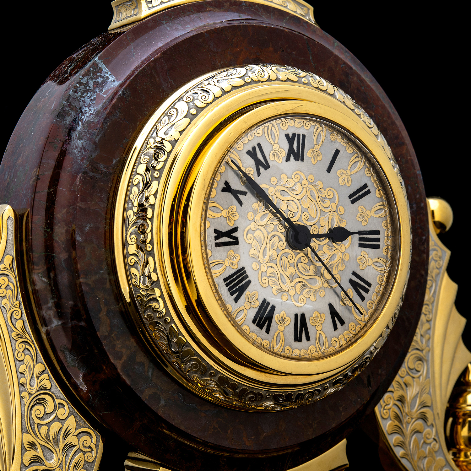 Часы настольные из камня с позолотой. Златоуст.Материалы: латунь, никель, золото 999,9*, яшма.