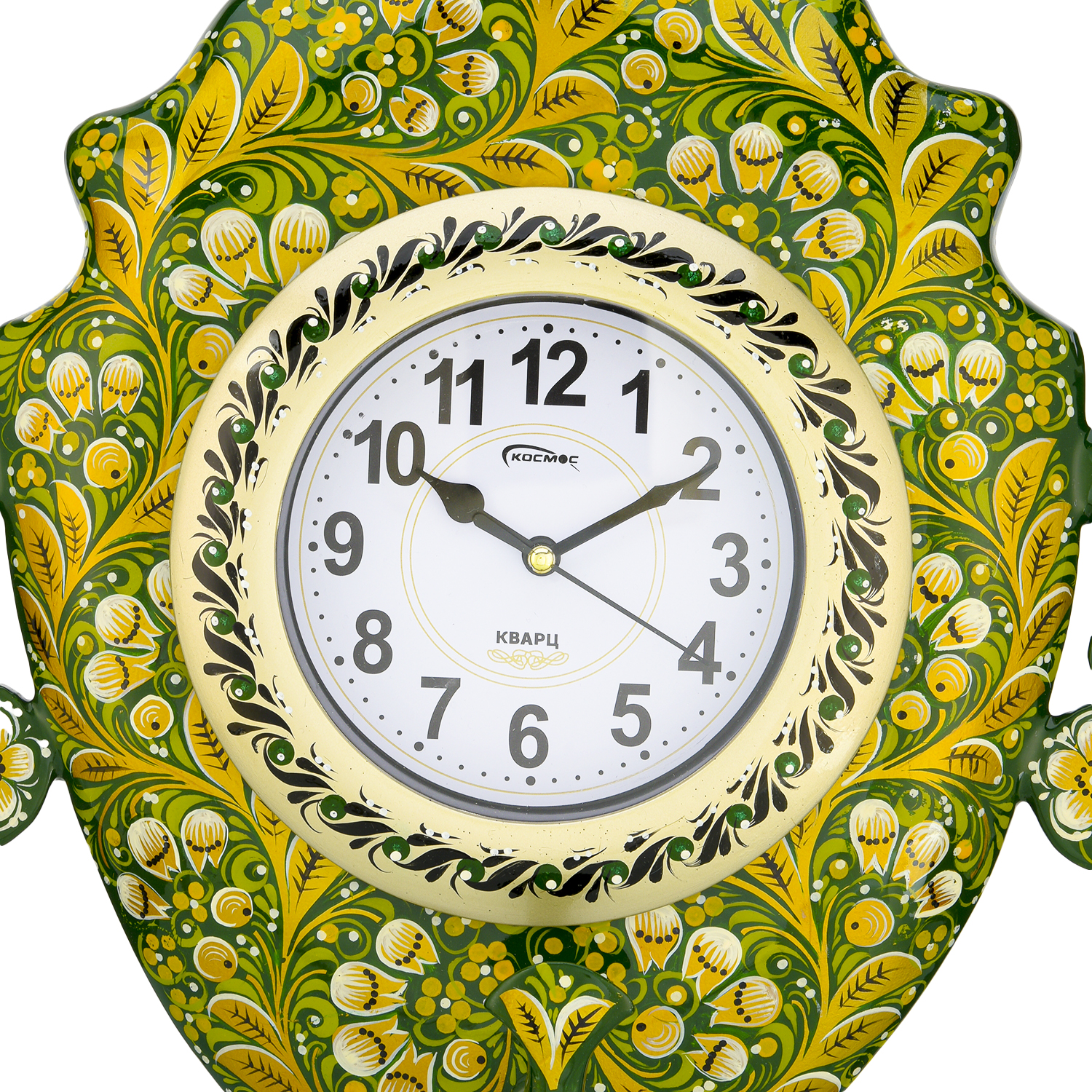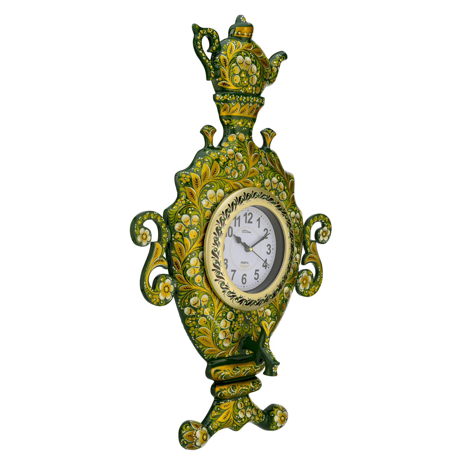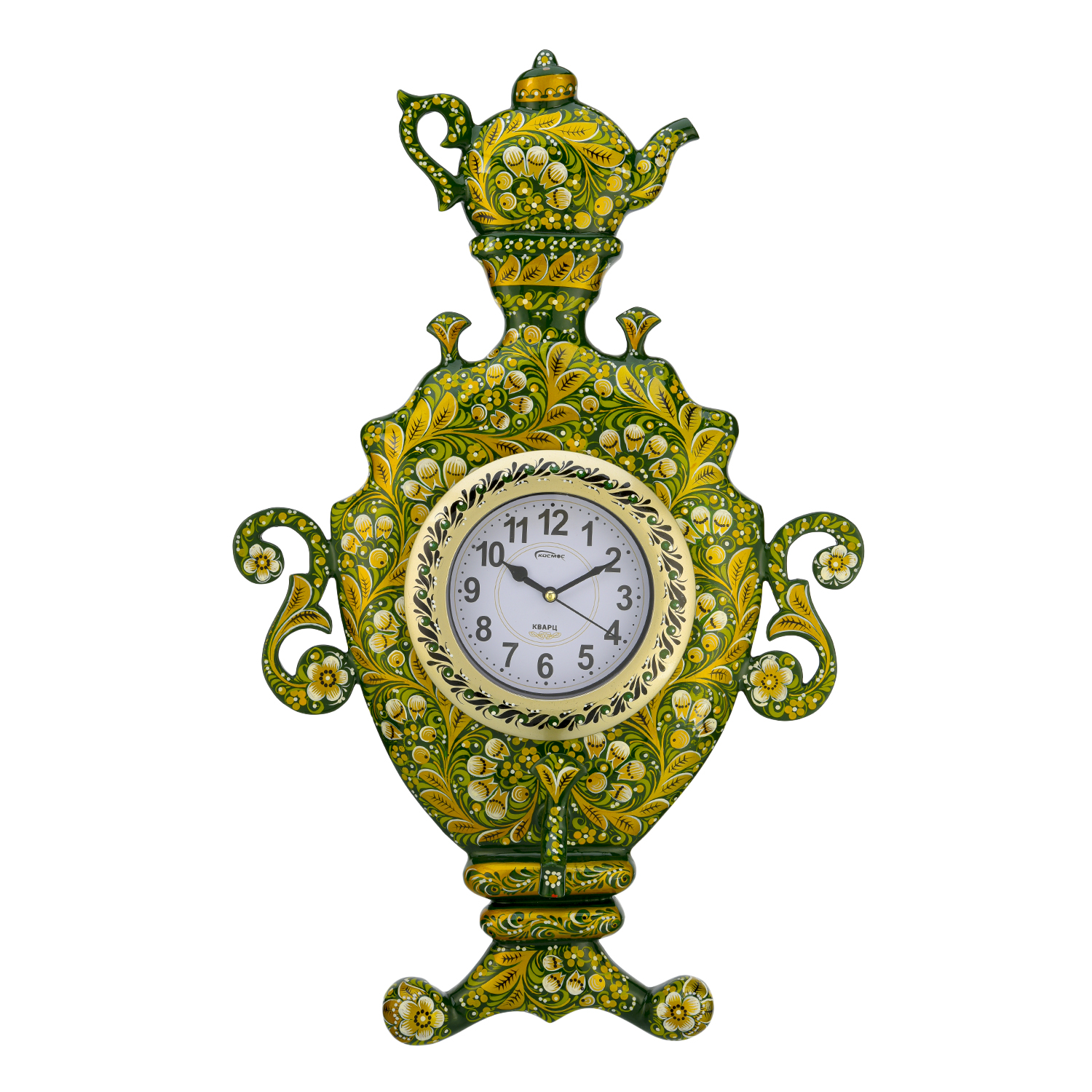 Часы настенные "Самовар". Хохлома.Материалы: дерево, краски, лак.