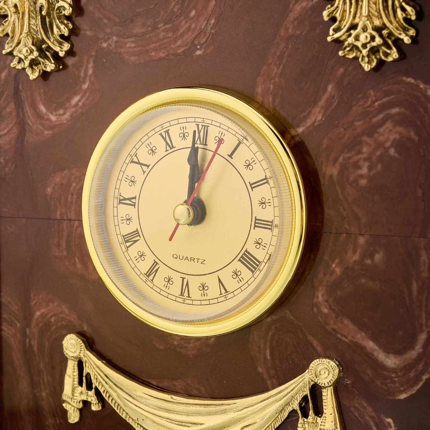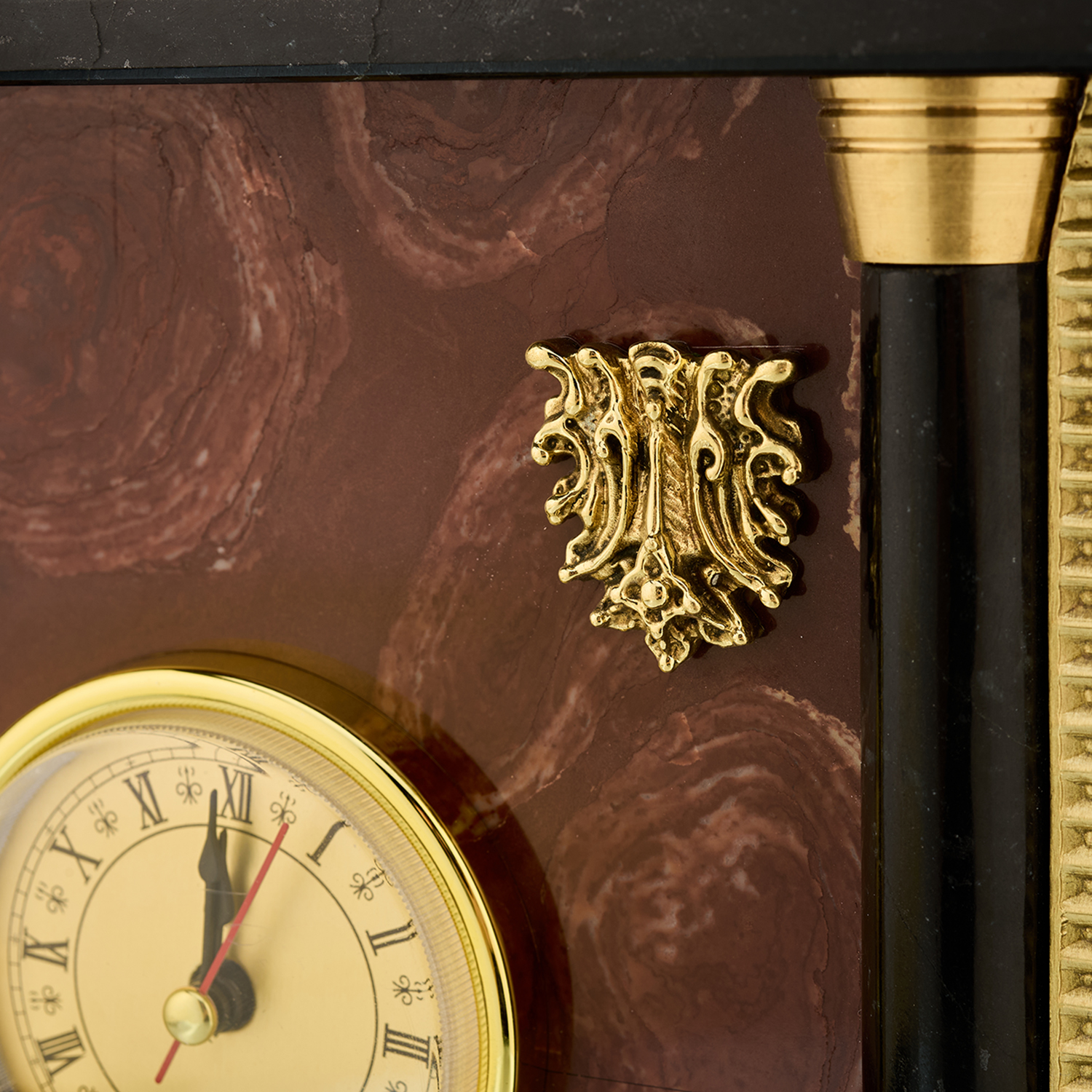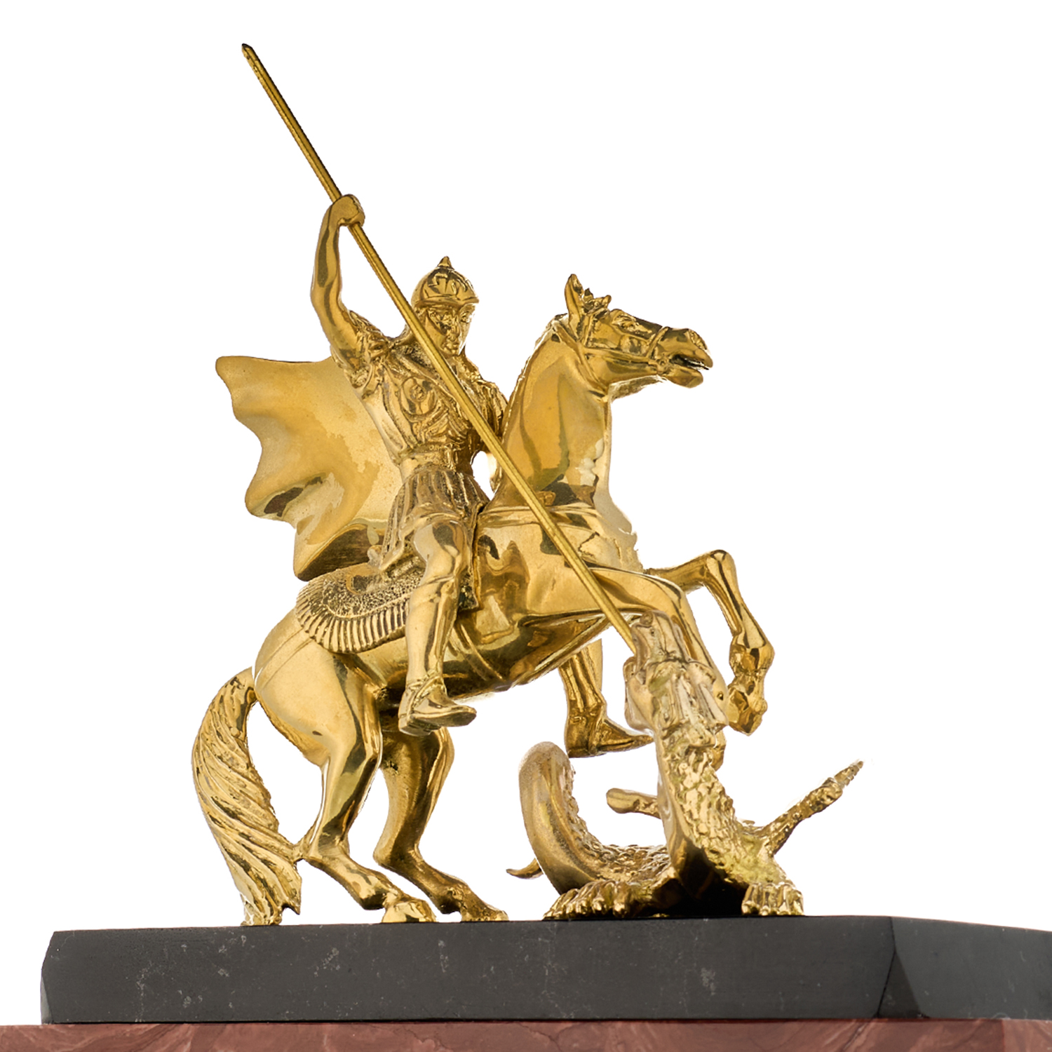 Часы настольные из камня "Георгий Победоносец". Златоуст.Материалы: яшма, бронза, золото 999,9*.