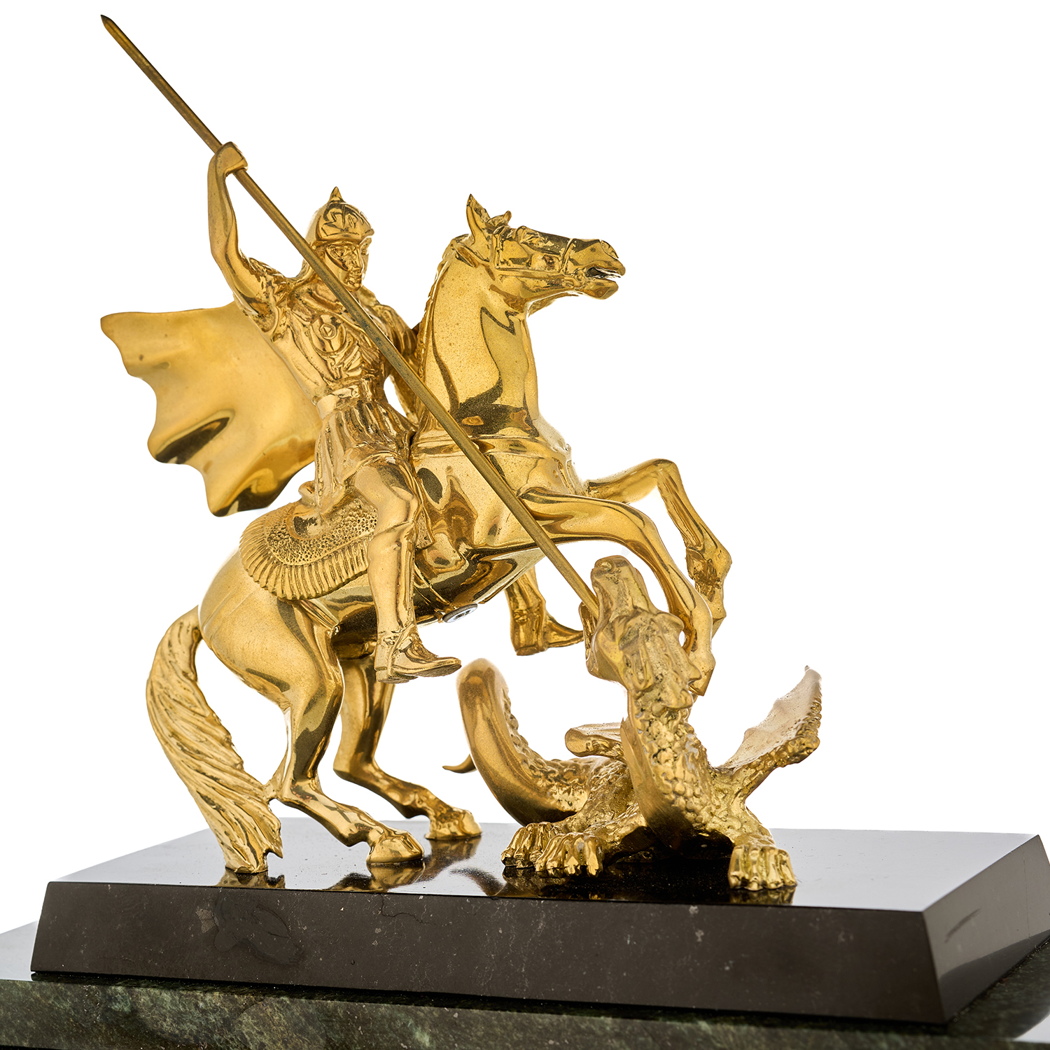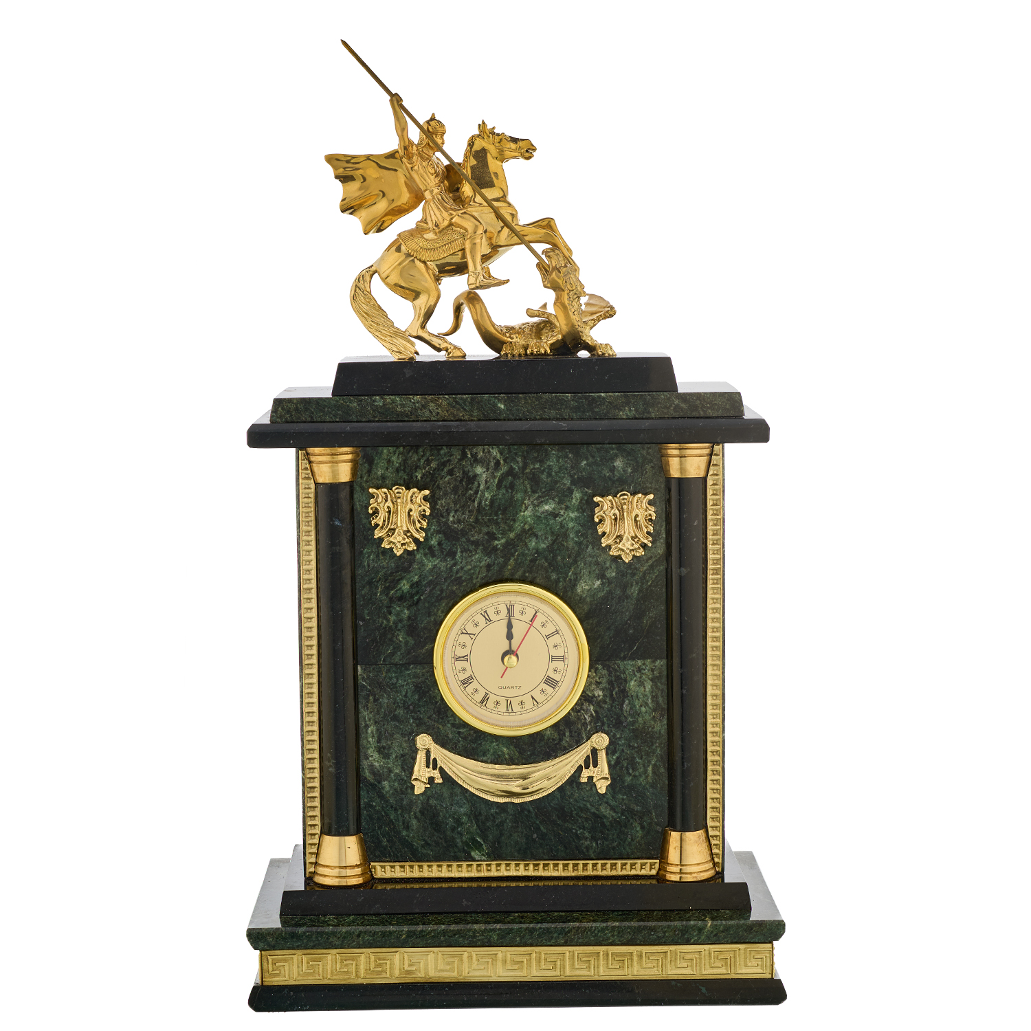 Часы настольные из камня "Георгий Победоносец". Златоуст.
