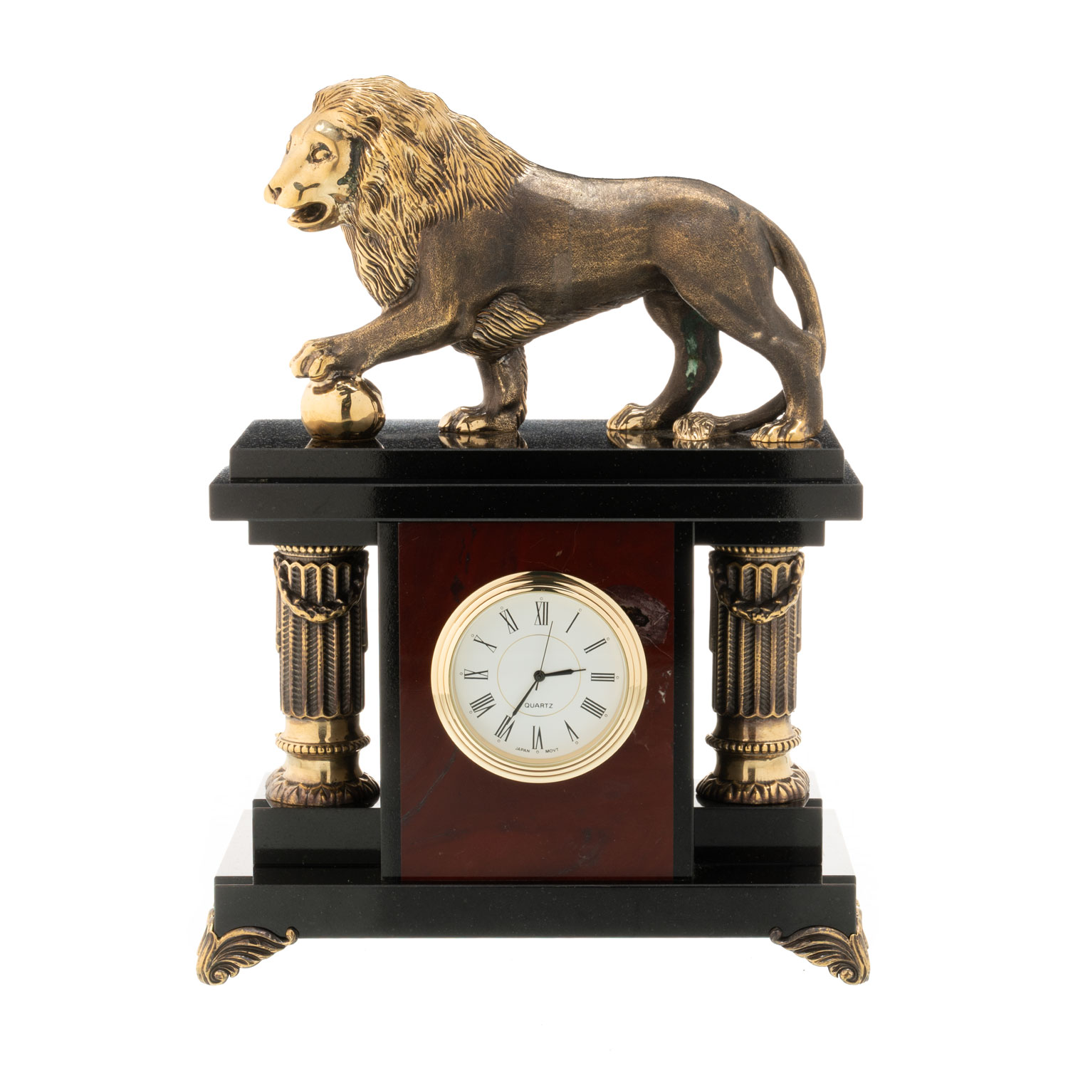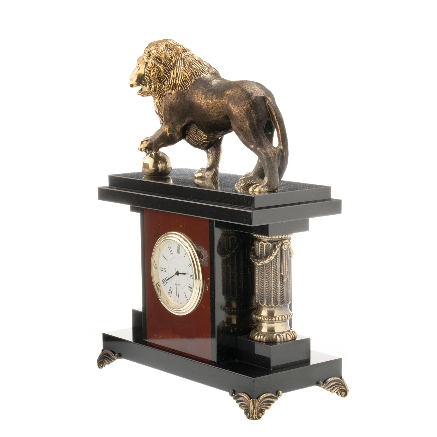 Часы настольные из натурального камня "Лев".Материалы: яшма, бронза, золочение.