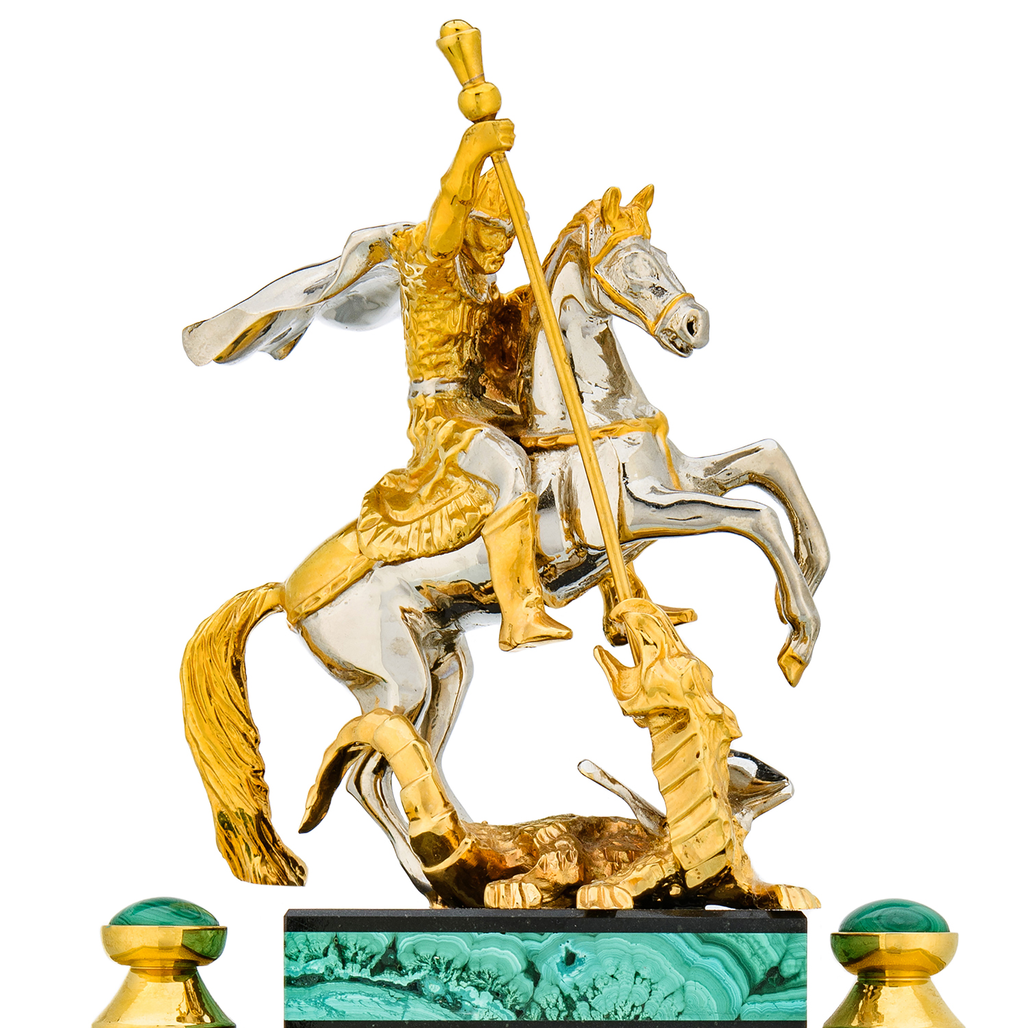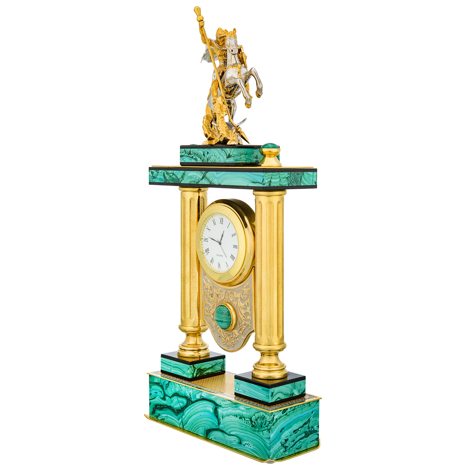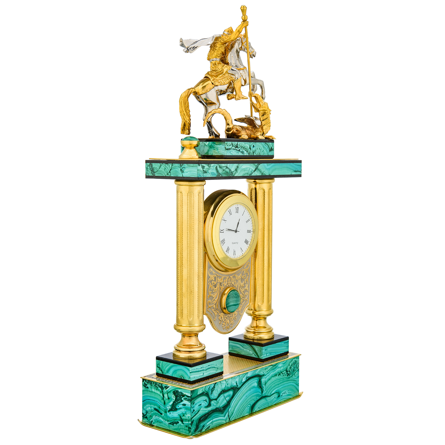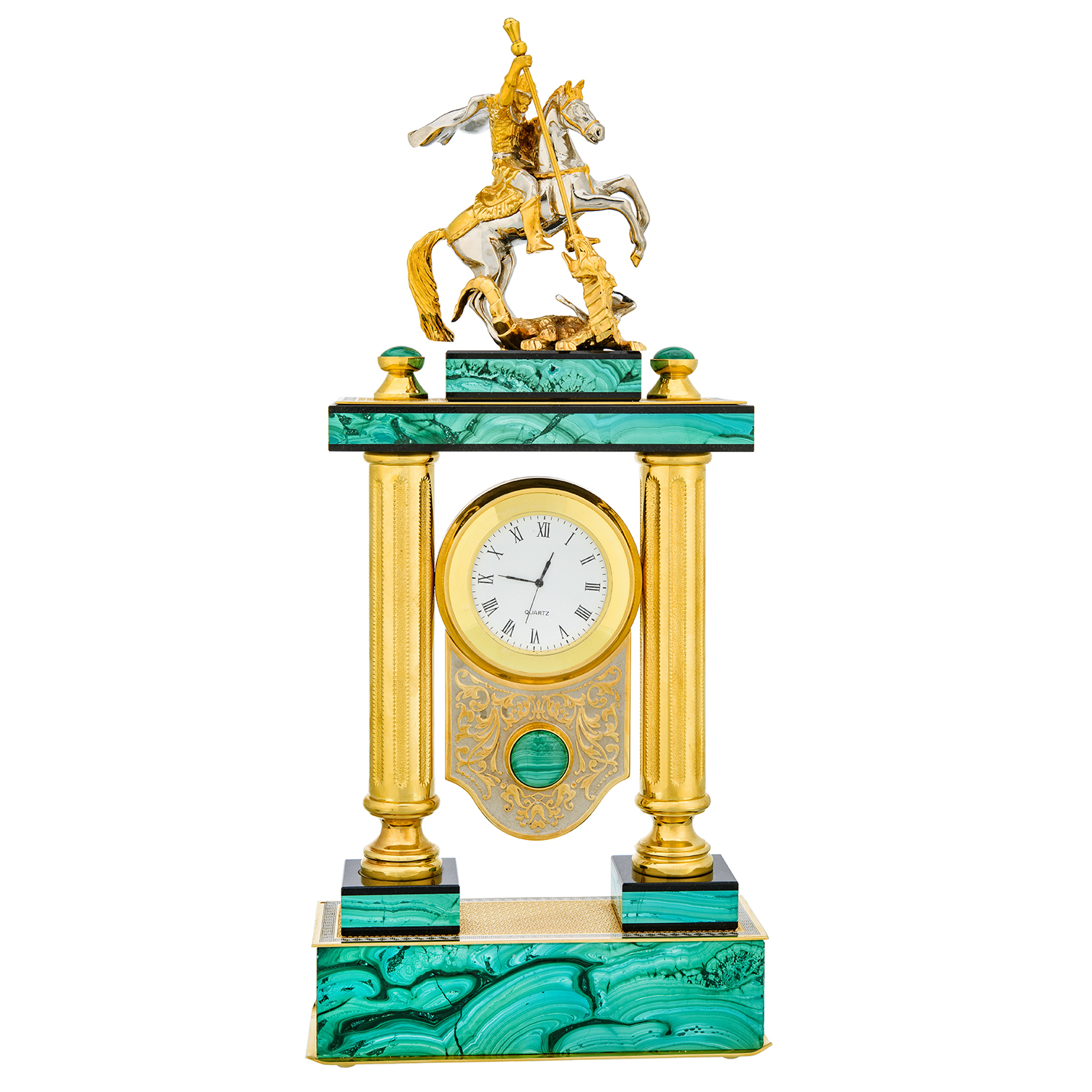 Русские подарки и сувениры → Интерьерные изделия → Часы → Часы настольные из камня "Георгий Победоносец"
