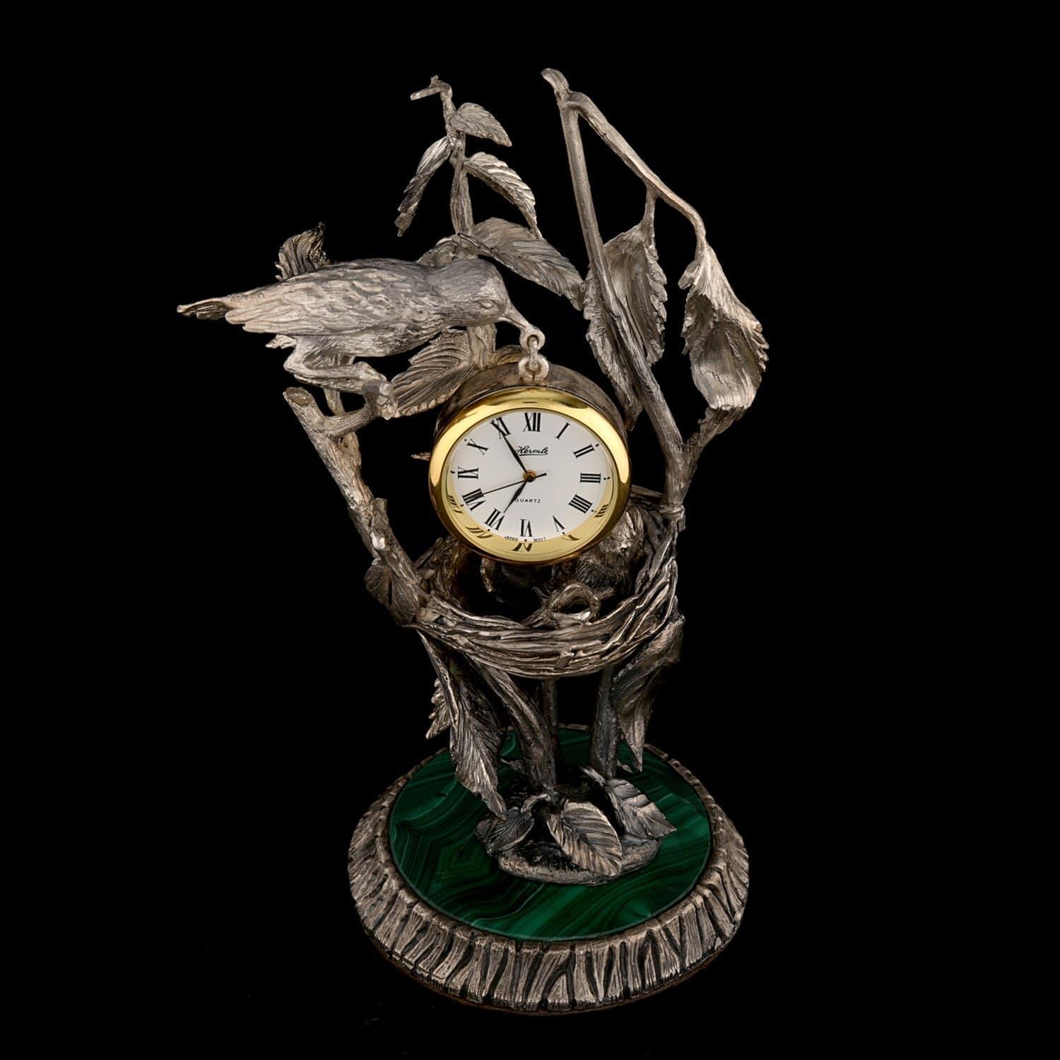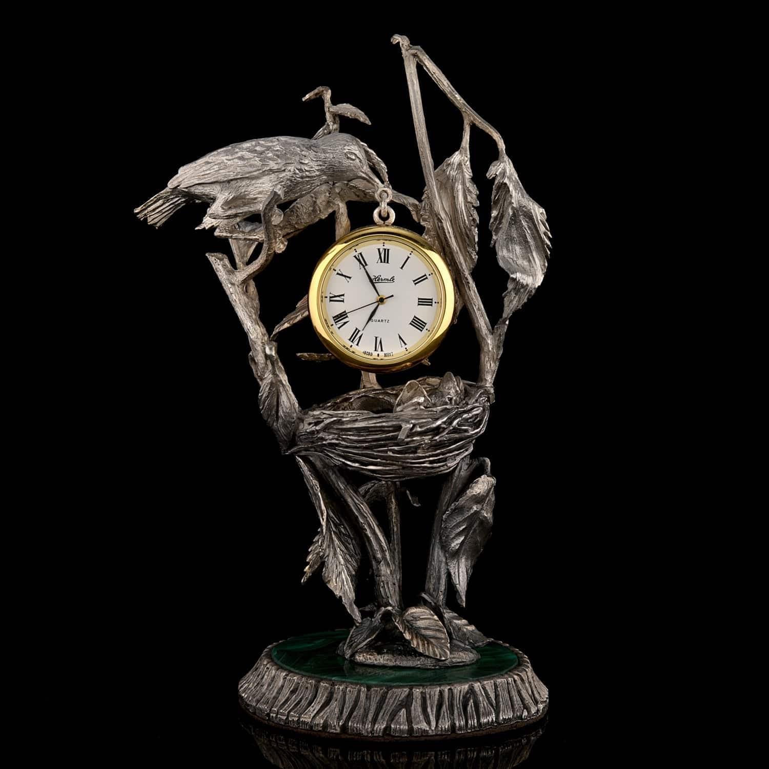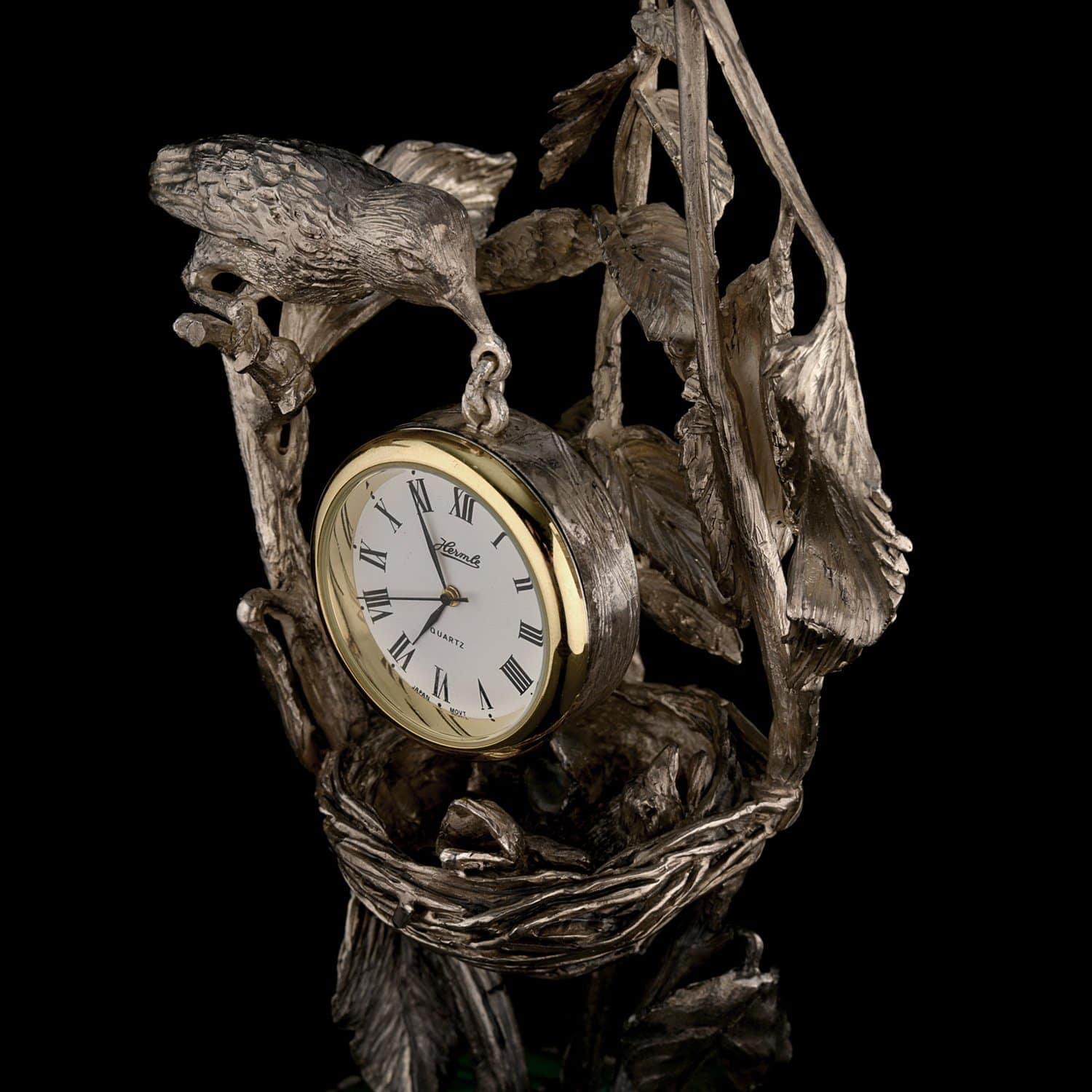 Эксклюзивные настольные часы из серебра "Гнездо"