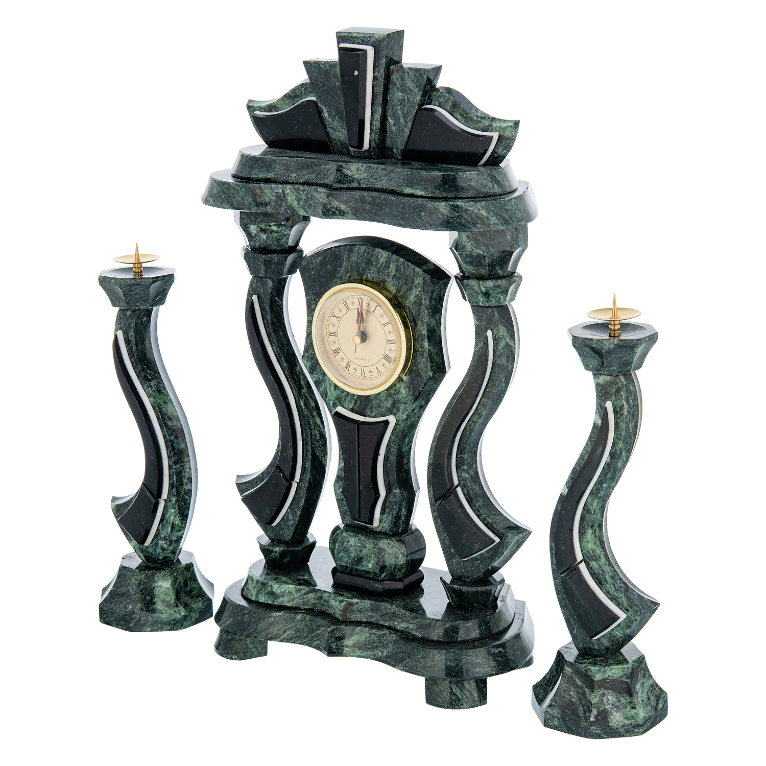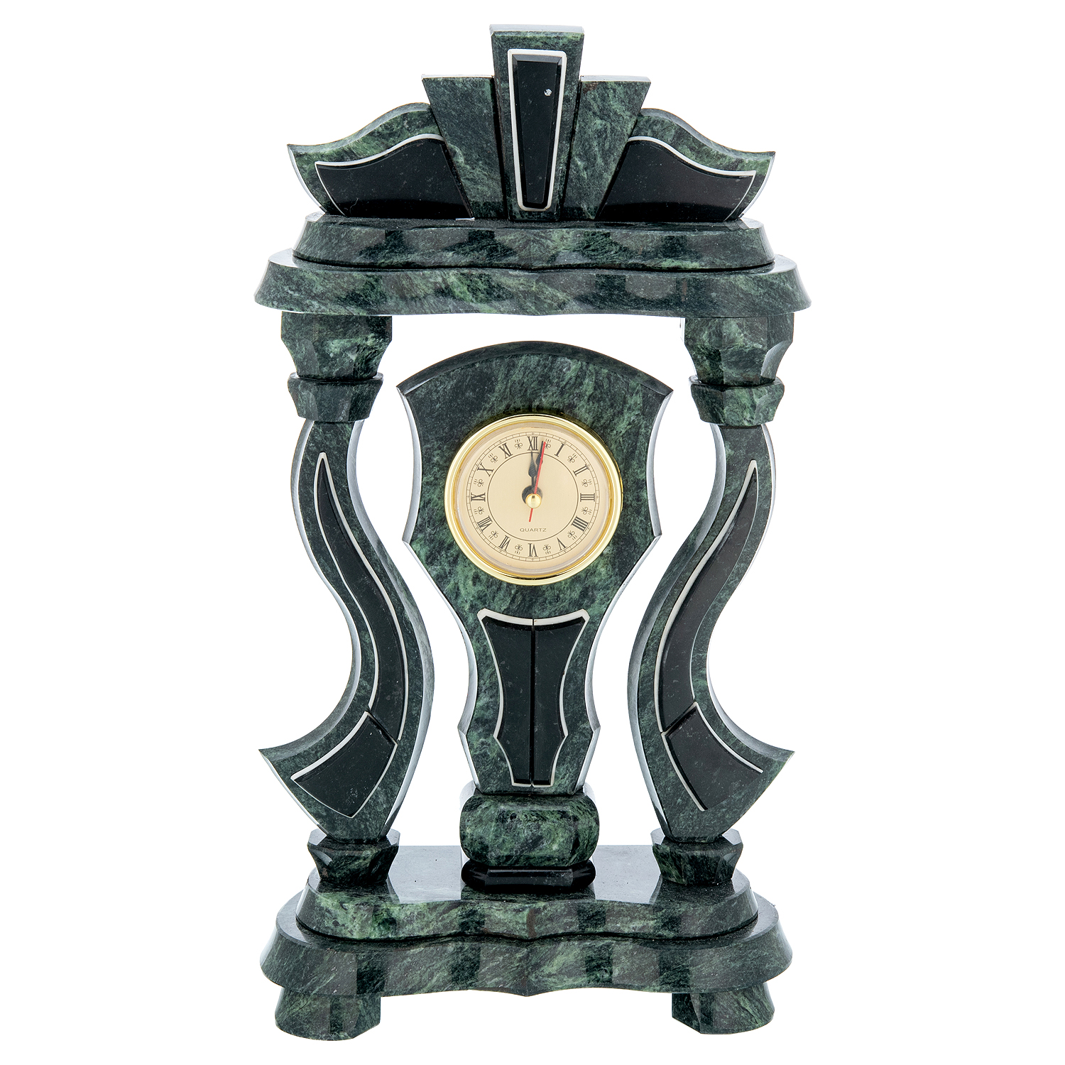 0026109 Златоуст ЧАСЫ "КОРОНА"+ 2 подставки Змеевик. Бронза, Латунь, .