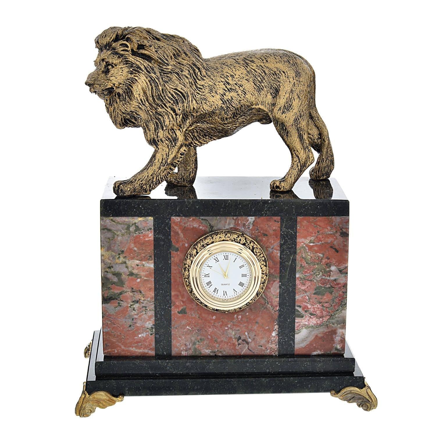 Заполучить в кабинет бронзового Льва, символа власти и силы, - это привилегия. Вашему вниманию - настольные часы в имперском стиле с монументальным корпусом из природного минерала, камней змеевика и мрамолита. Часы со скульптурой льва - образцом художественного литья - создают в интерьере символичный акцент и место силы...Материал: