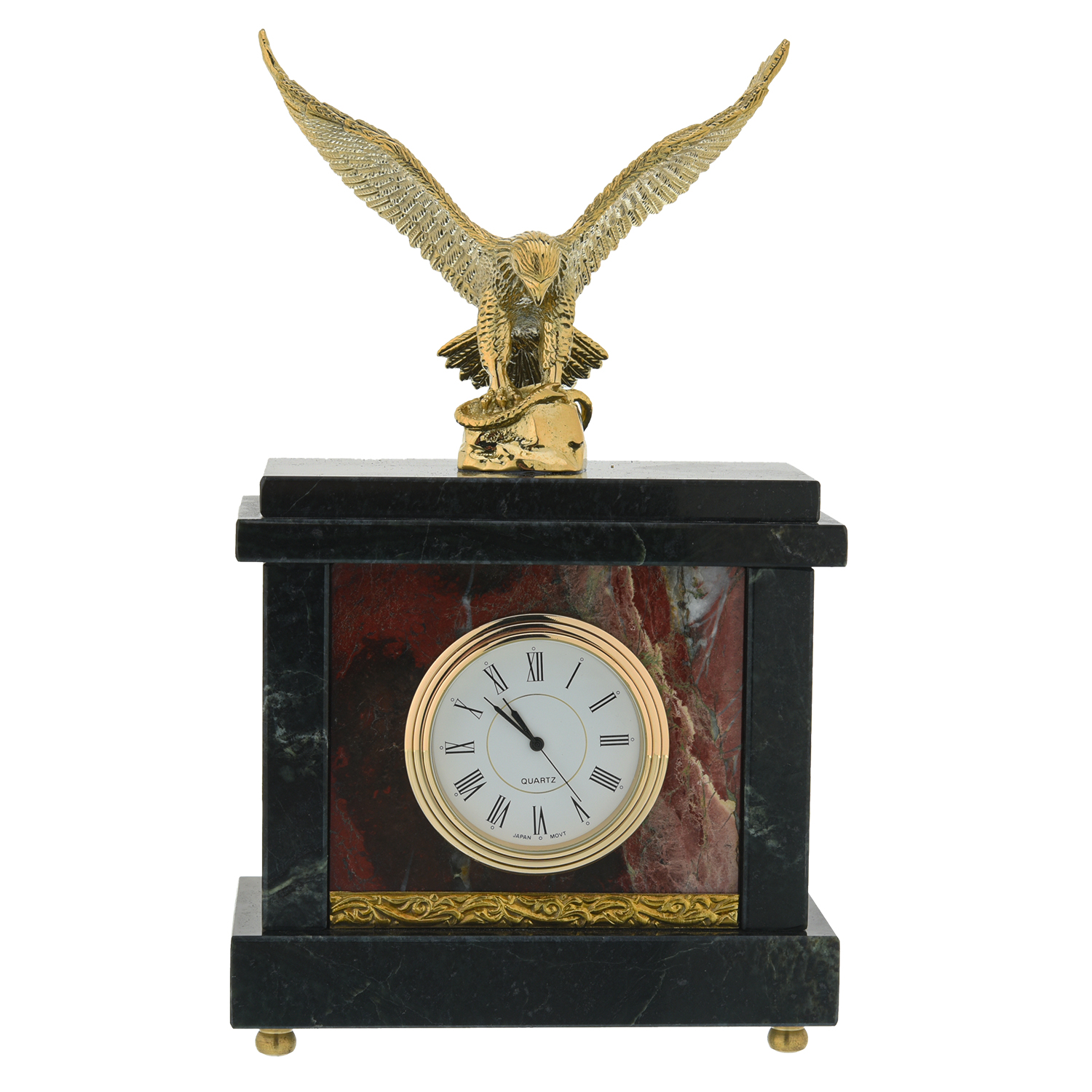0028505 Златоуст Нат.камень ЧАСЫ "ОРЕЛ" тумба позолота.