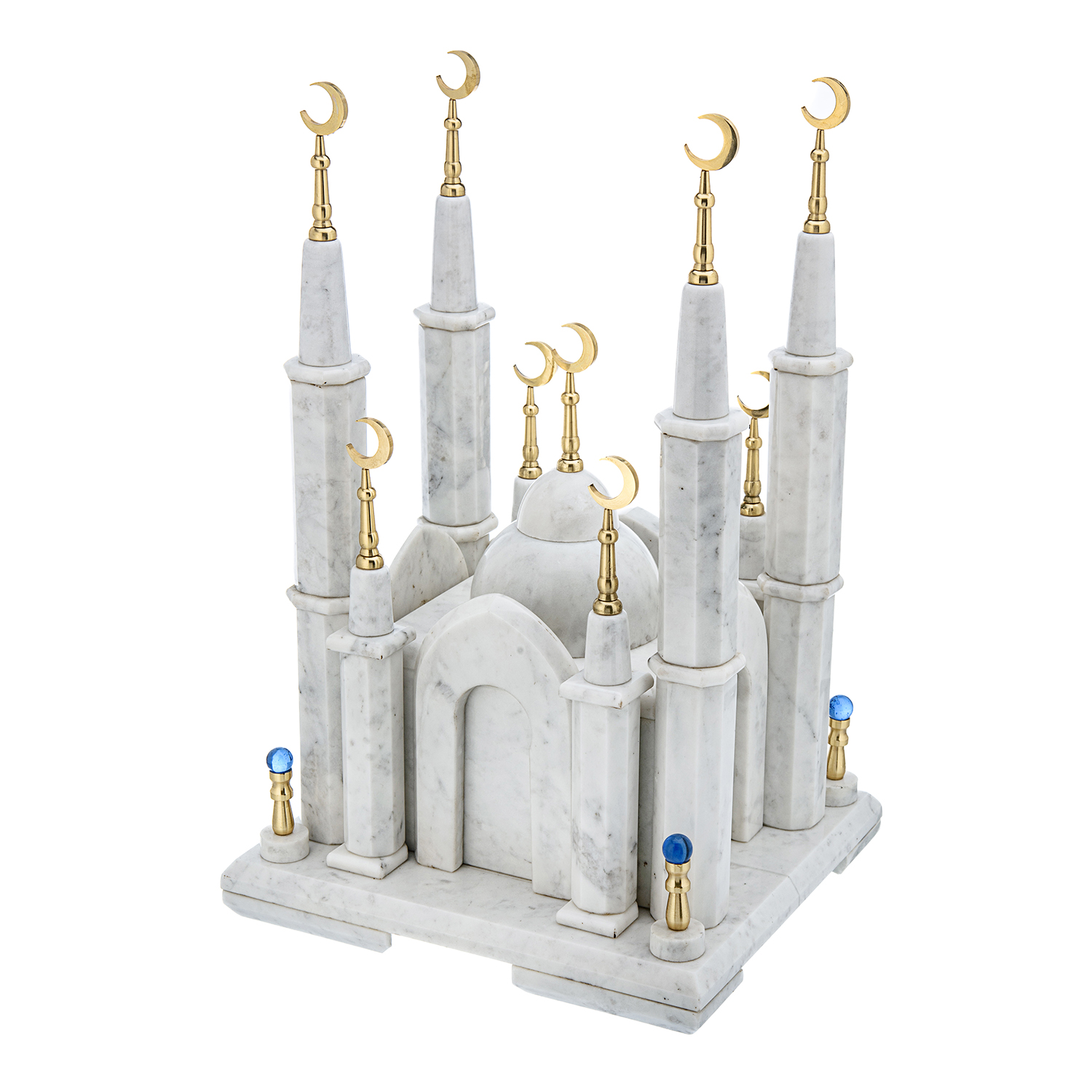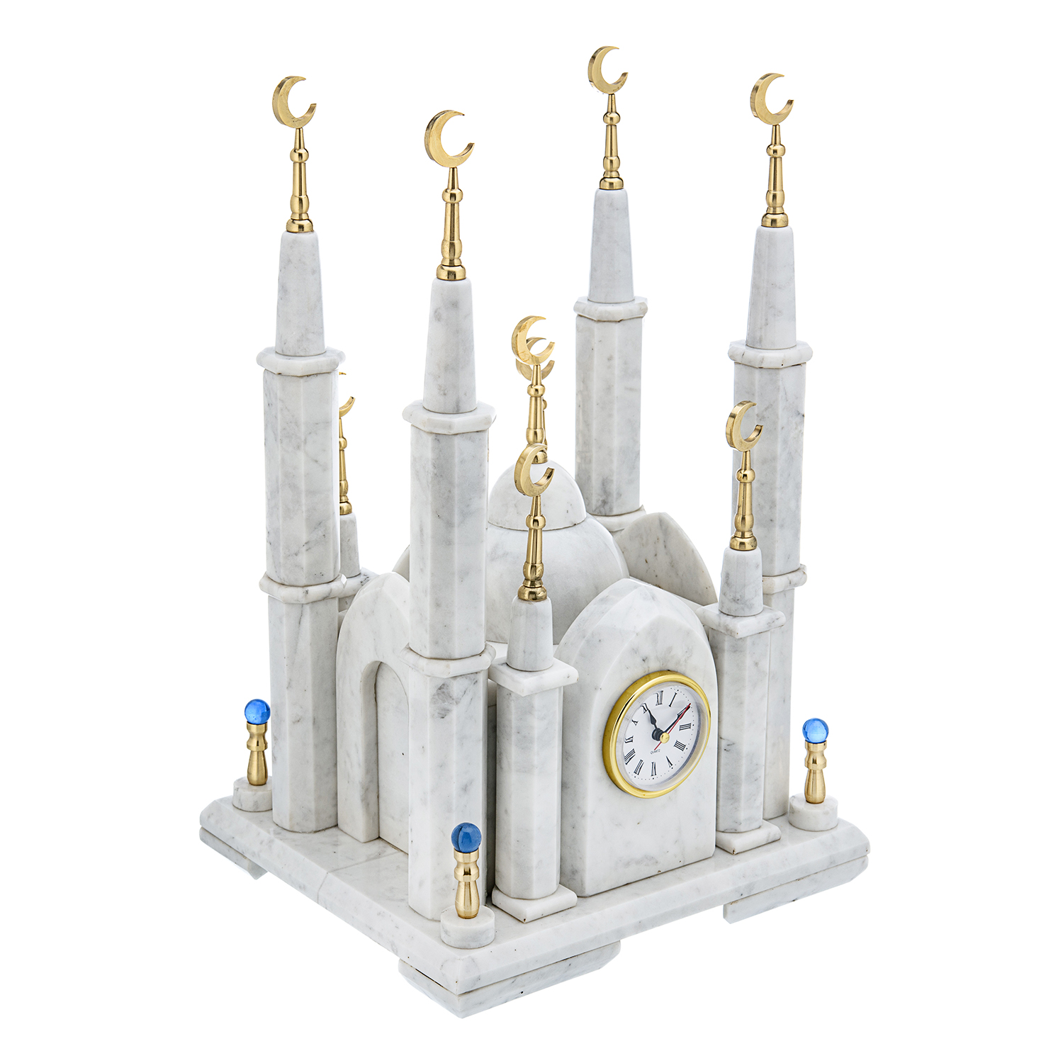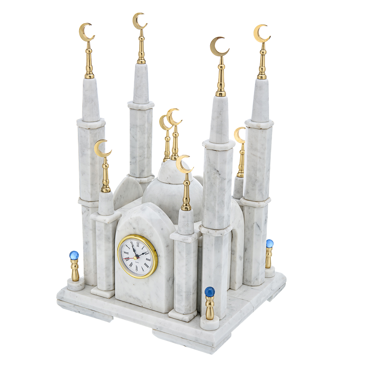 В галерее дорогих подарков "Русь Великая" представлен небольшой выбор эксклюзивных интерьерных аксессуаров для представителей народов России, исповедующих ислам, - мусульман. Вашему вниманию предлагаются авторские часы "Мечеть", изготовленные вручную по авторскому эскизу в виде красивого мусульманского молитвенного архитектурного сооружения с несколькими башнями-минаретами.