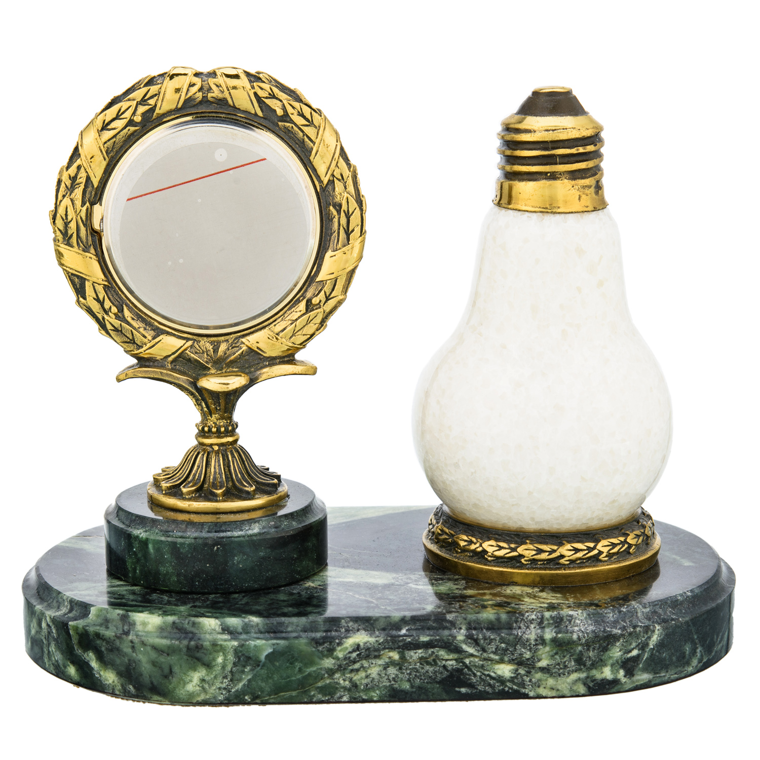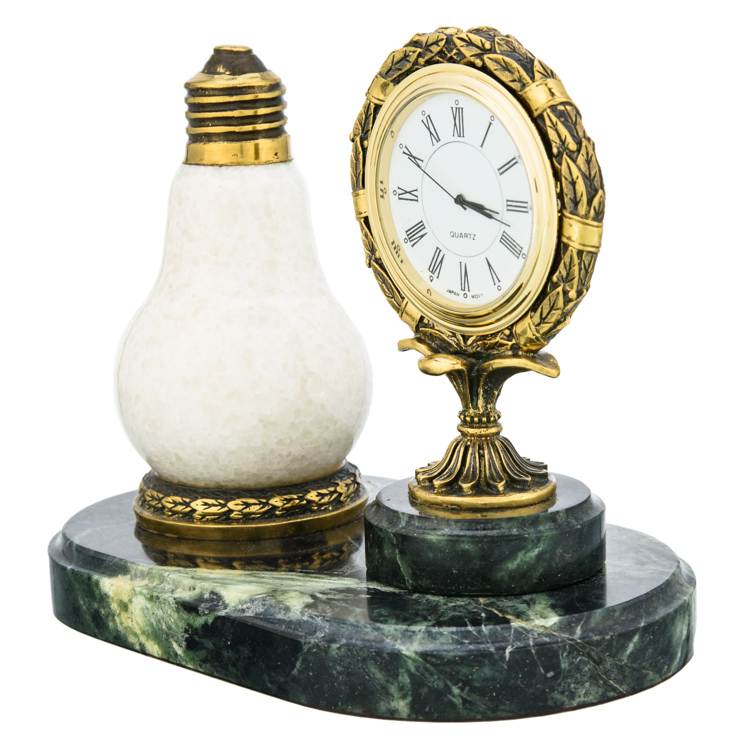 Настольные часы из камня с декоративной скульптурой в виде лампочки – оригинальный подарок энергетику к профессиональному празднику. Изделие придаст помещению особую атмосферу и подскажет хозяину точное время.