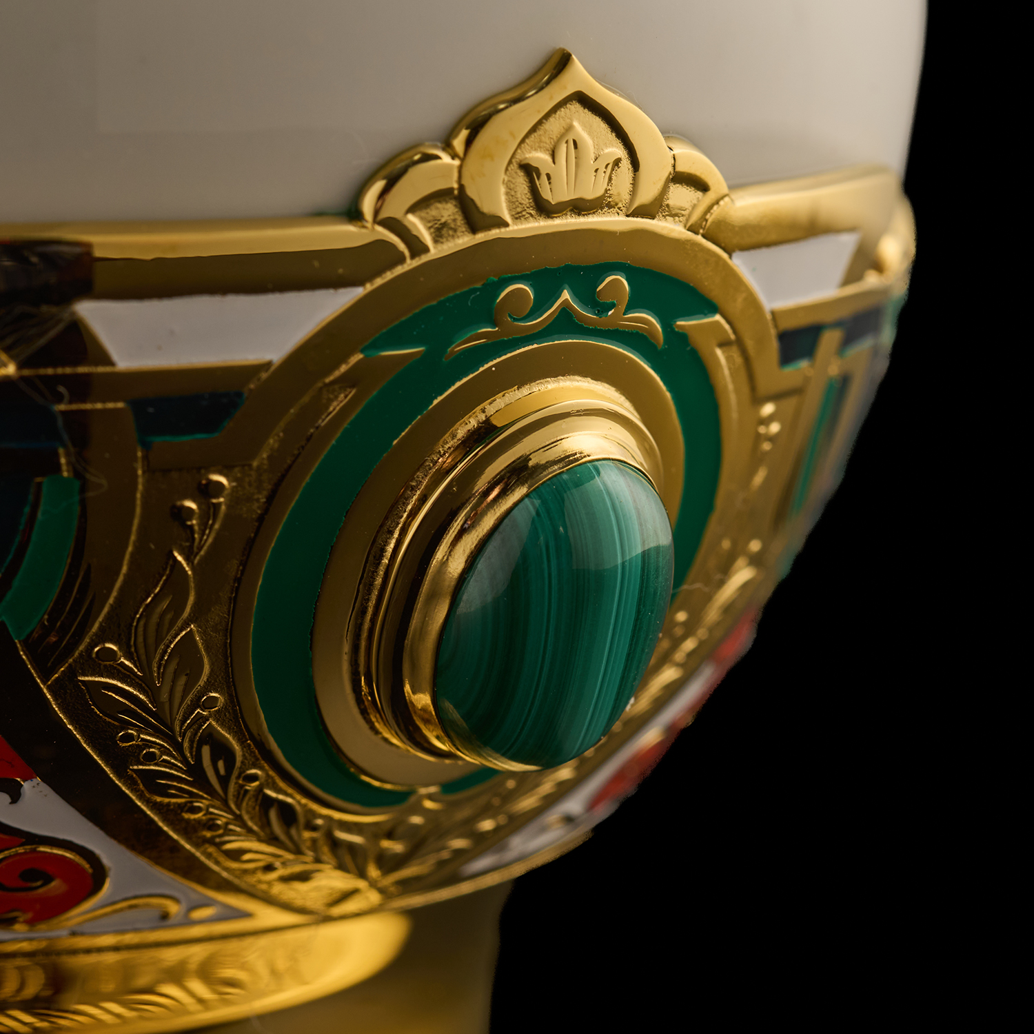 Чайник "Малахит". Златоуст.Материалы: латунь, никель, золото 999,9*, эмаль, малахит, фарфор.