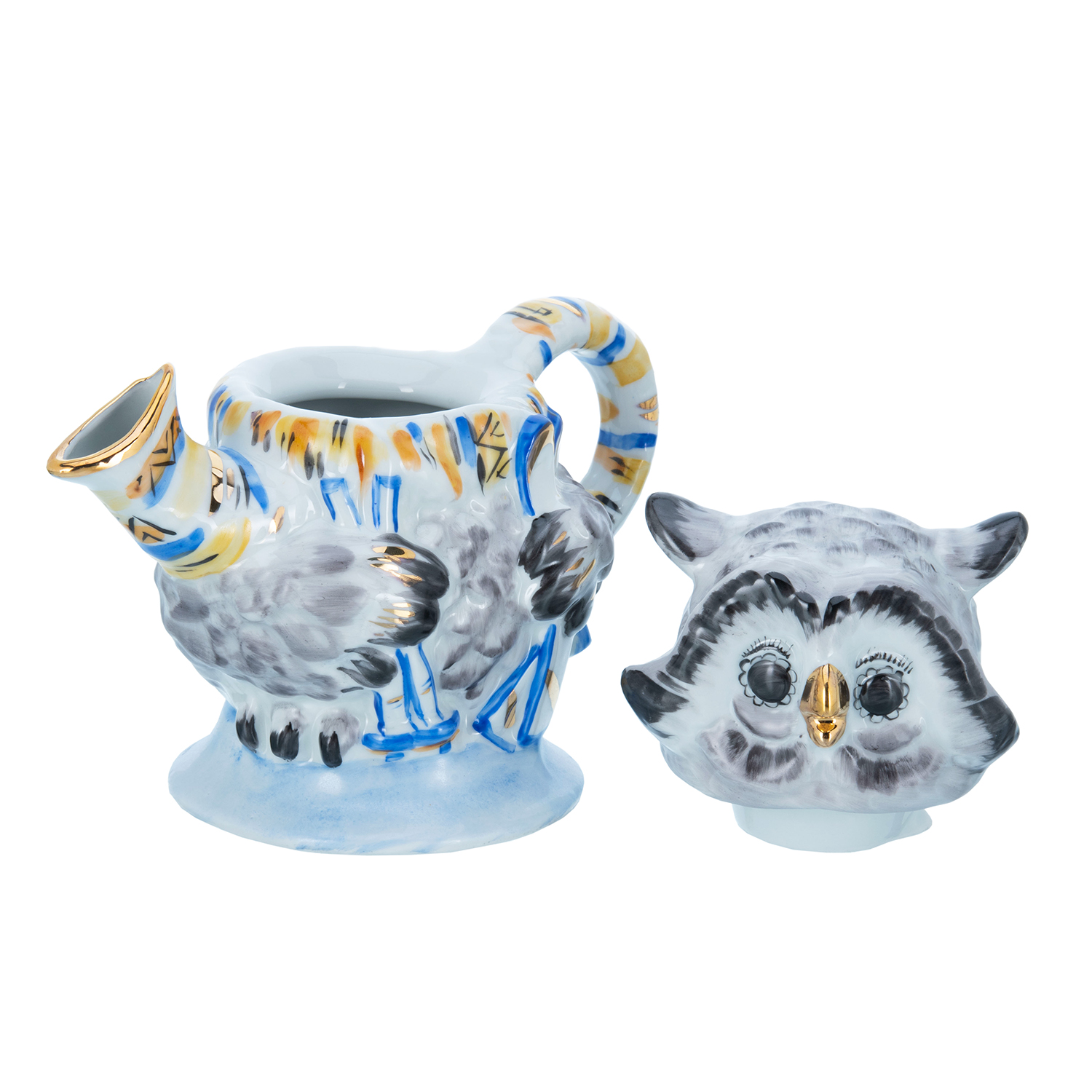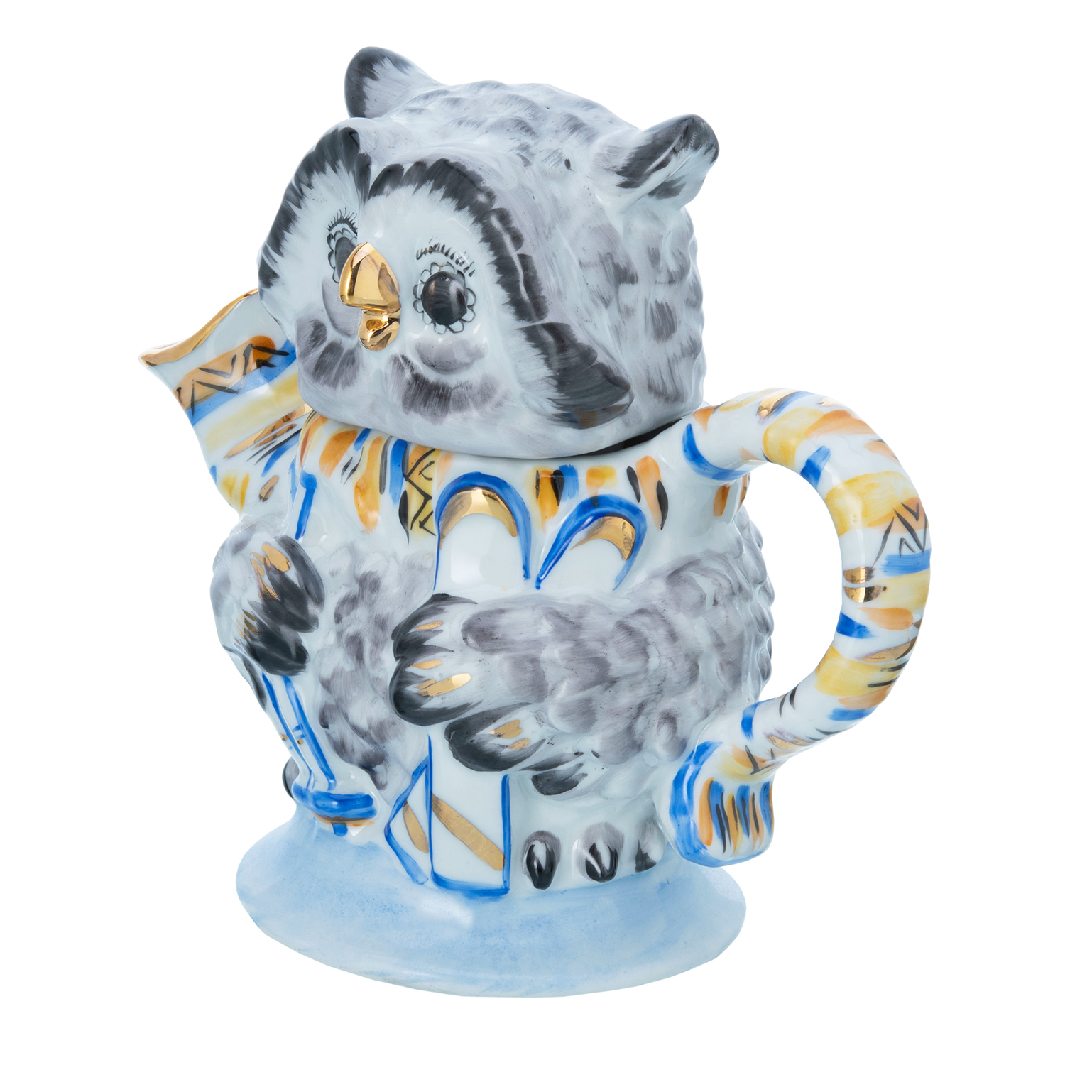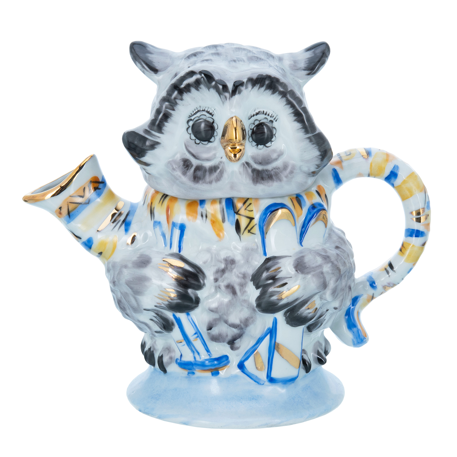 Чайник коллекционный "Филин". Гжель в цвете.Материал: фарфор.