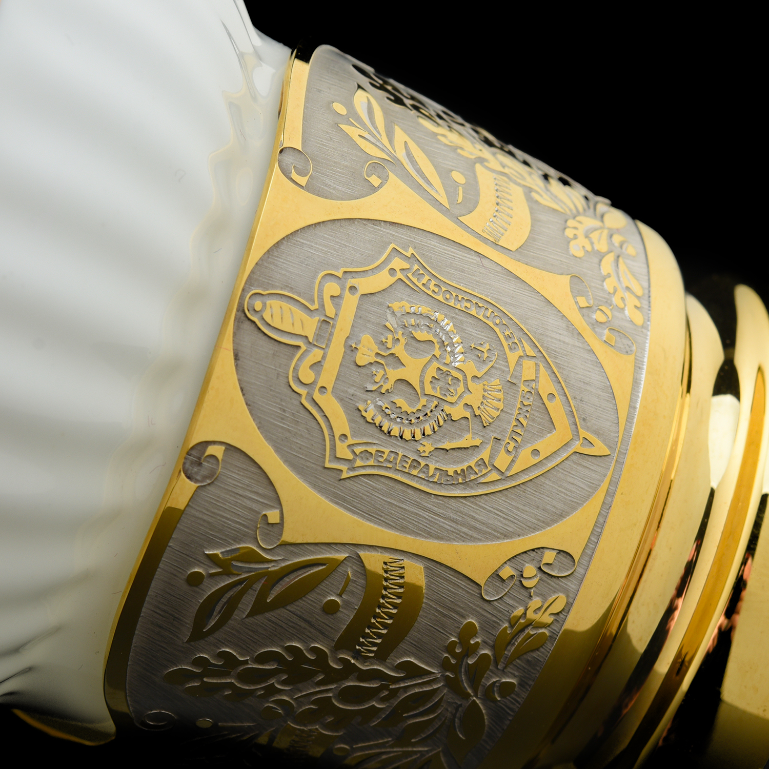 Материалы: латунь, никель, золото 999,9*, костяной фарфор.