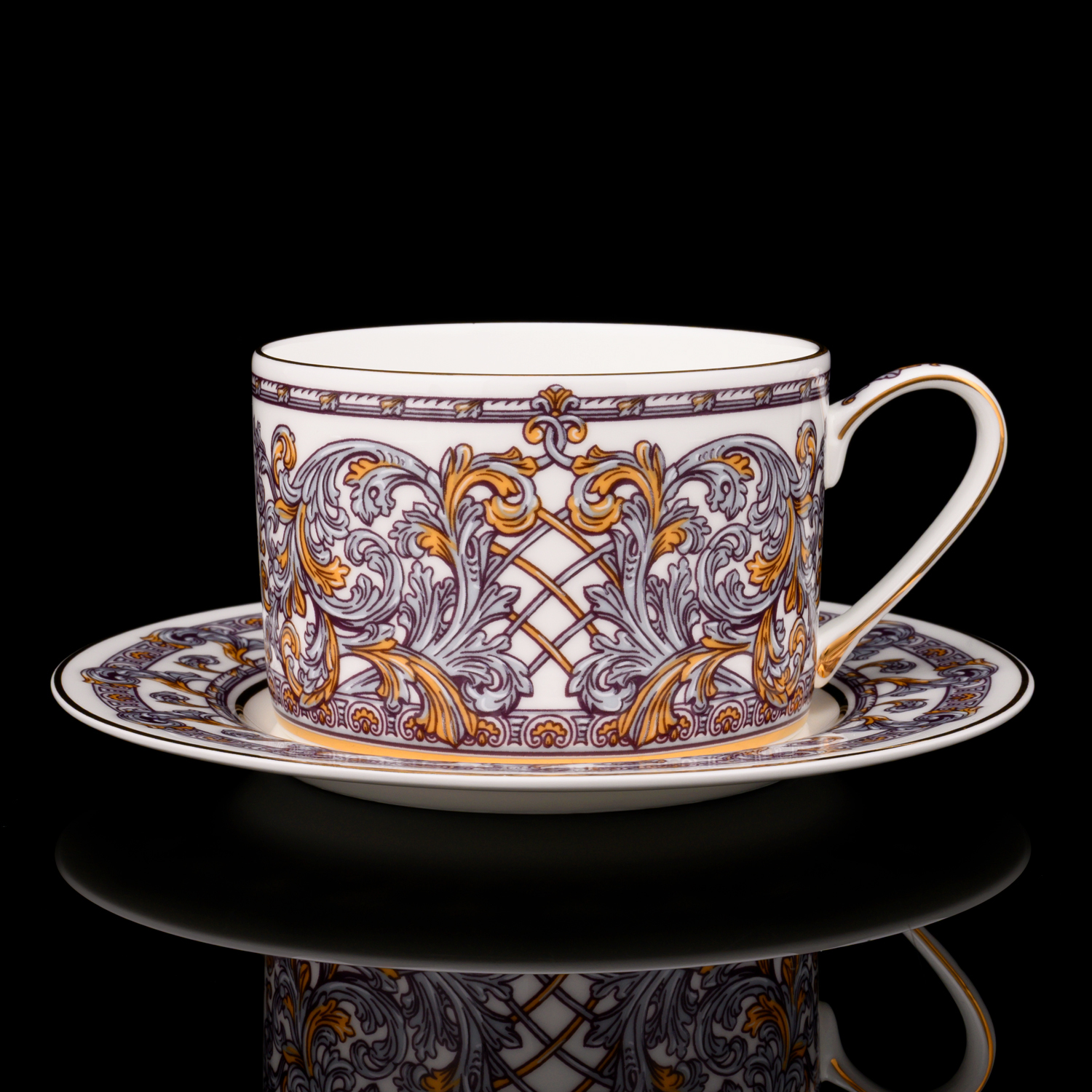 Чайная пара 300 мл "Барокко". Форма Идиллия. ИФЗ.Материалы: Костяной фарфор, надглазурная деколь, отводка золотом.