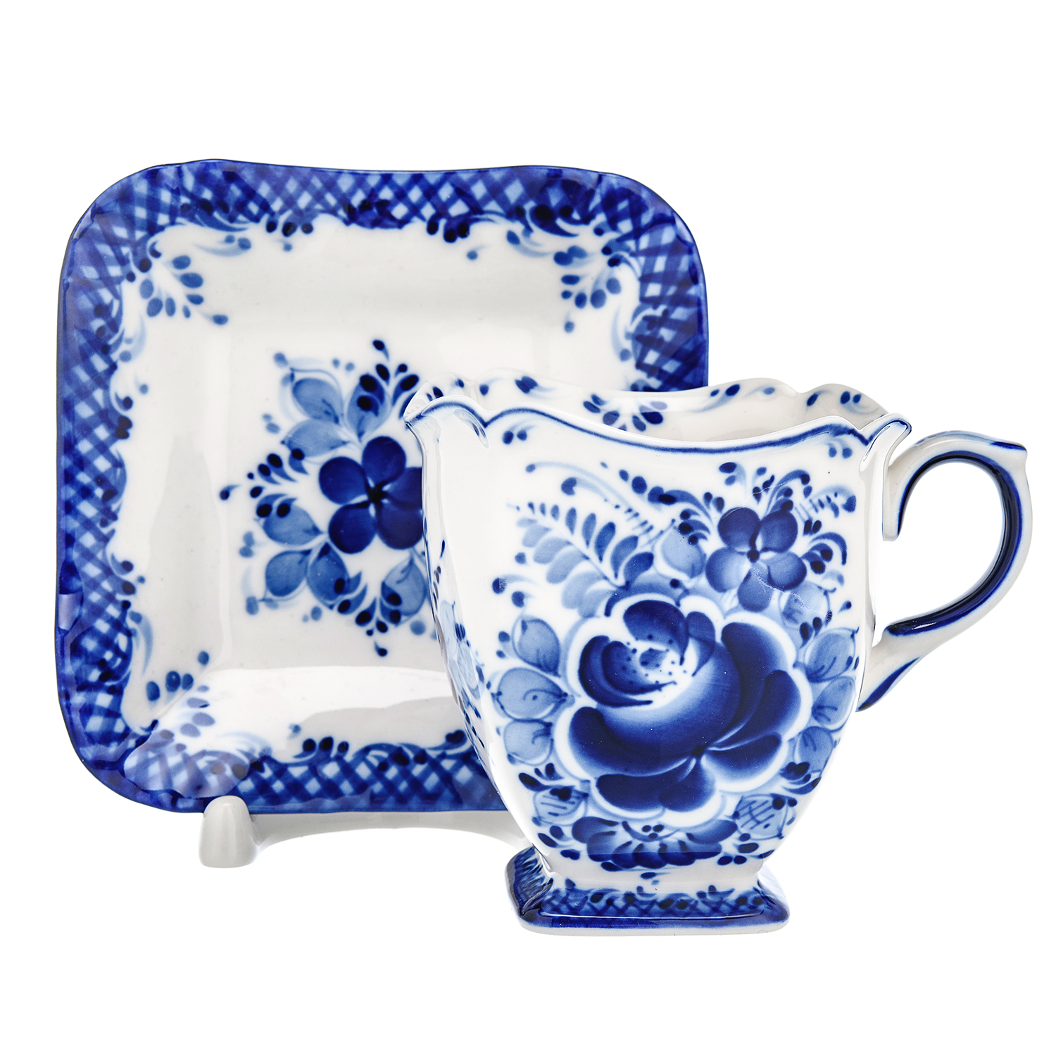 Что может быть лучше чаепития в компании близких или друзей? За чашечкой ароматного чая можно обсудить насущные проблемы, помечтать, вспомнить прошлое, построить планы на будущее. Узор создал мастер гжельского фарфора, художник Сергей Алехин, фирменный стиль которого узнаваем по очаровательной голубой «волне» по краю изделия. Русский народный промысел называется Гжель от села в Московской области, где он зародился. Там с 17 века добывалась качественная глина. В 1663 году царь Алексей Михайлович издал указ о ее добыче для изготовления медицинских сосудов. С 18 века здесь делали посуду, кирпич, детские игрушки, кувшины, майоликовую пластику, расписные печные и каминные изразцы. Расписывали изделия синими, зелеными, желтыми цветами в коричневых контурах, фигурками животных или людей. Ручки кувшинов напоминали веточки, носики - птичьи головы по форме. С 1820-х годов гжельскую роспись характеризовал синий узор.