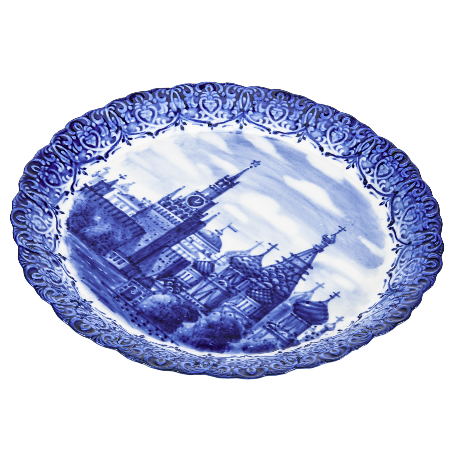 Декоративная тарелка "Кремль и Храм Василия Блаженного". Гжель