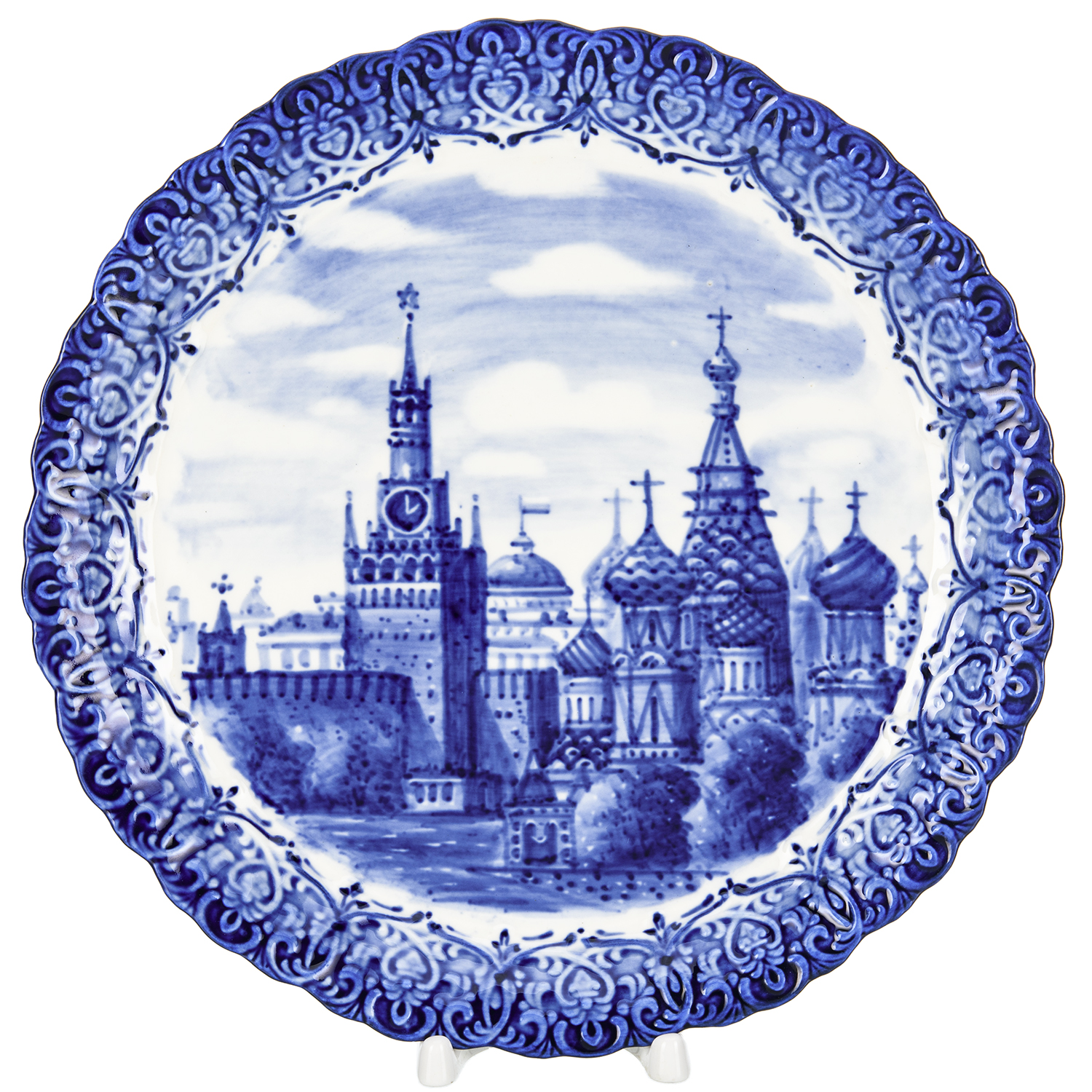 Русские подарки и сувениры → Интерьерные изделия → Декоративные тарелки → Декоративная тарелка "Кремль и Храм Василия Блаженного". Гжель
