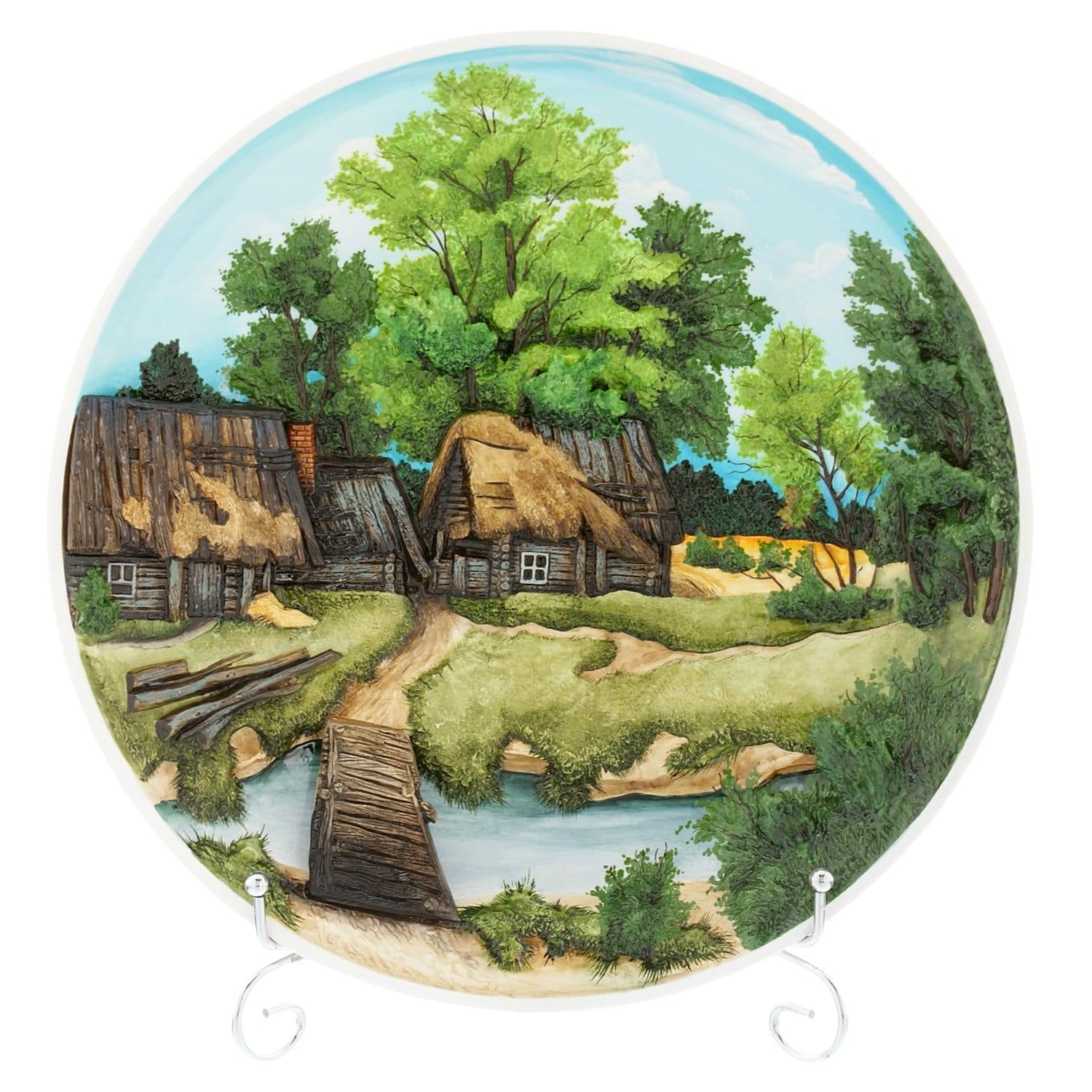 Декоративная тарелка-панно "Русская деревня" из керамики