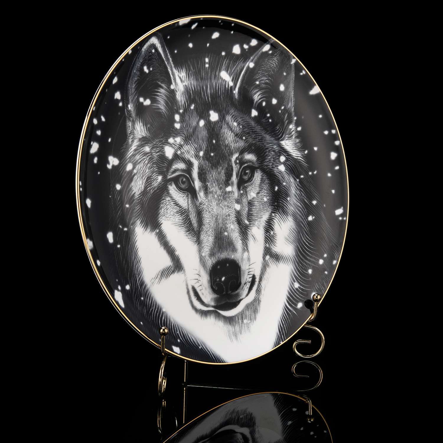 Образ дикого волка - символ жизненной энергии и мощи - украшает тарелку из "русского белого золота", фарфора.Декоративная тарелка - классический элемент декора. Его форма гармонизирует пространство. Композиция на лицевой стороне тарелки создает мотивирующий акцент и помогает удержать состояние радости.