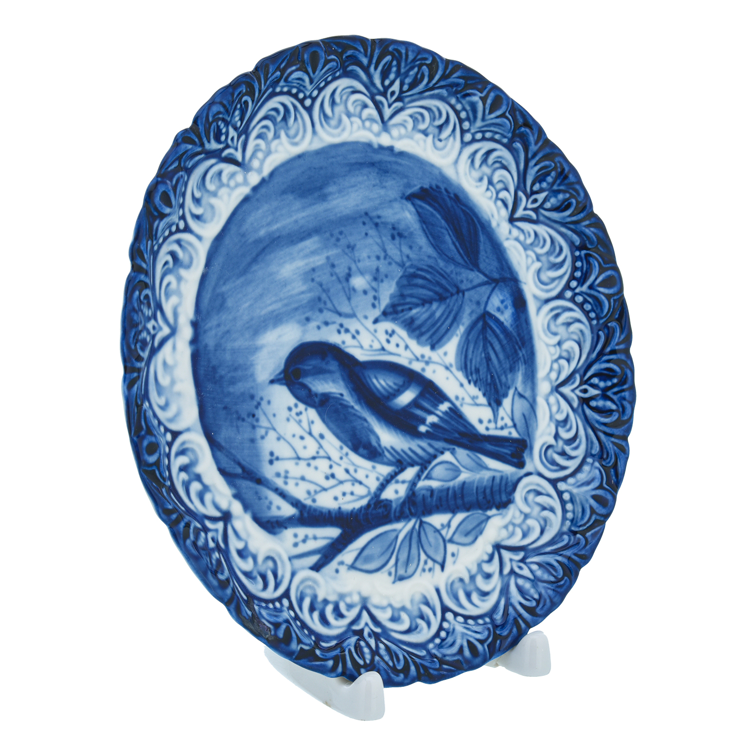 Русские подарки и сувениры → Интерьерные изделия → Декоративные тарелки → Тарелка сувенирная "Птица синичка". Гжель