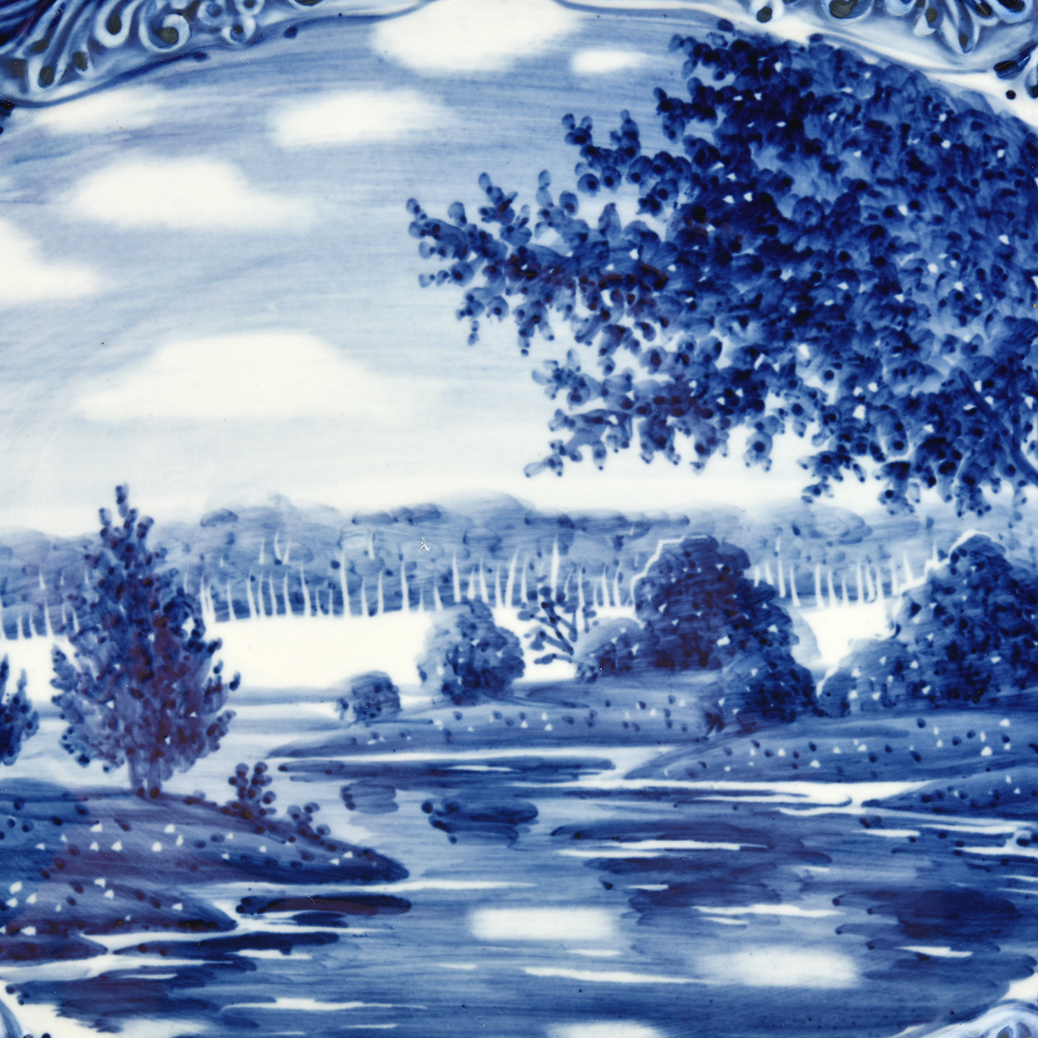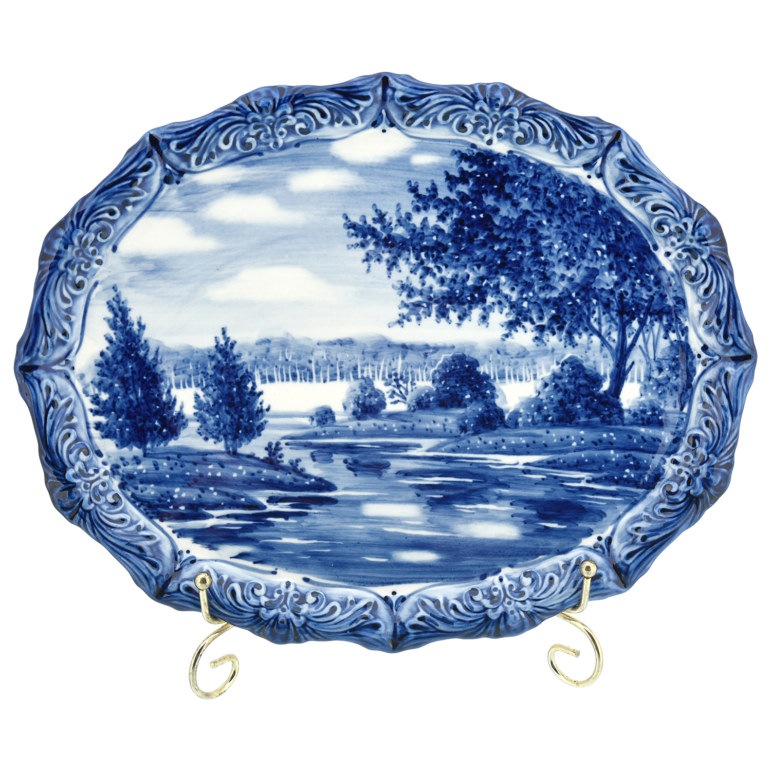 Русские подарки и сувениры → Интерьерные изделия → Декоративные тарелки → Тарелка декоративная "Лето в деревне". Гжель