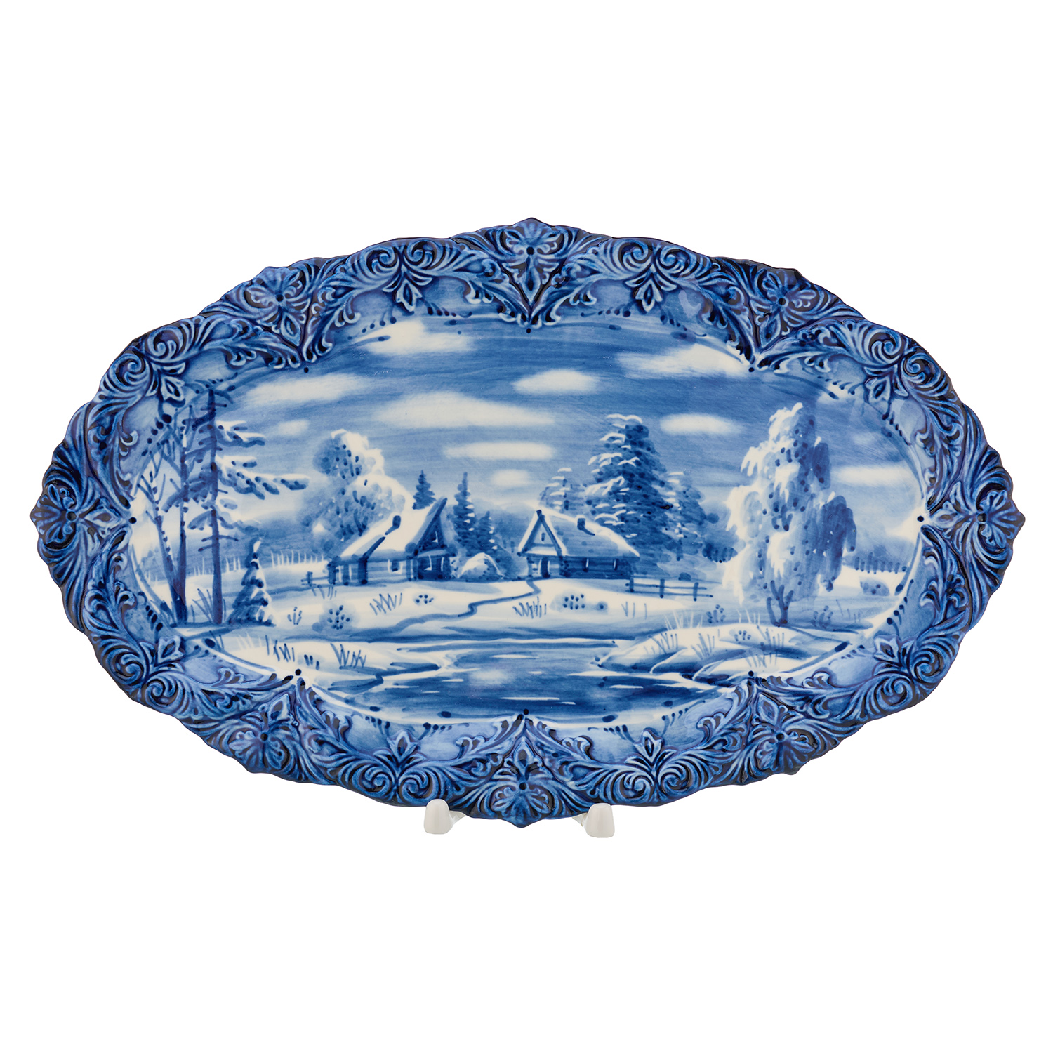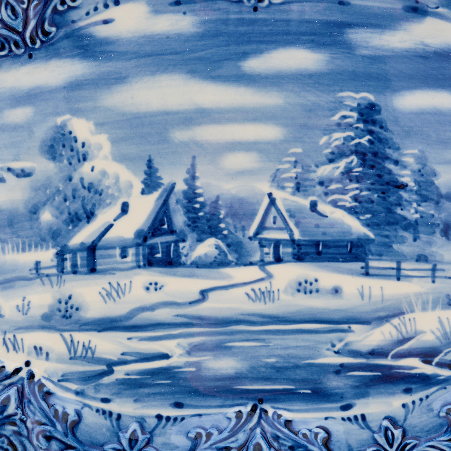 Русские подарки и сувениры → Интерьерные изделия → Декоративные тарелки → Тарелка декоративная "Зимний пейзаж". Гжель