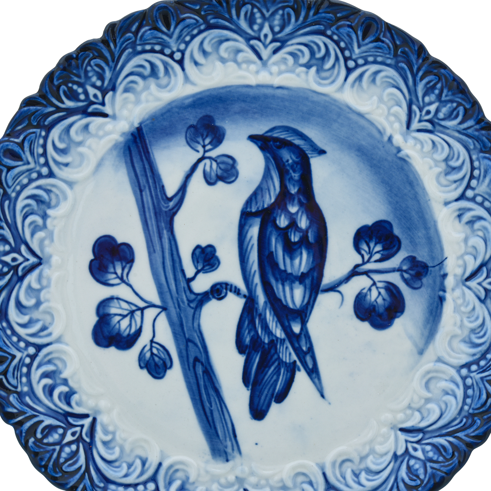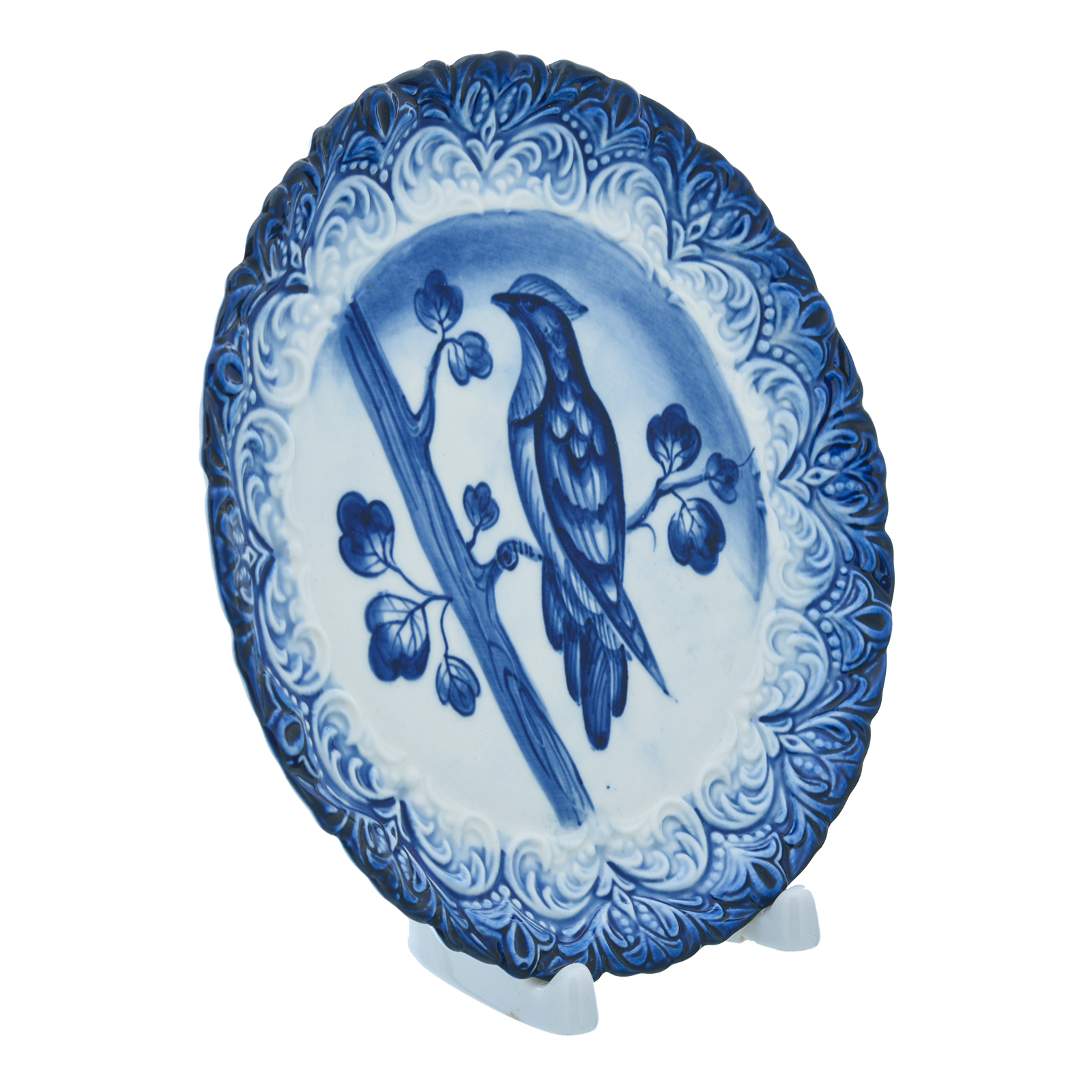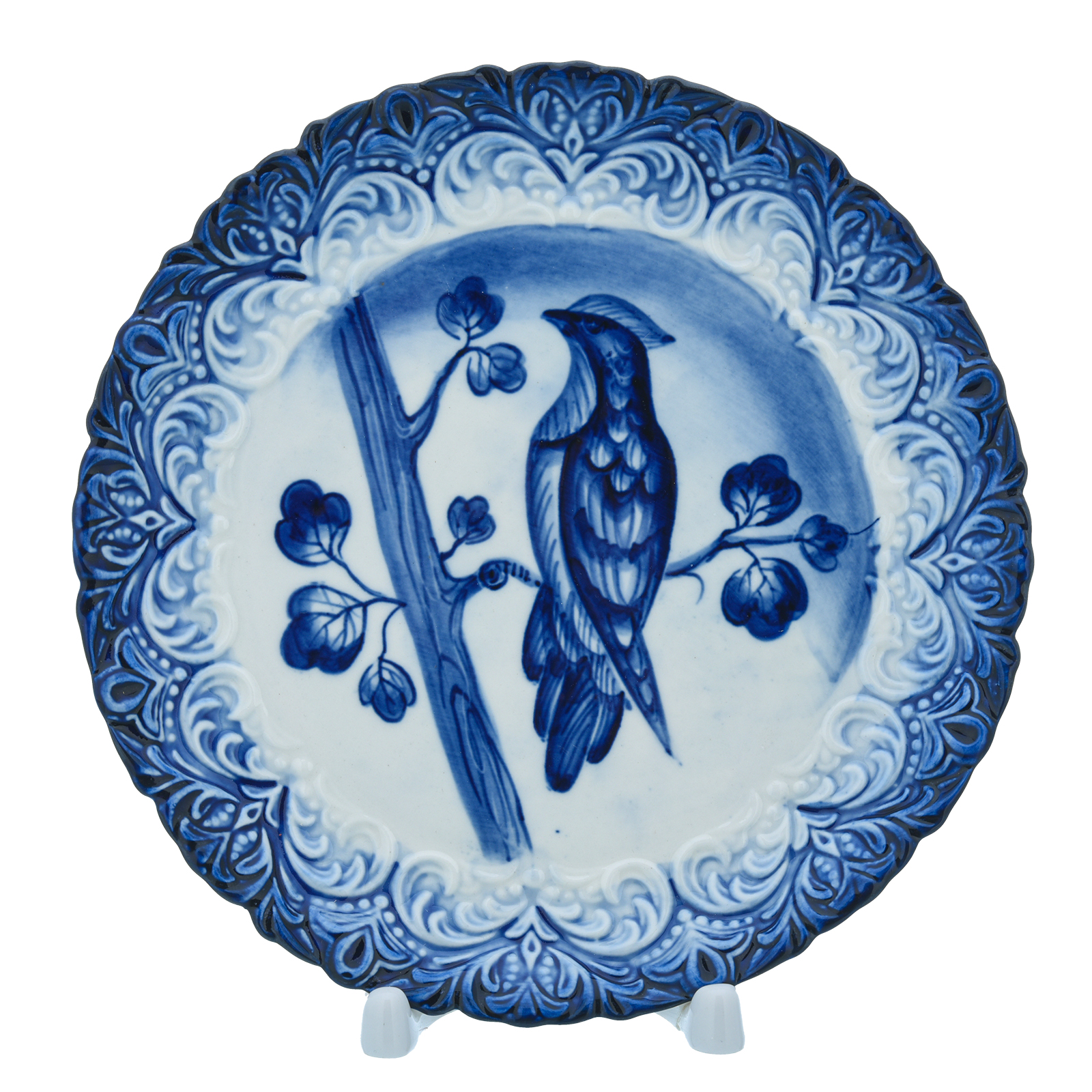 Тарелка сувенирная настенная "Птица клест". Гжель