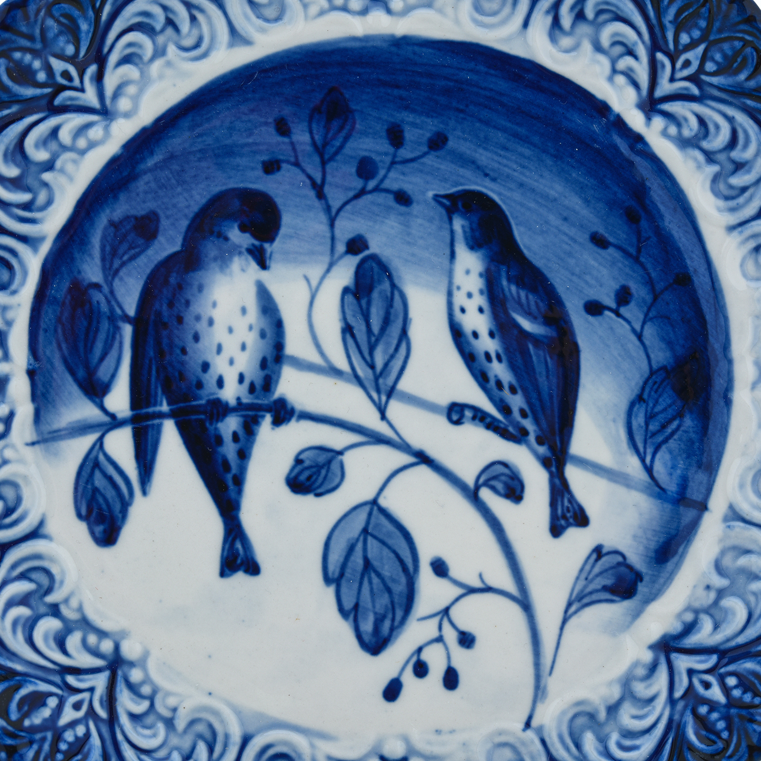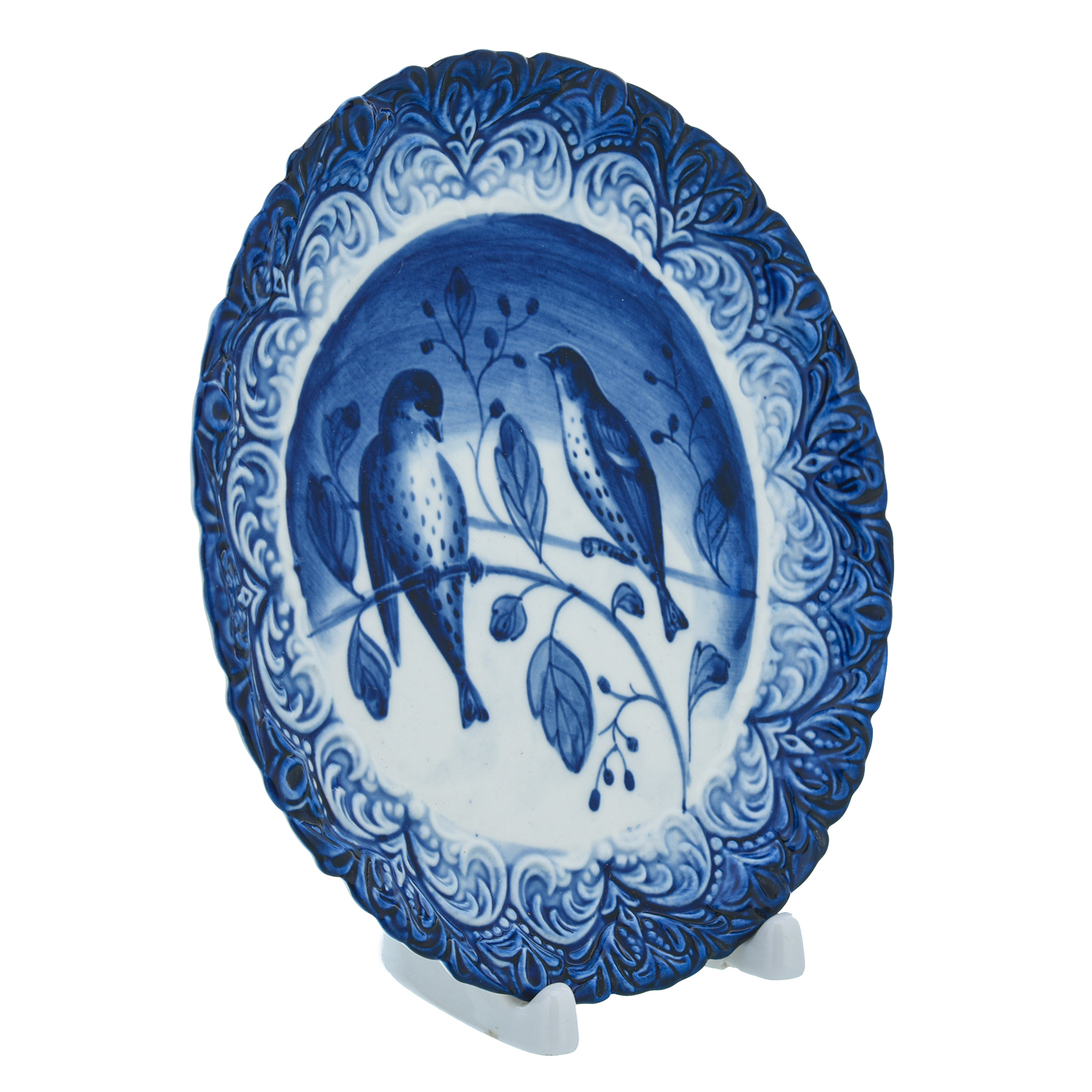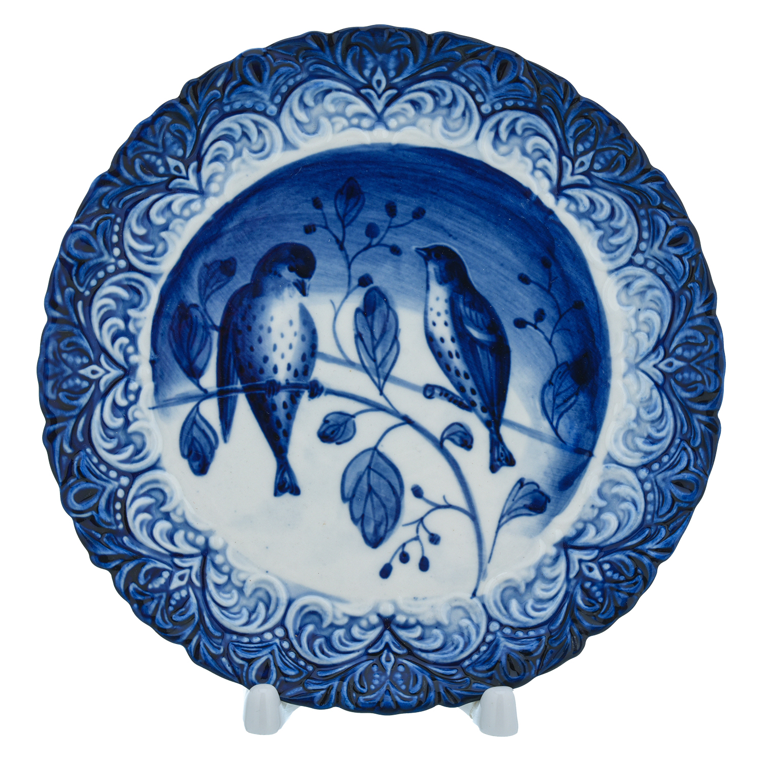 Русские подарки и сувениры → Интерьерные изделия → Декоративные тарелки → Тарелка сувенирная настенная "Птицы". Гжель