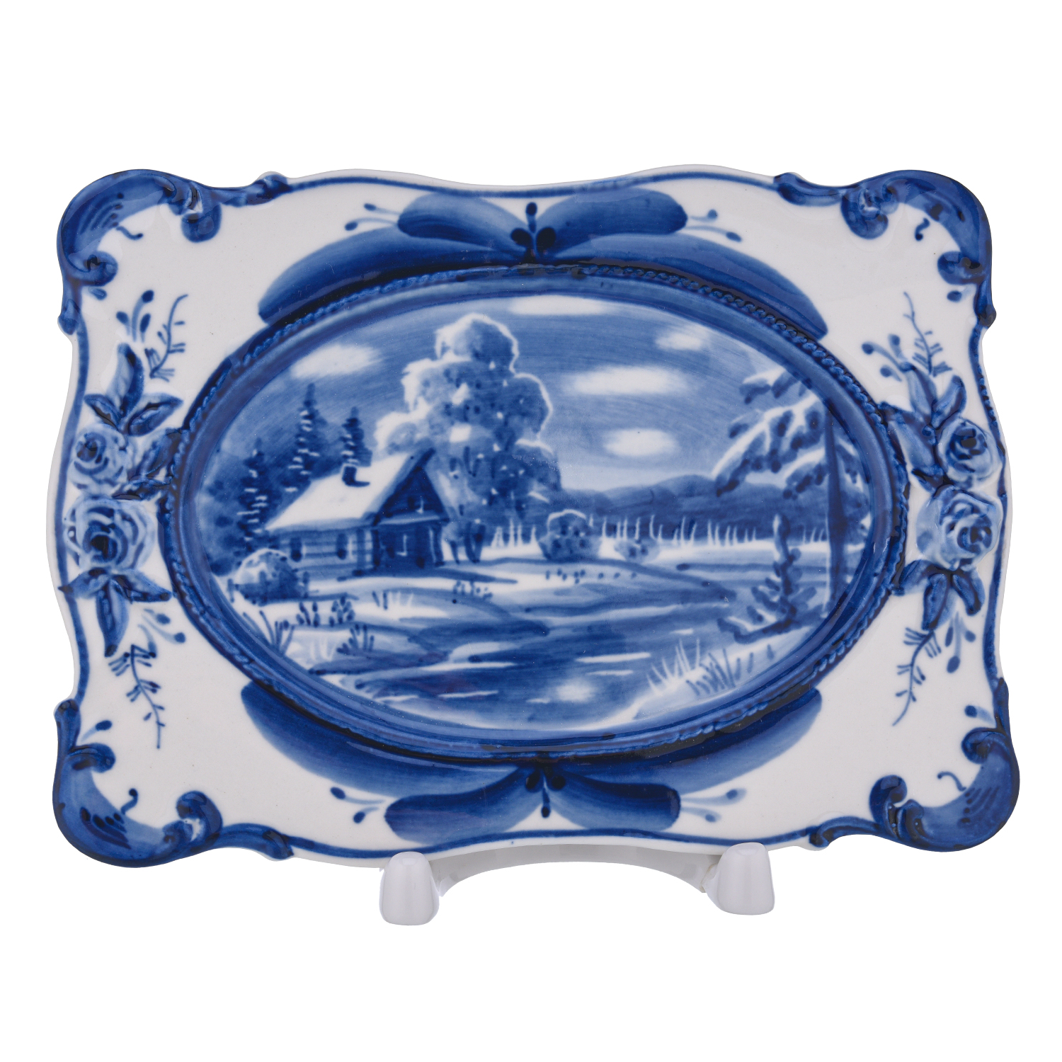 Русские подарки и сувениры → Интерьерные изделия → Декоративные тарелки → Тарелка декоративная "Зима в деревне". Гжель