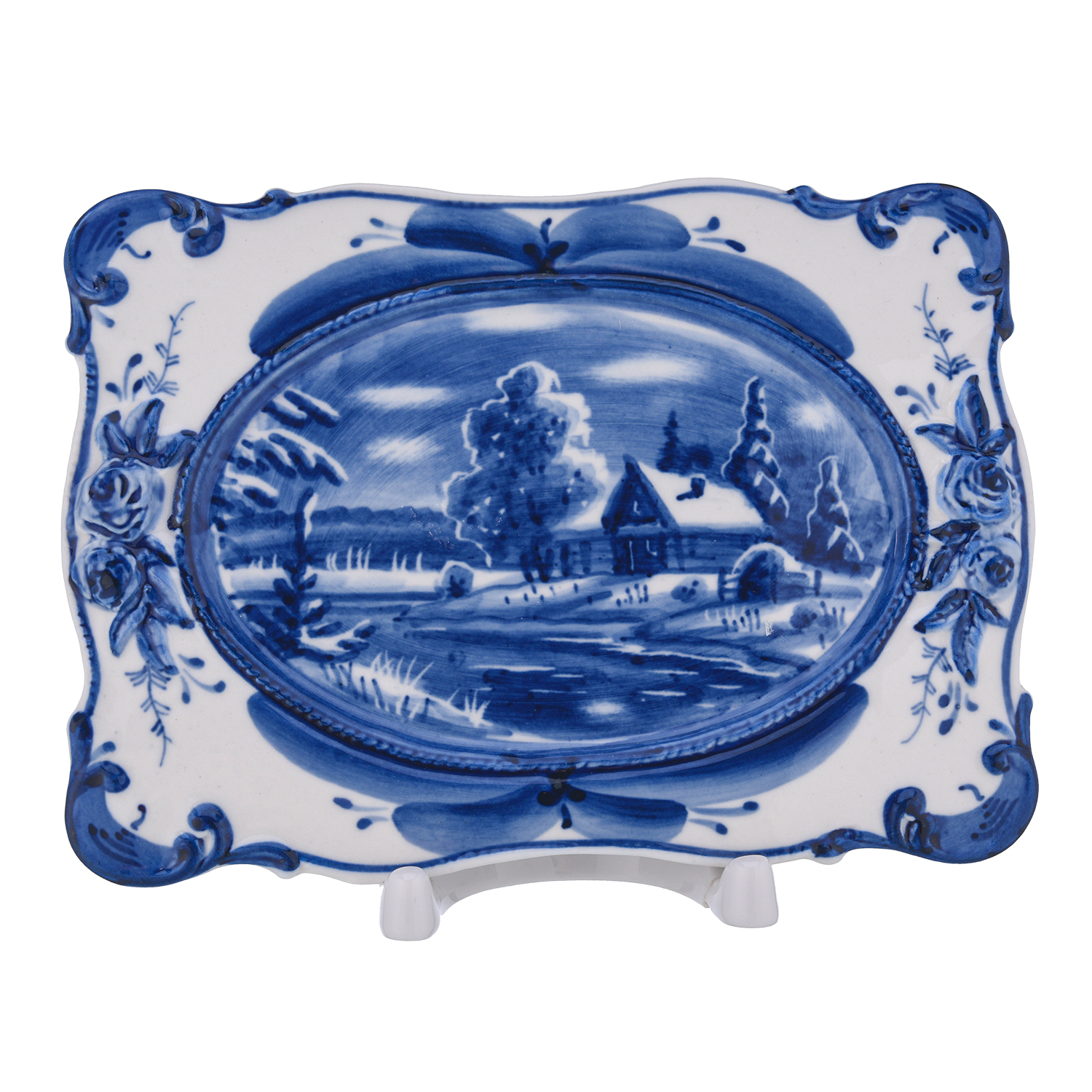 Русские подарки и сувениры → Интерьерные изделия → Декоративные тарелки → Тарелка декоративная "Зима в деревне". Гжель