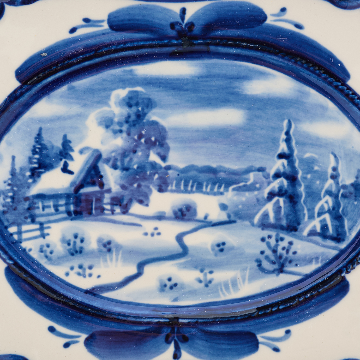 Тарелка декоративная "Зима в деревне". Гжель