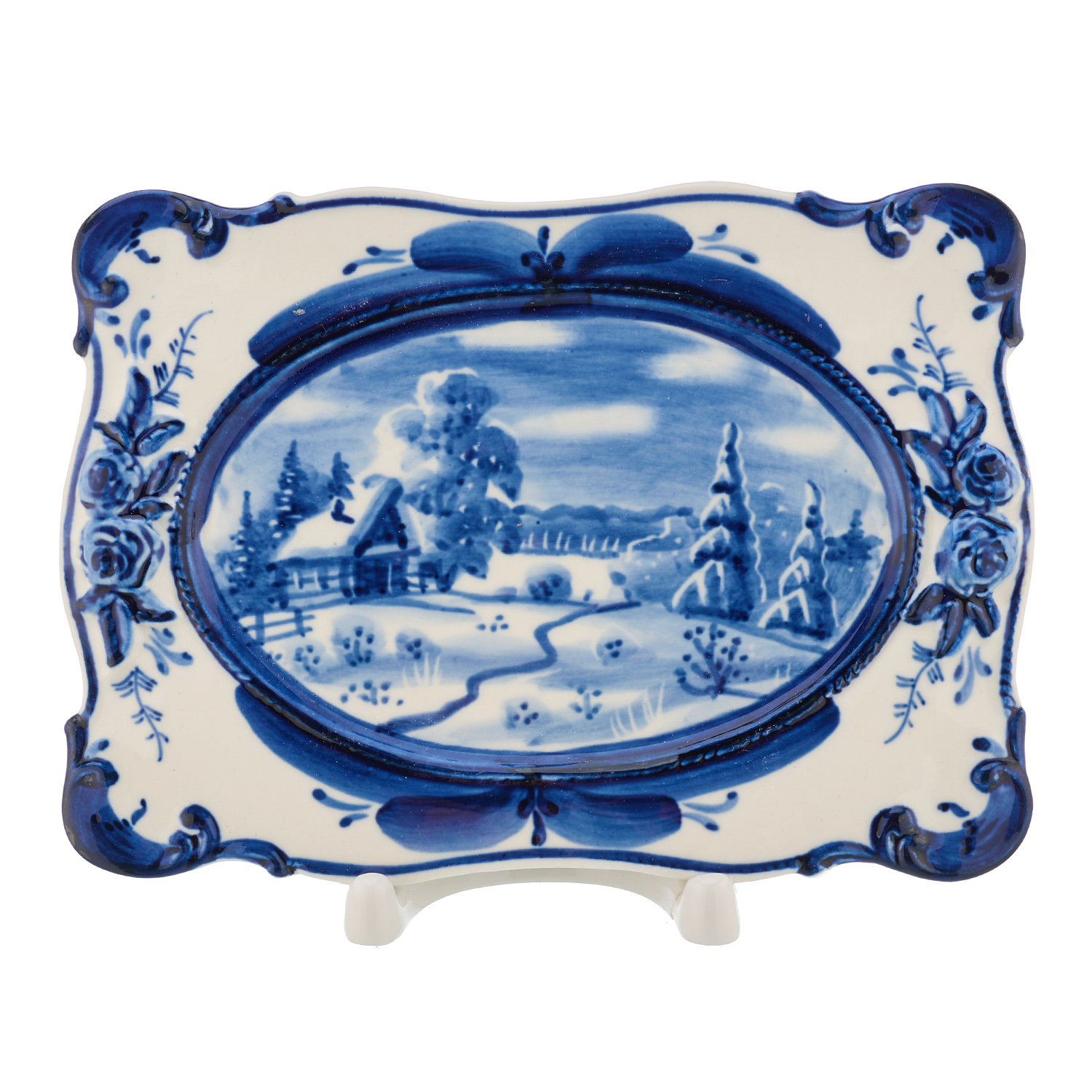 Русские подарки и сувениры → Интерьерные изделия → Декоративные тарелки → Тарелка декоративная "Зима в деревне". Гжель