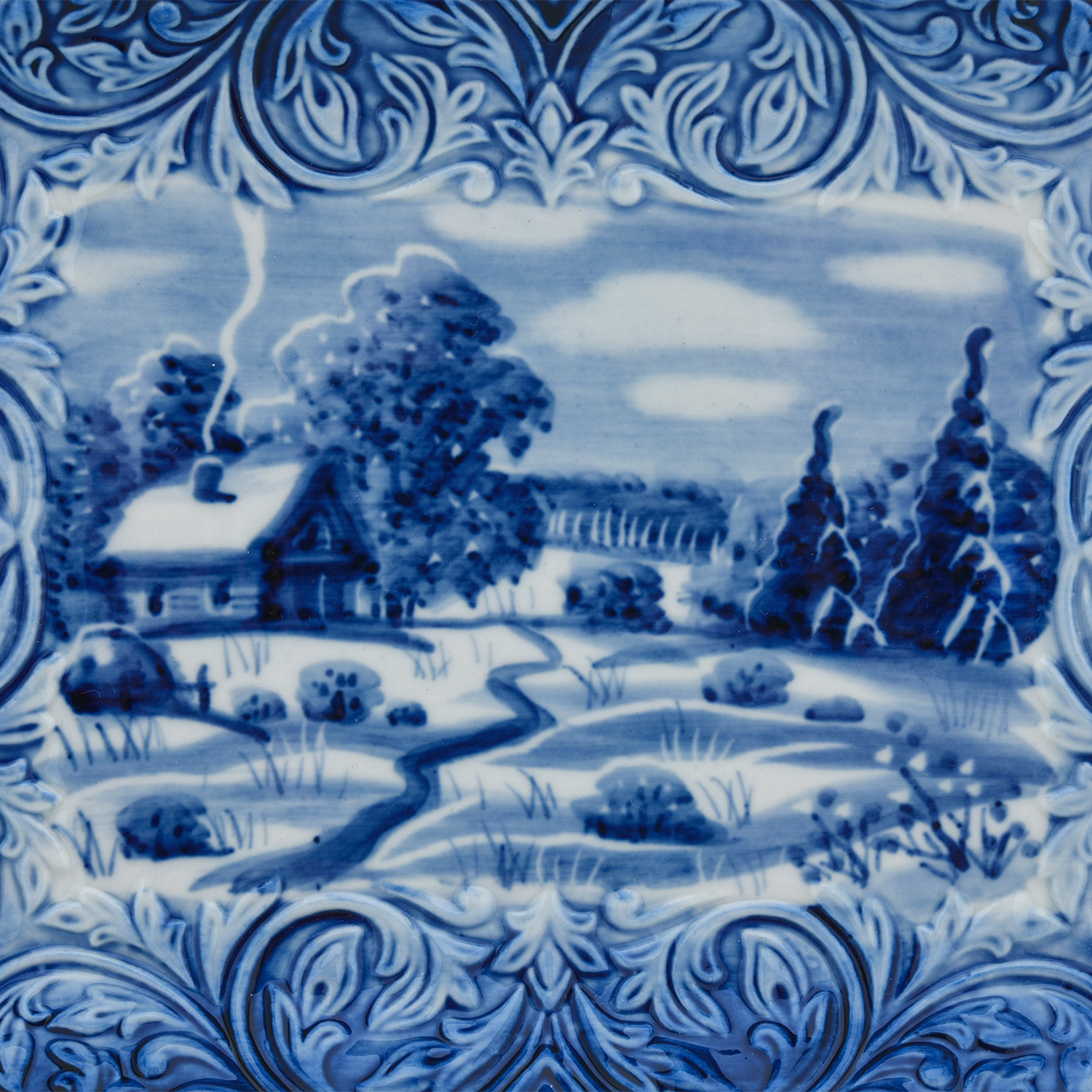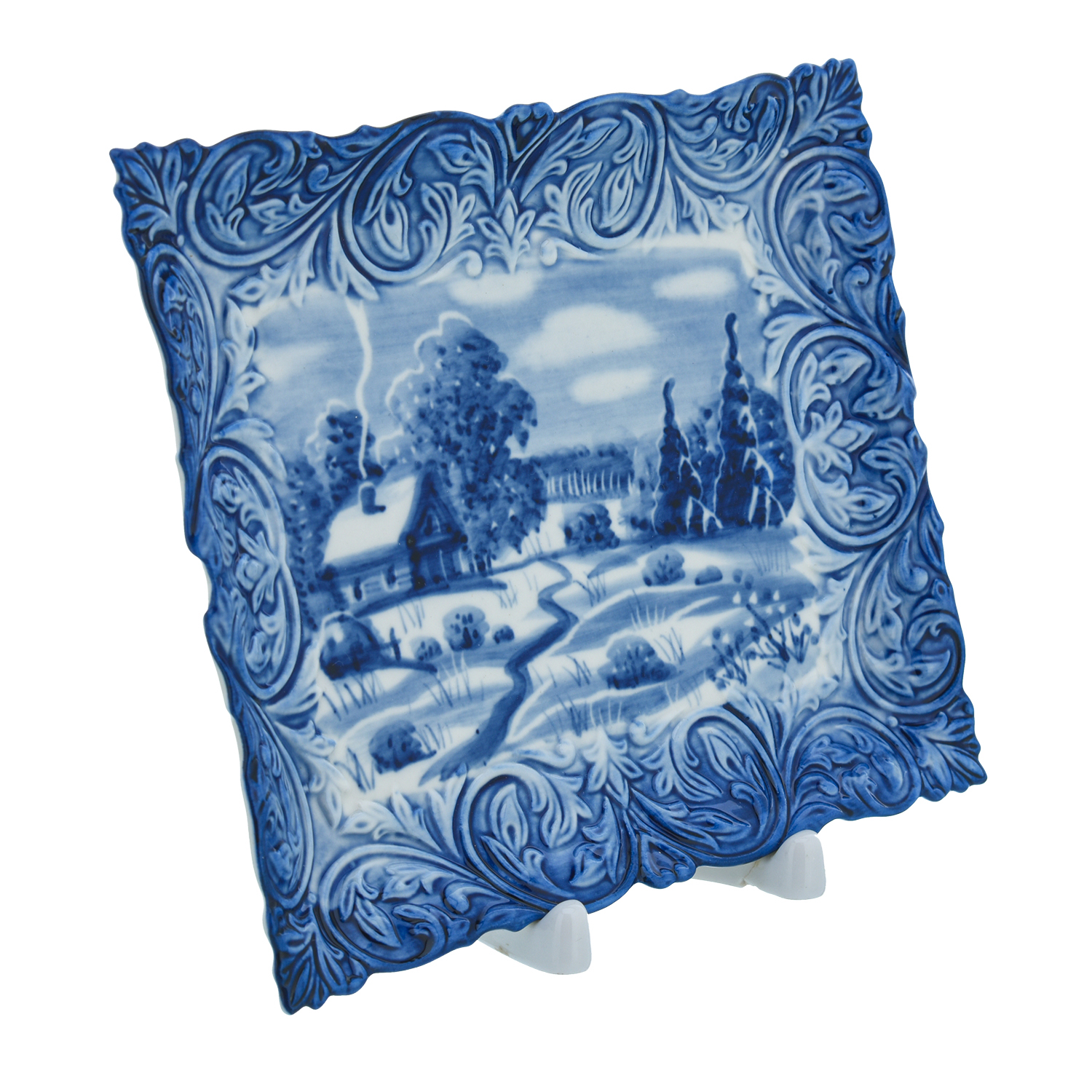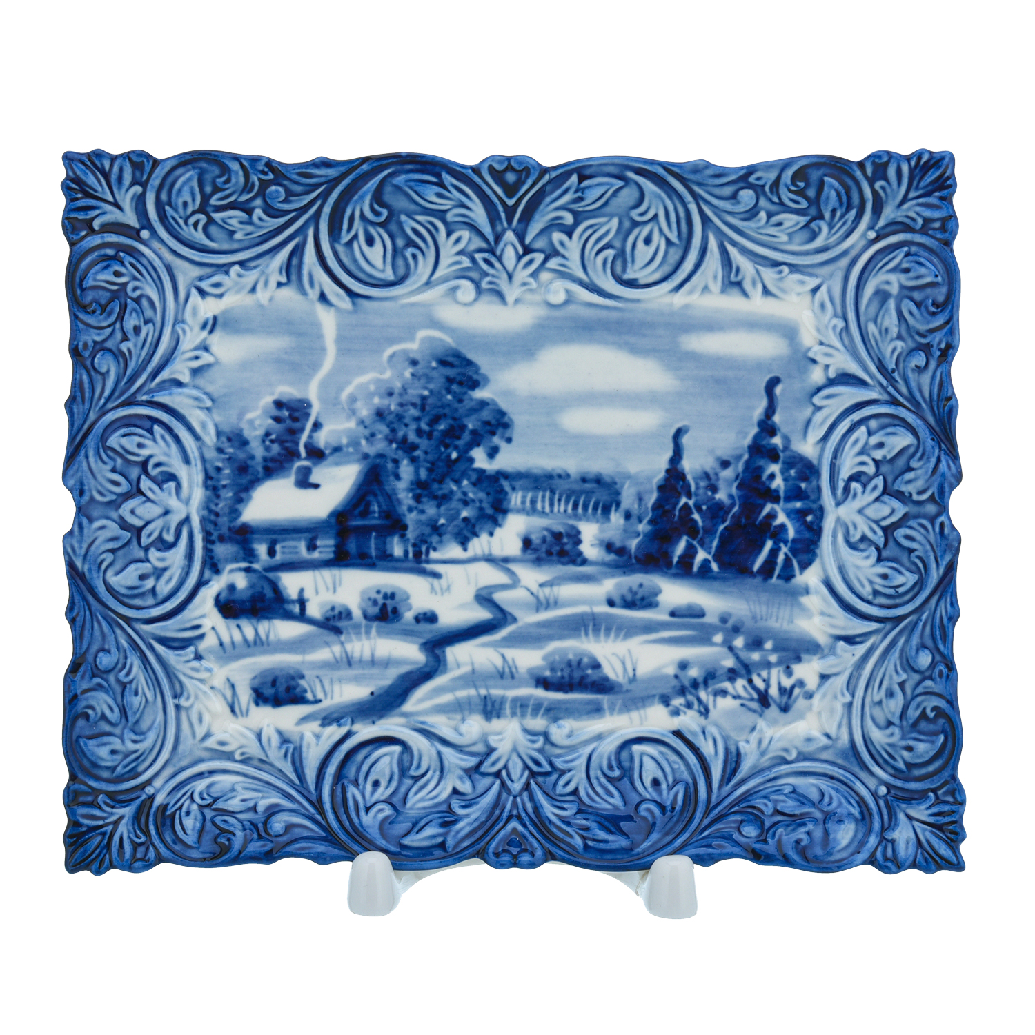 Русские подарки и сувениры → Интерьерные изделия → Декоративные тарелки → Тарелка сувенирная настенная "Зима". Гжель