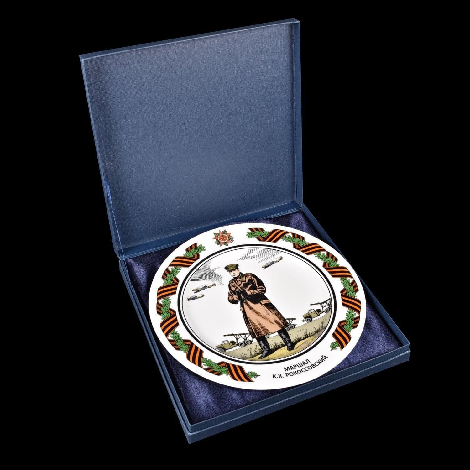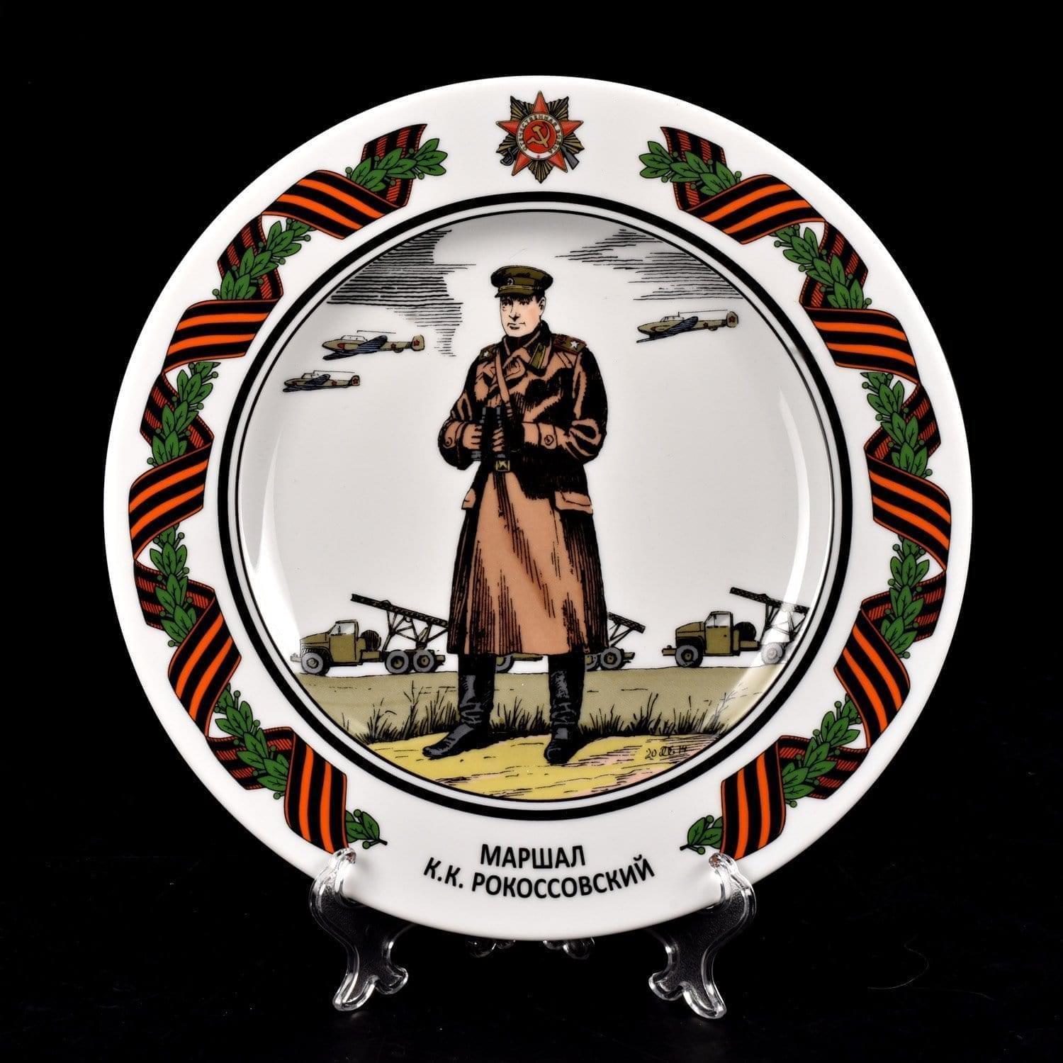 Защитные слои прозрачной стеклянной глазури защищают фарфор от повреждения. Авторская работа от российского художника по фарфору,  коллекционная тарелка "Маршал Рокосcовский К.К." - это стильный и запоминающийся  подарок "с душой"  на новоселье, 9 мая, юбилей, День рождения, общий или личный праздник.
