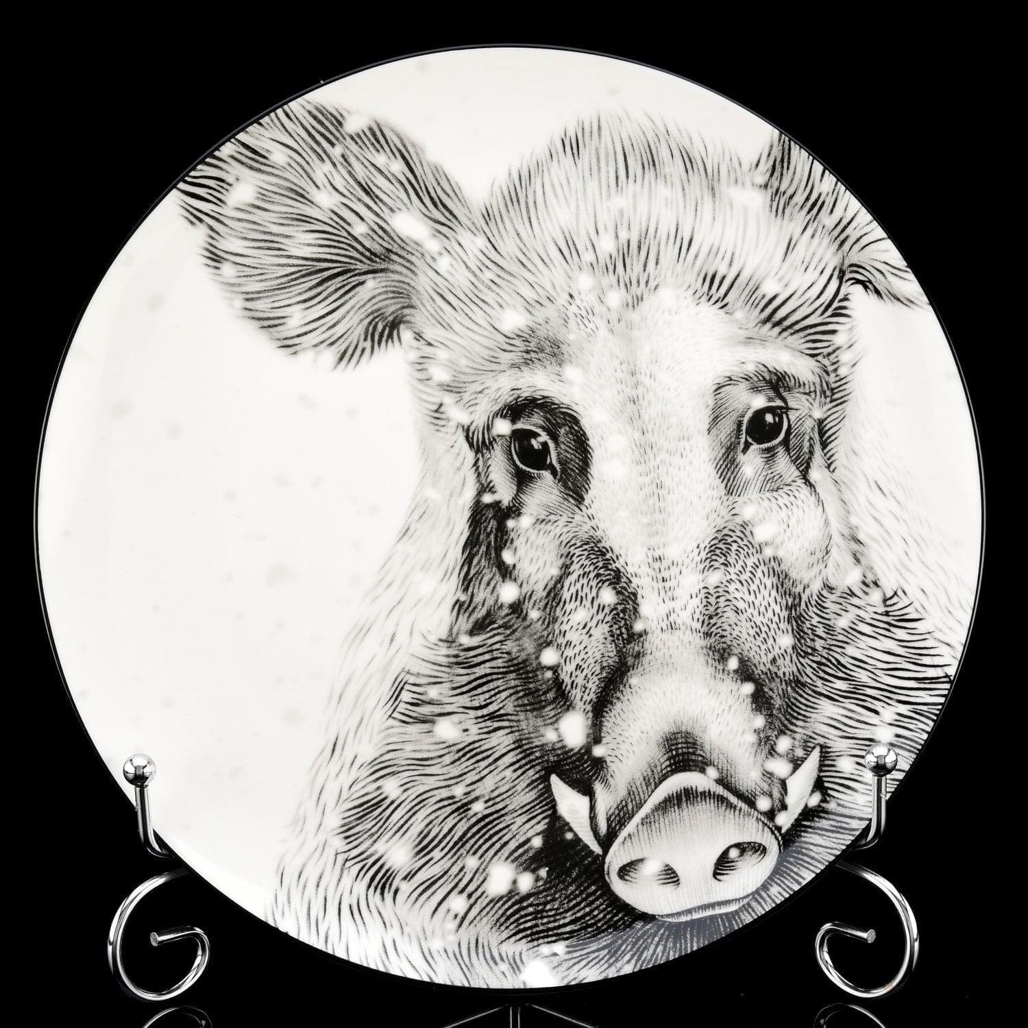 Образ кабана - символ жизненной энергии и силы - украшает тарелку из "русского белого золота", фарфора.Декоративная тарелка - это классический элемент декора. Ее форма 100% гармонизирует пространство. Композиция на лицевой стороне тарелки создает мотивирующий акцент и позволяет удержать состояние радости.