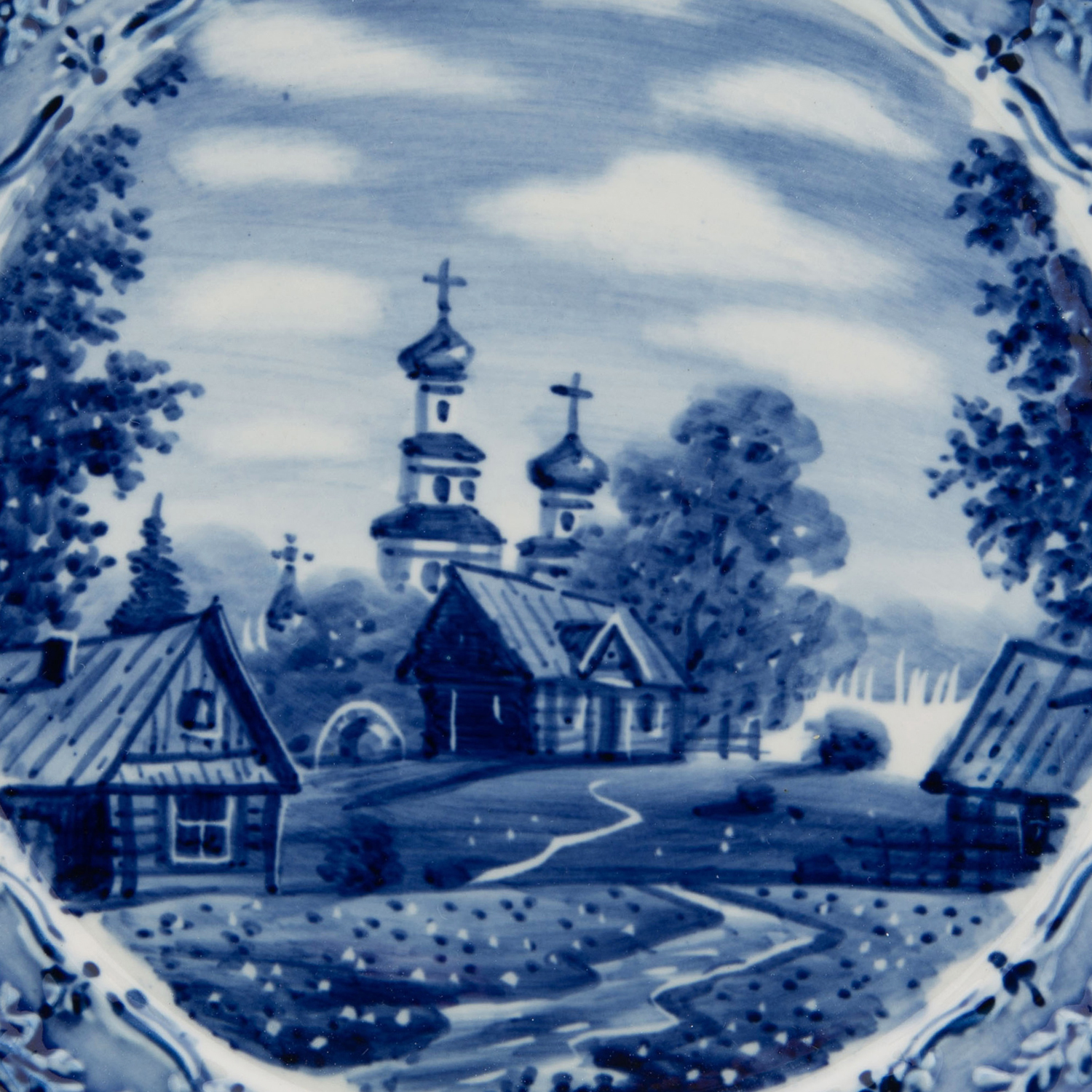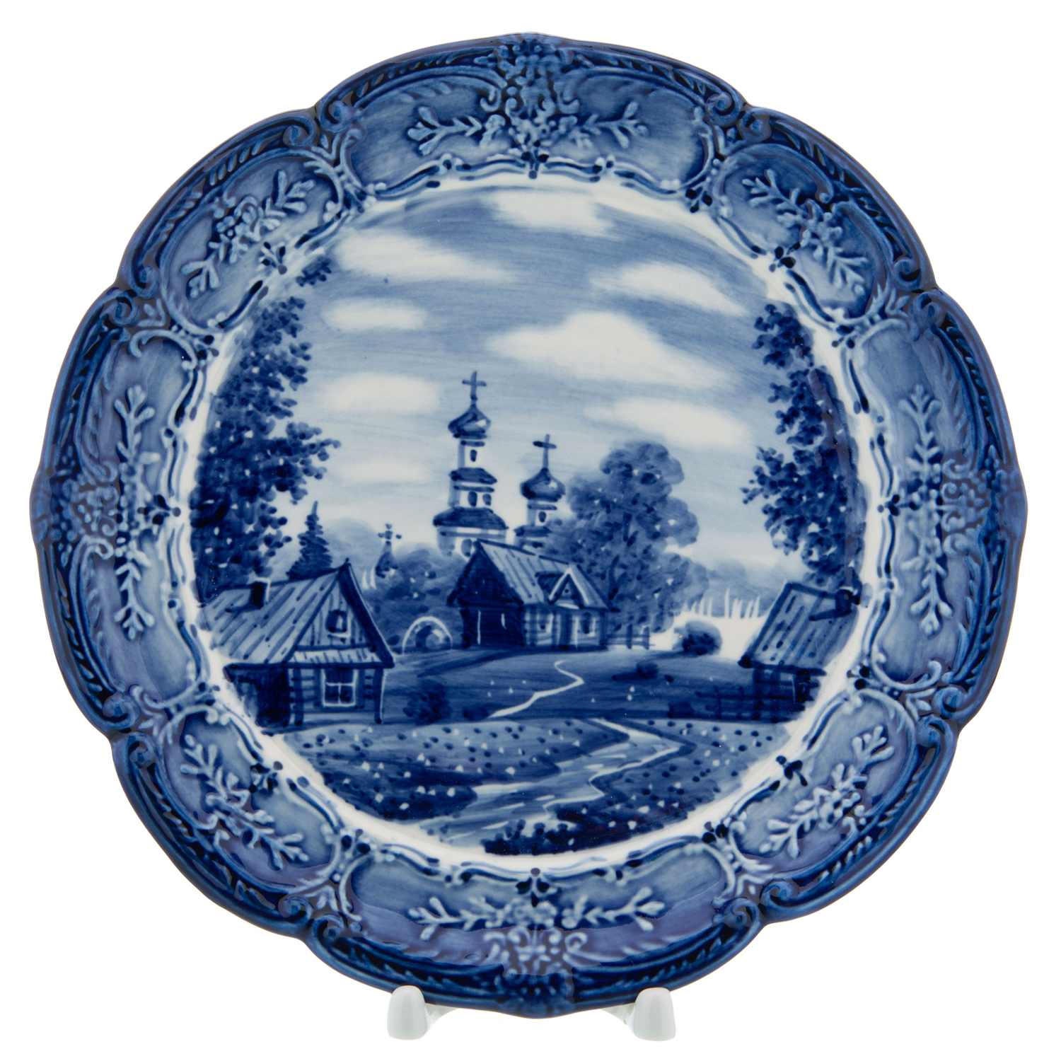 Русские подарки и сувениры → Интерьерные изделия → Декоративные тарелки → Тарелка декоративная "Пейзаж". Гжель