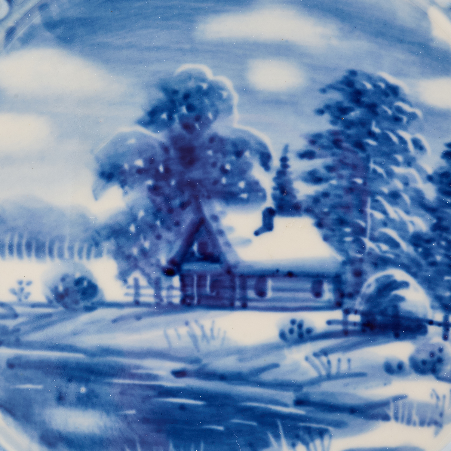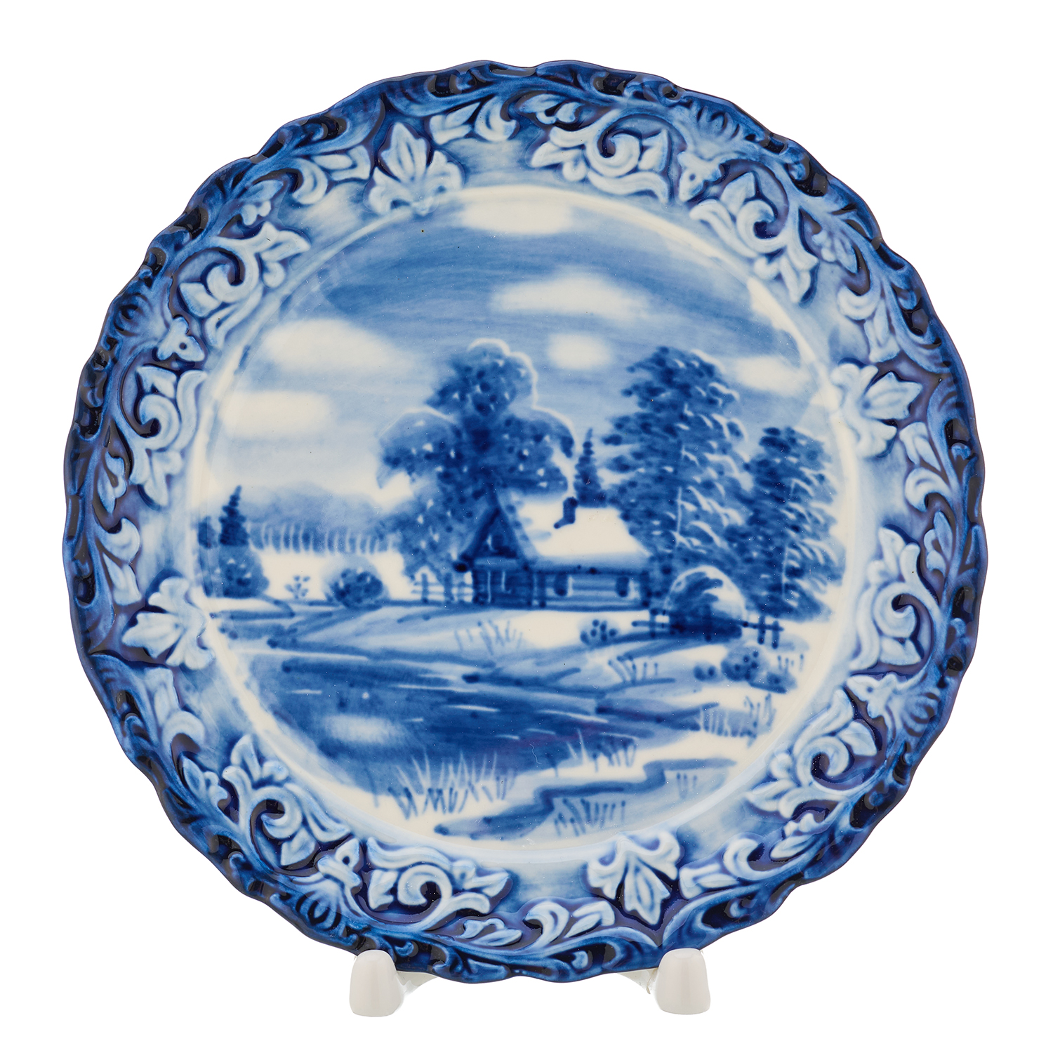Русские подарки и сувениры → Интерьерные изделия → Декоративные тарелки → Тарелка декоративная "Пейзаж". Гжель