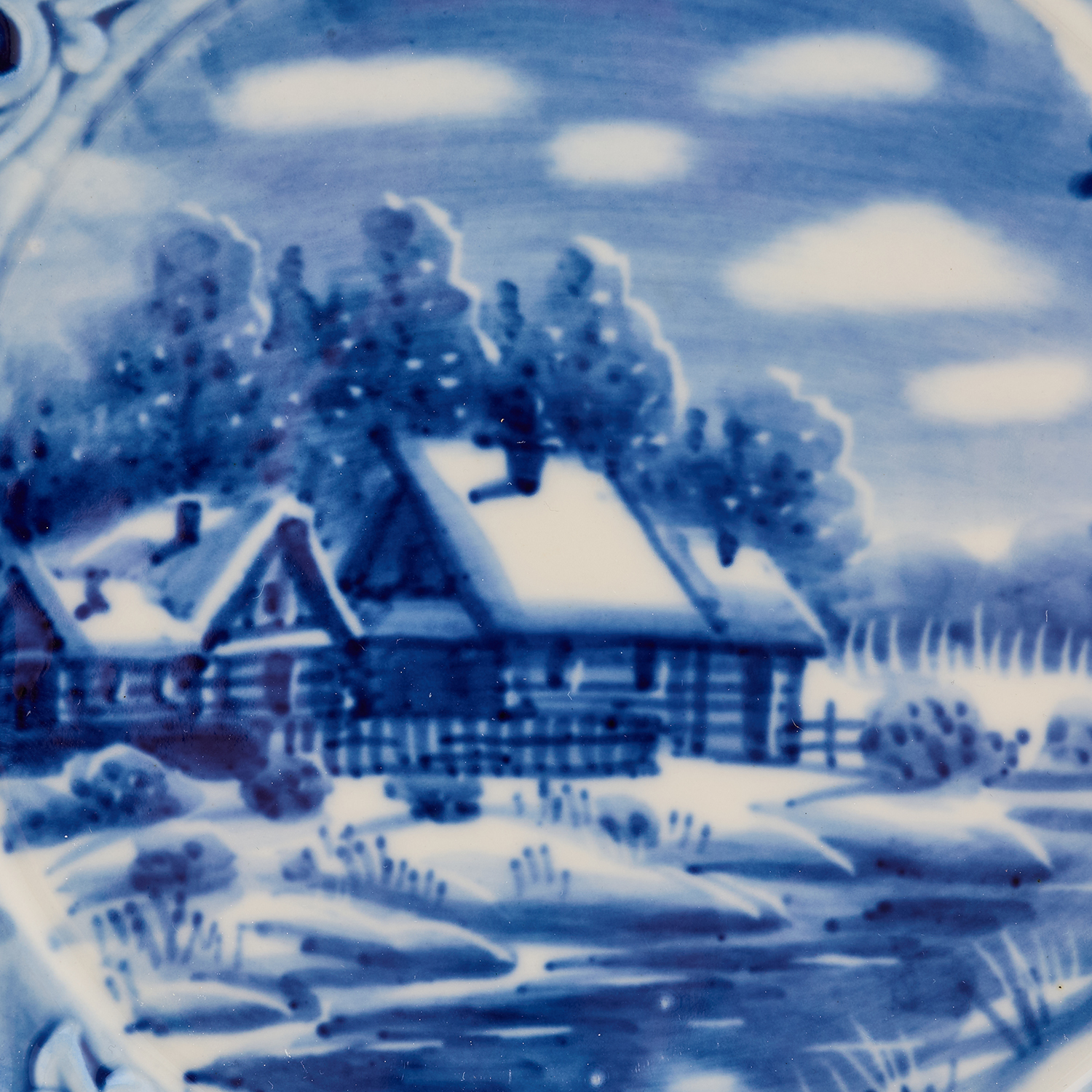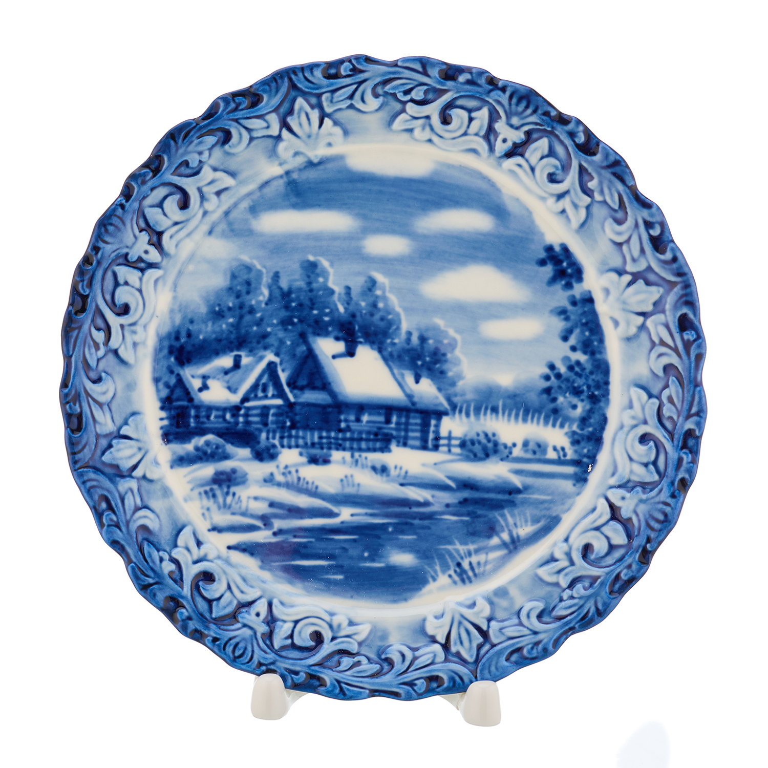 Русские подарки и сувениры → Интерьерные изделия → Декоративные тарелки → Тарелка декоративная "Пейзаж". Гжель