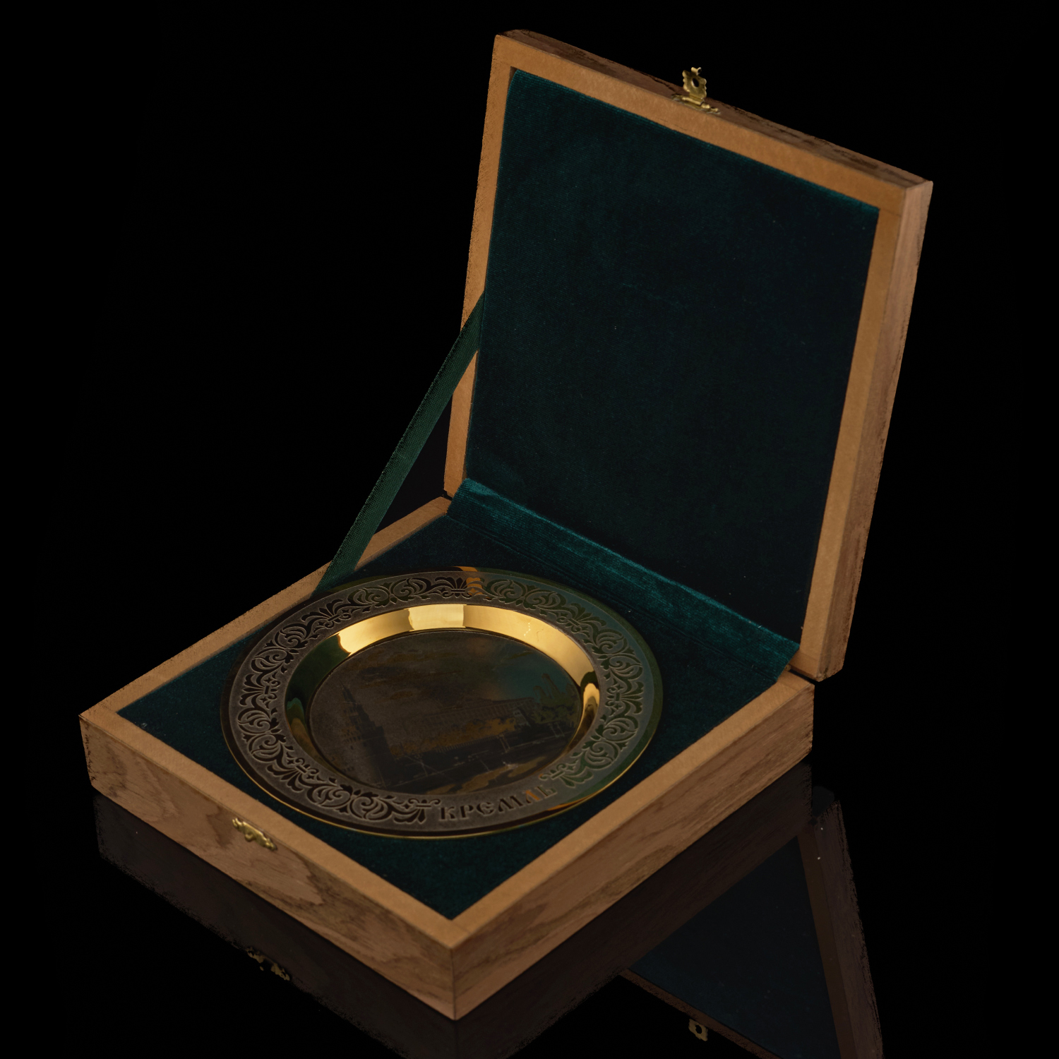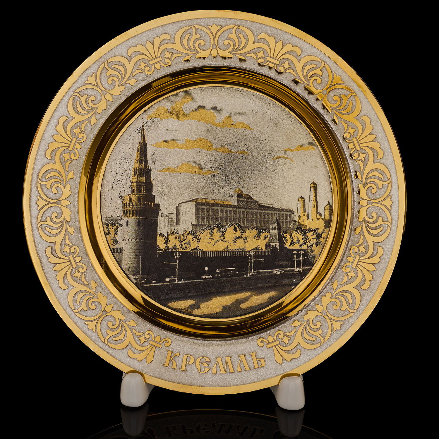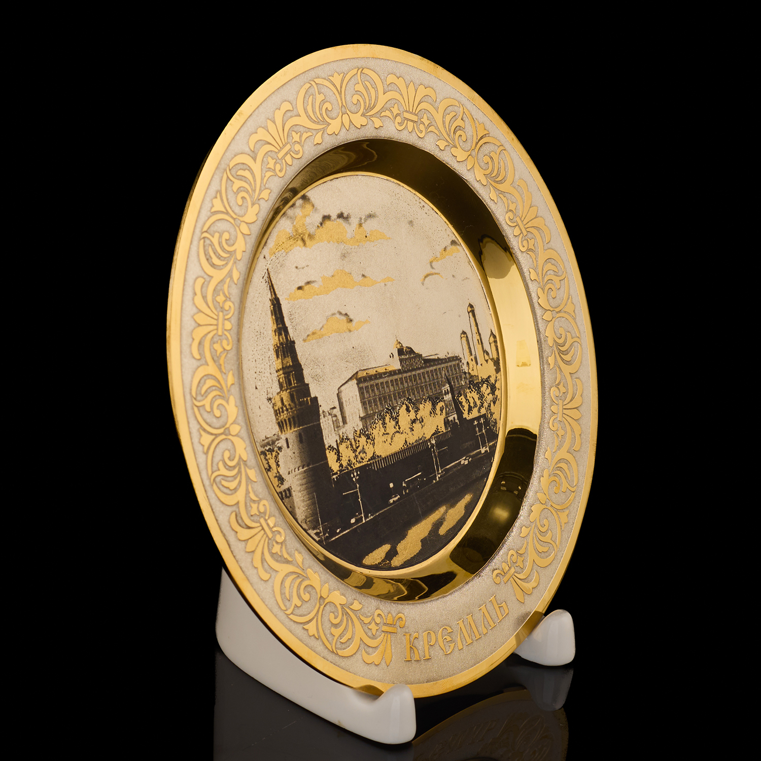 Тарелка декоративная "Москва". Златоуст.Материалы: латунь, никель, золото 999,9*, чернение.