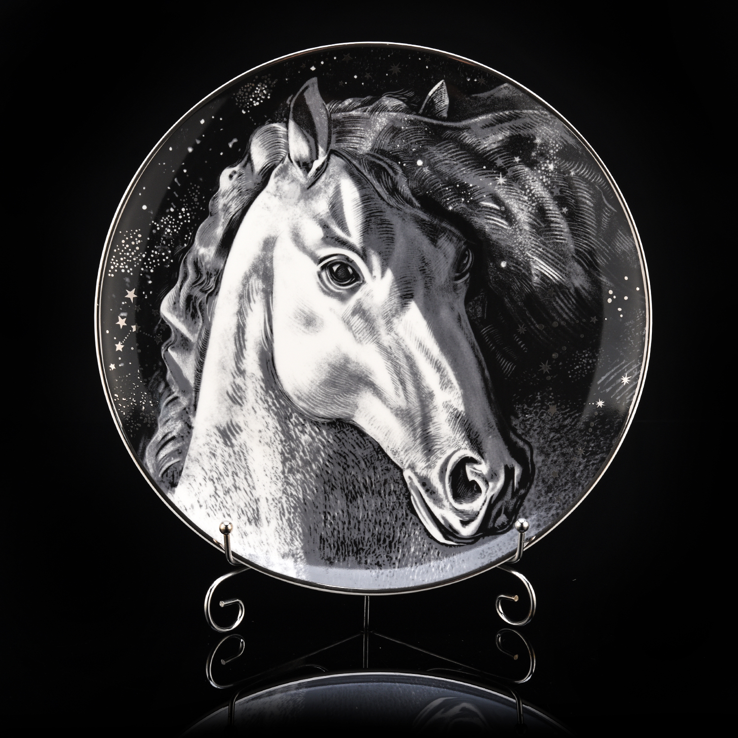 Тарелка декоративная "Черный мустанг". Форма Восточная. ИФЗ.Материал: фарфор.