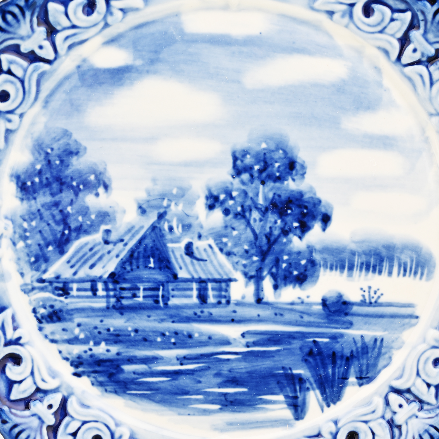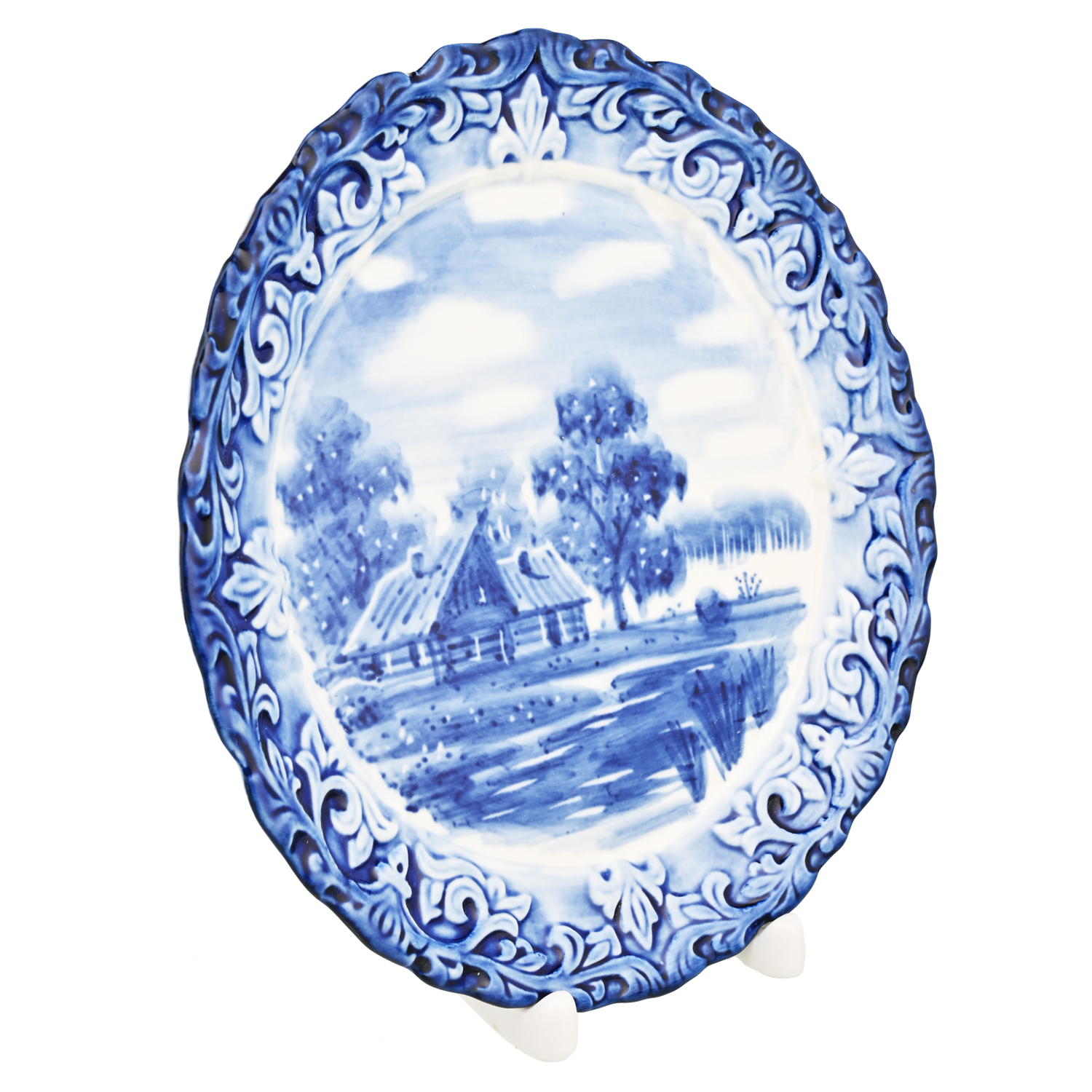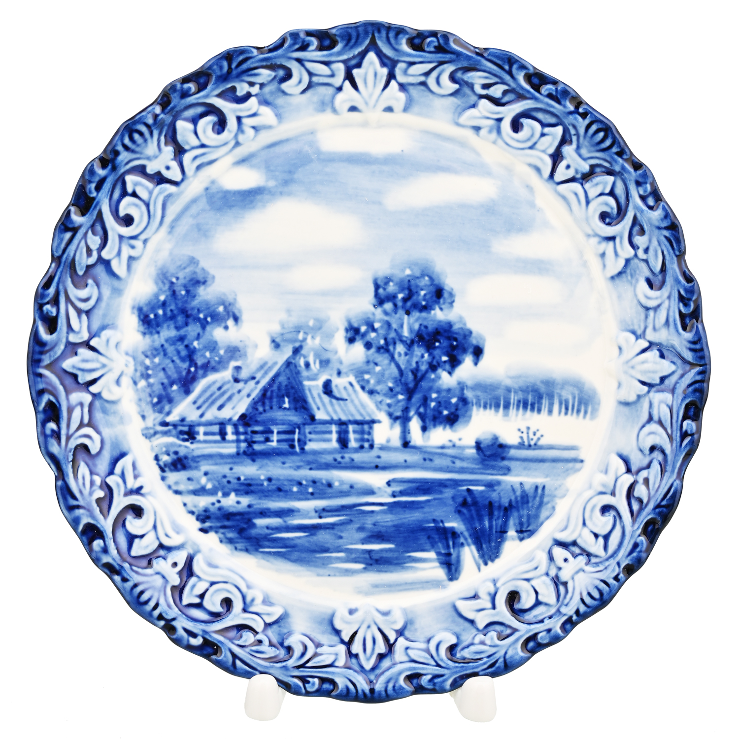 Тарелка декоративная с росписью "Летний пейзаж". Гжель