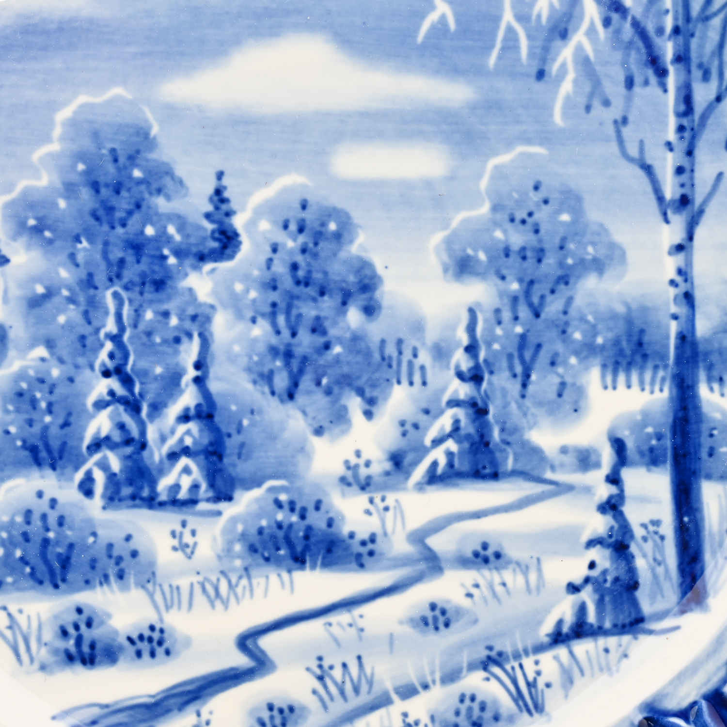 Тарелка декоративная с росписью "Зимний пейзаж". Гжель