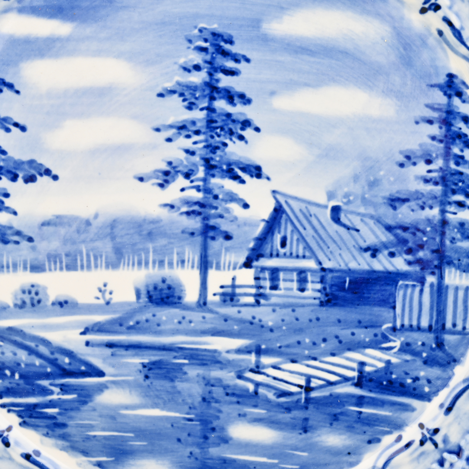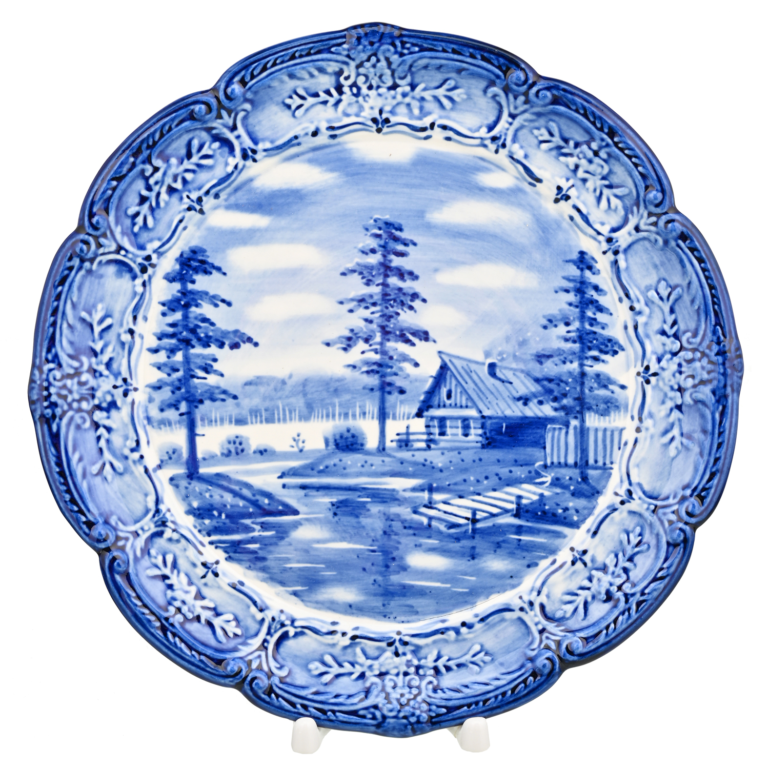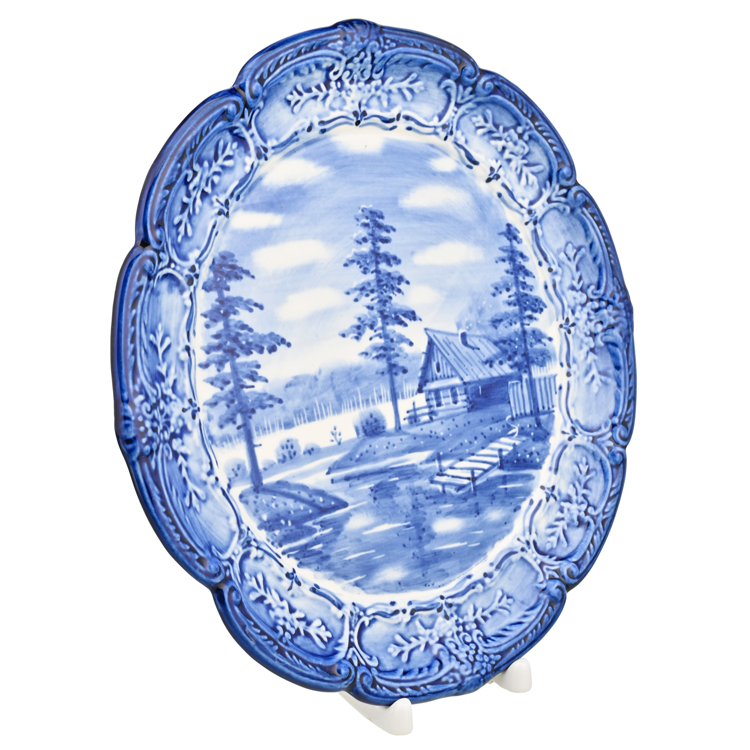 Тарелка декоративная с росписью "Лето в деревне". Гжель
